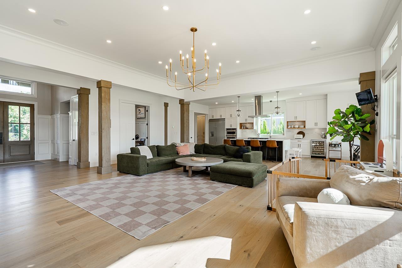Custom 6-bedroom, 4-bathroom home offering 5,400 sq ft of living space on a sprawling 24,000 sq ft lot. Designed with massive open spaces and quality finishes throughout. Gourmet kitchen with high-end appliances and spacious dining area flows seamlessly into the living room. Main floor features a luxurious primary suite for ultimate convenience. Includes a fully self-contained 2-bedroom legal suite, ideal for extended family or rental income. Expansive backyard with covered patio is perfect for entertaining. A rare combination of space, elegance, and functionality in a desirable location. (id:52823)