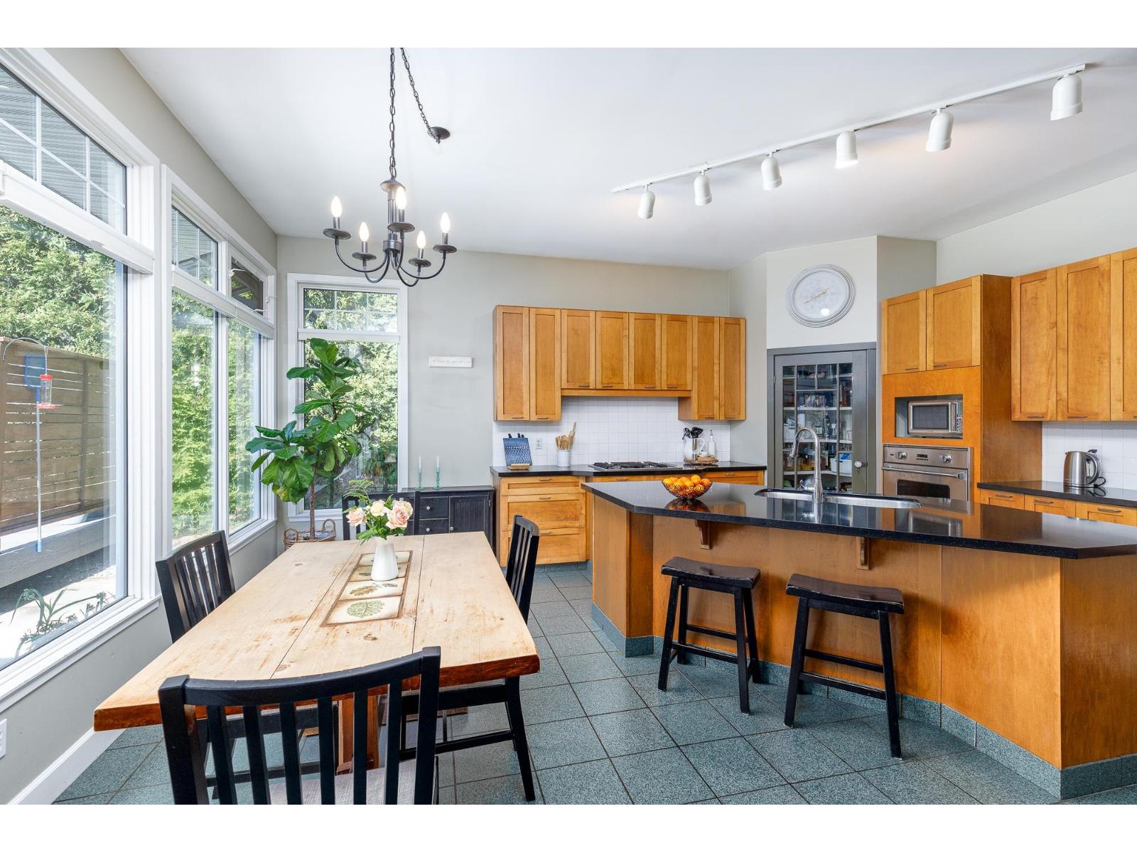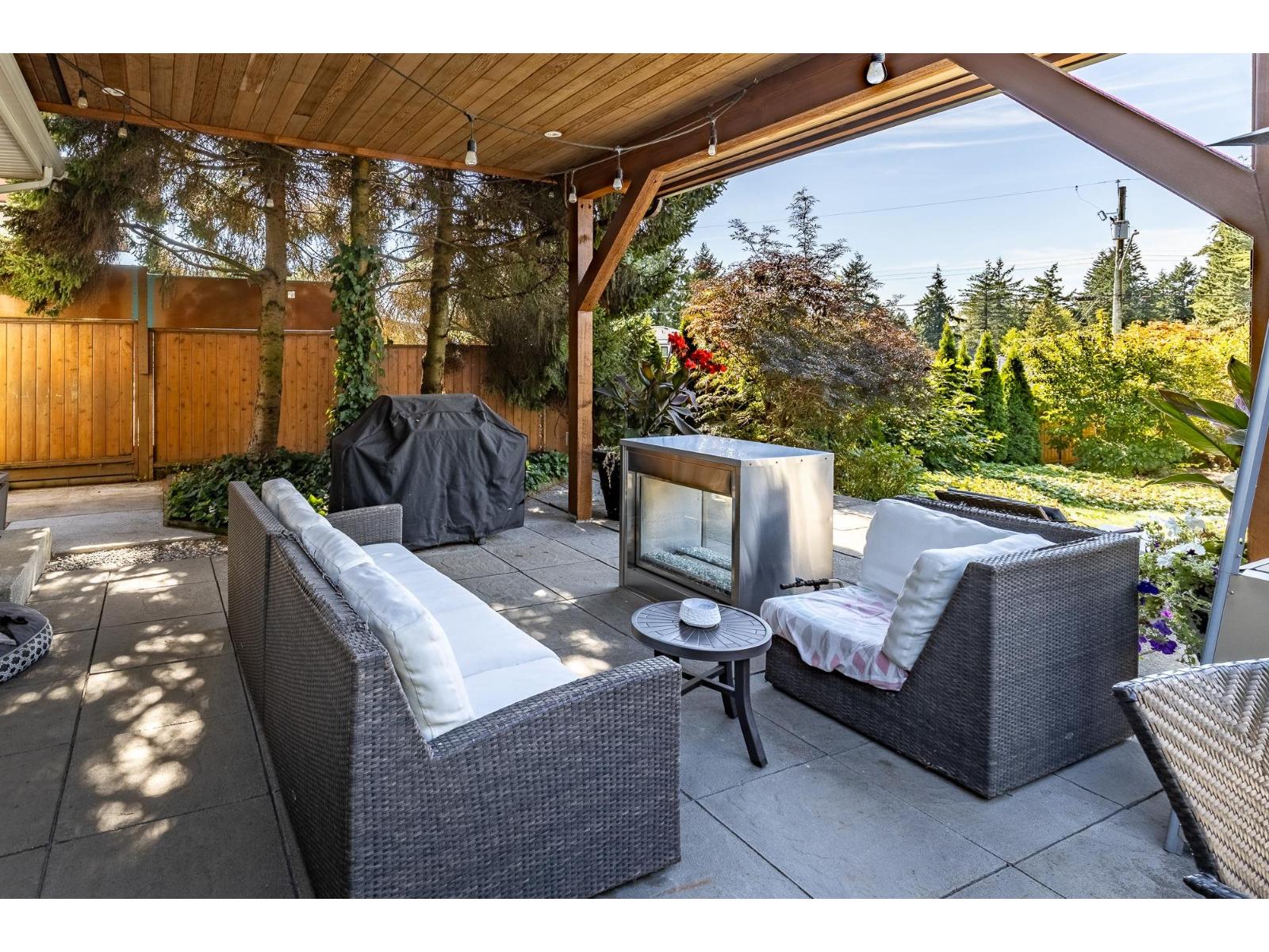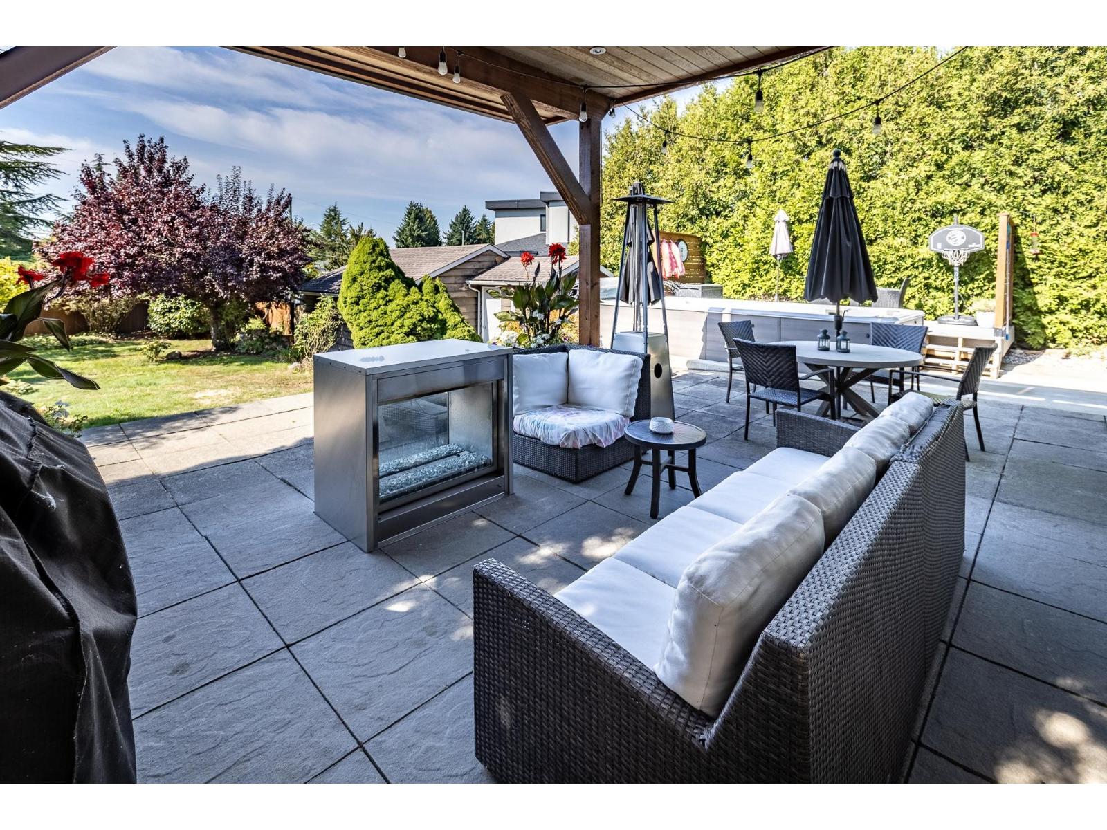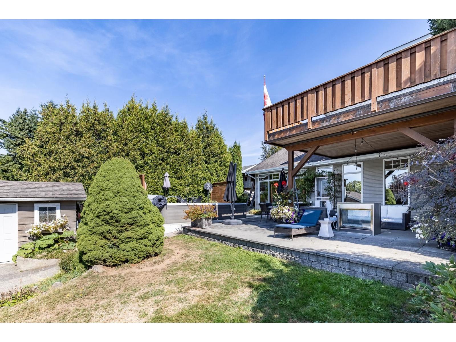 Unique and pristine, this Cedar Hills family home offers four spacious bedrooms plus a den and four baths on a generous 9,800 sq. ft. lot with front and rear road access. Enjoy a private backyard oasis with a pool, lush gardens, detached double garage, and RV parking. Inside, the maple kitchen features an island, walk-in pantry, gas oven, and cooktop. Gleaming hardwood floors, designer paint, and a decadent bath with an old-fashioned soaker tub add charm. Downstairs includes a bedroom, den, and open living area with tall windows overlooking the yard. Conveniently located close to SkyTrain, parks, and schools! (id:52823)