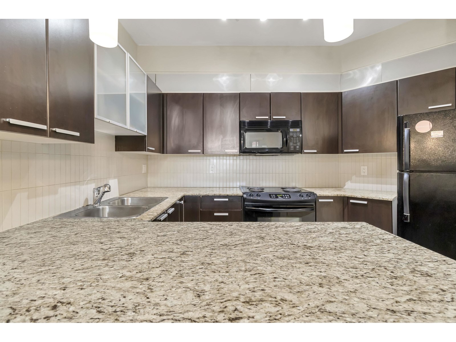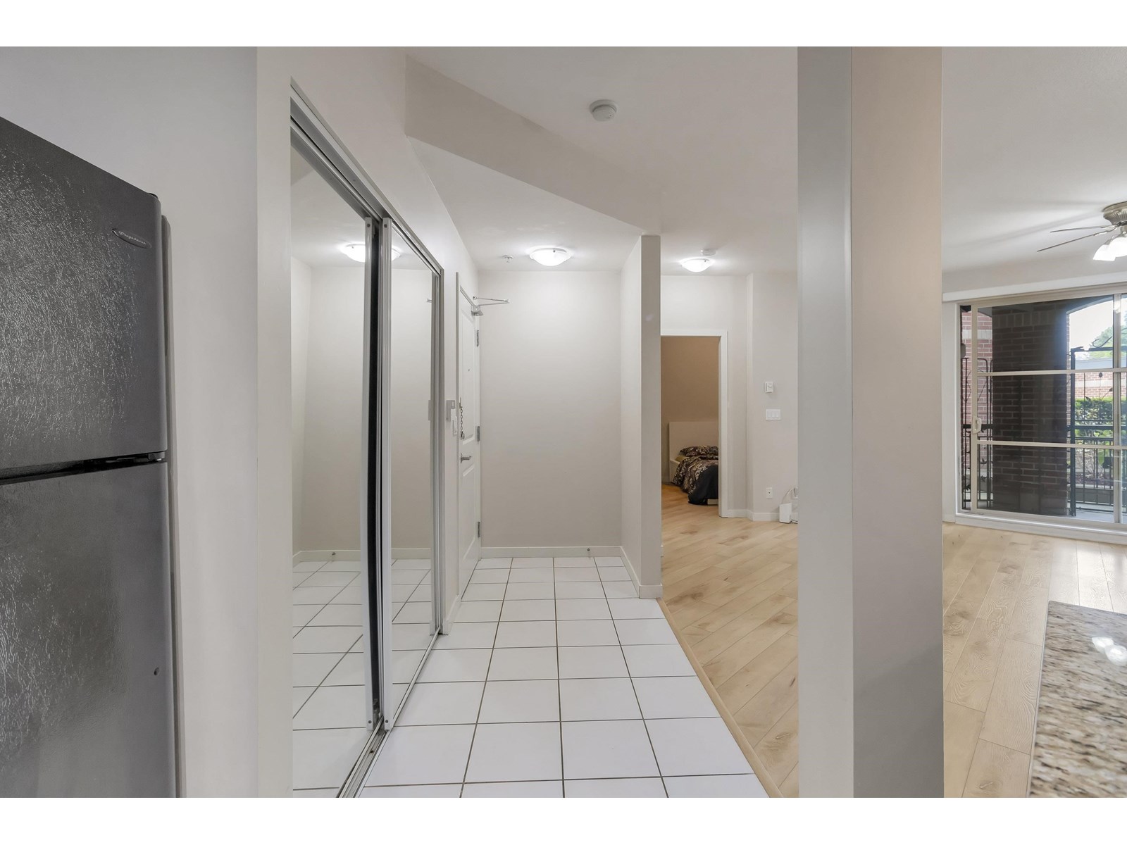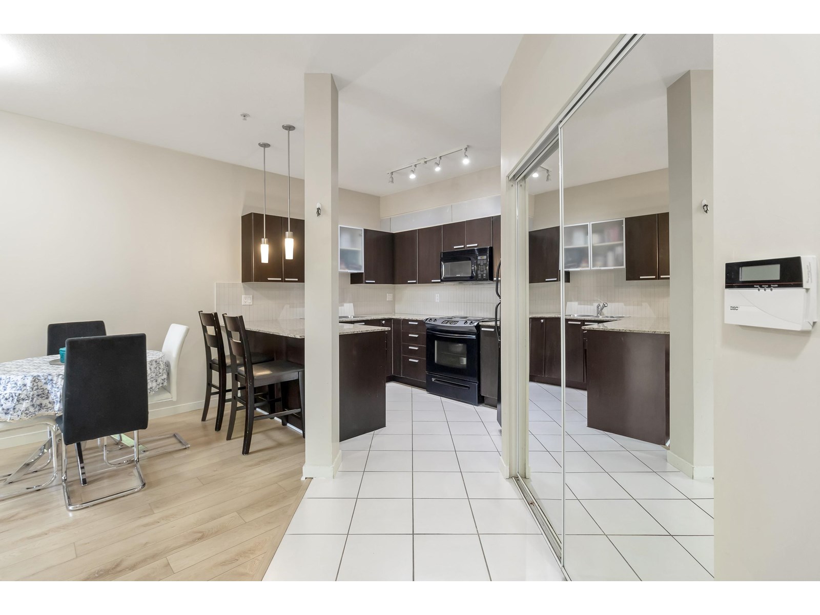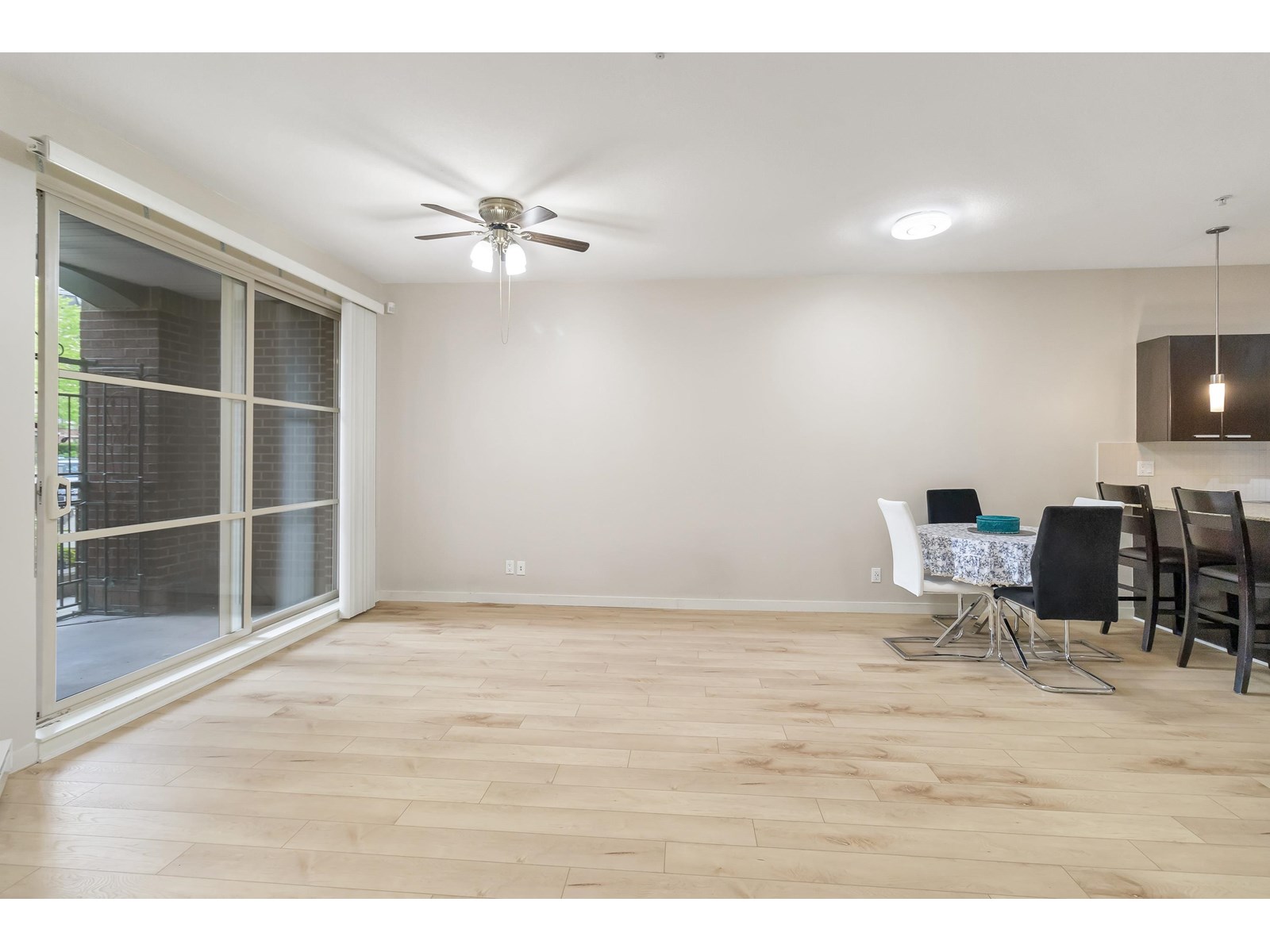 $402 MonthlyD'Cor - In the heart of the city centre. Across from the new library, city hall and few minutes from skytrain, Rec. Ctr, SFU and shopping, T&T market. Spacious 1 bed 1 bath ground floor unit with huge living room & covered patio, very functional plan, granite counters and enough storage, new laminate floor and fresh paint, Concrete between floors, 9ft ceilings. The building has gym, club house, pool, tennis table. Best price/ sft for first time buyer to move in or property to invest. Well maintained strata & no major work anticipated soon. This location is unbeatable. Excellent walk score of 89/100 and transit score of 90/100. Making car unnecessary. (id:52823)