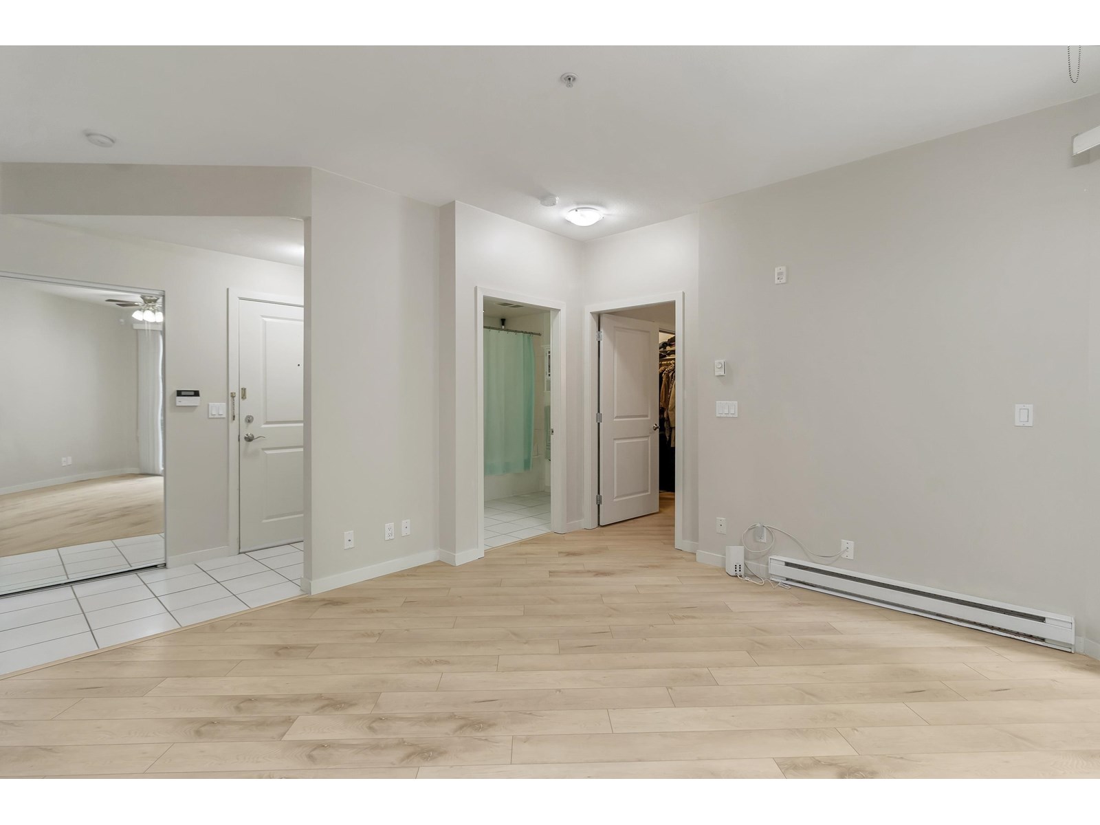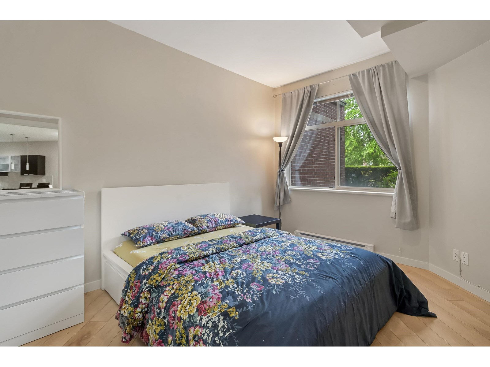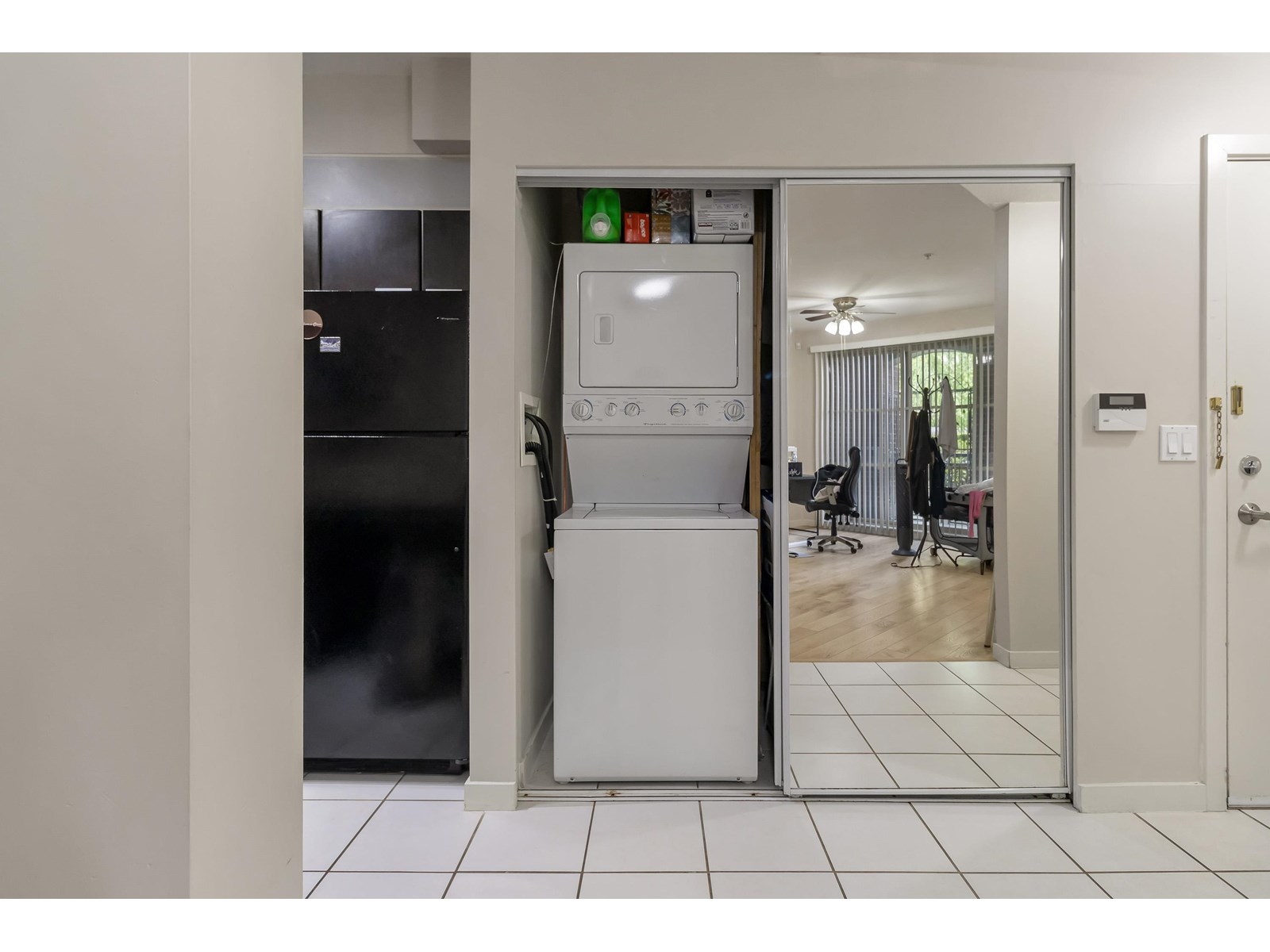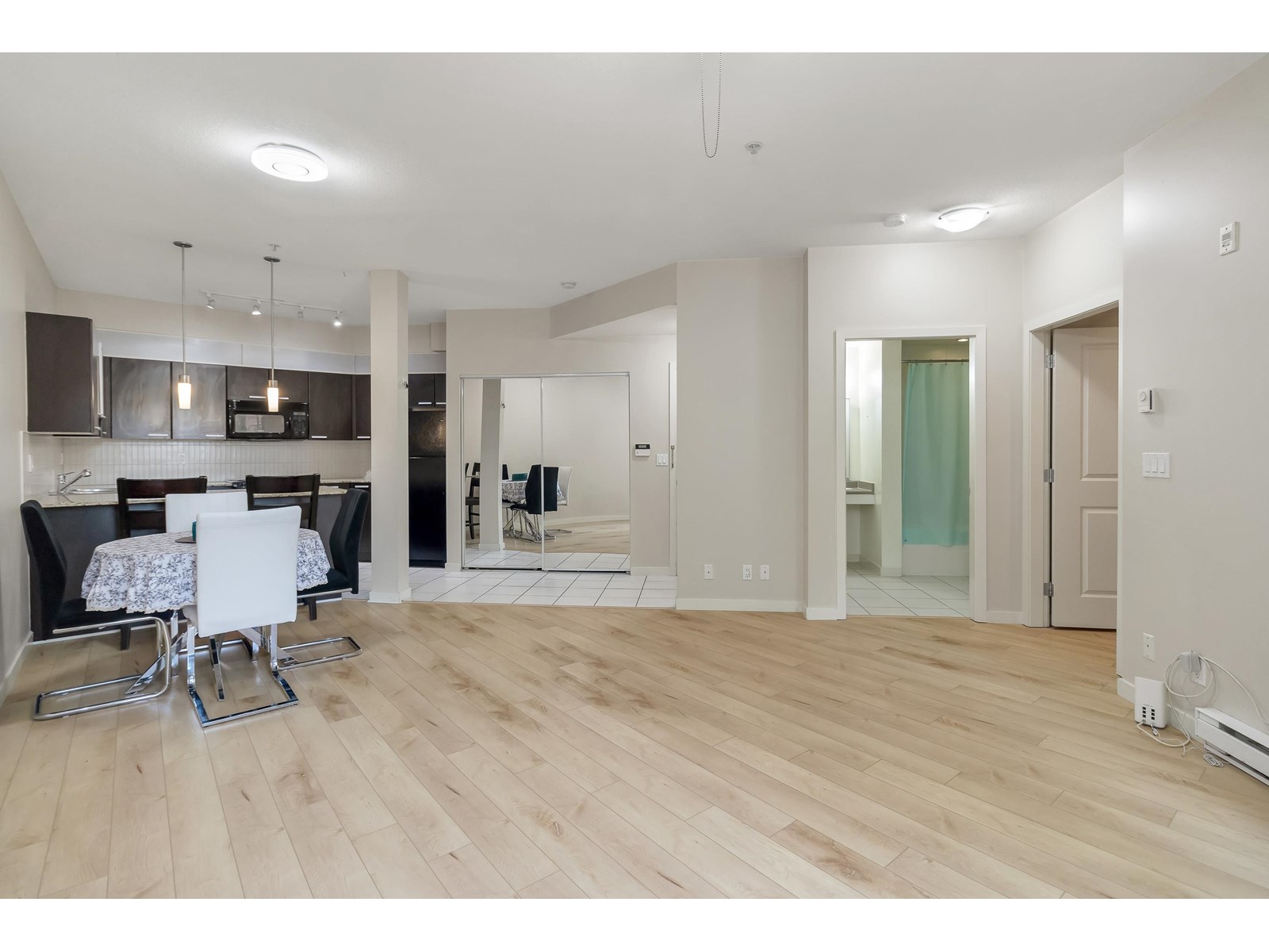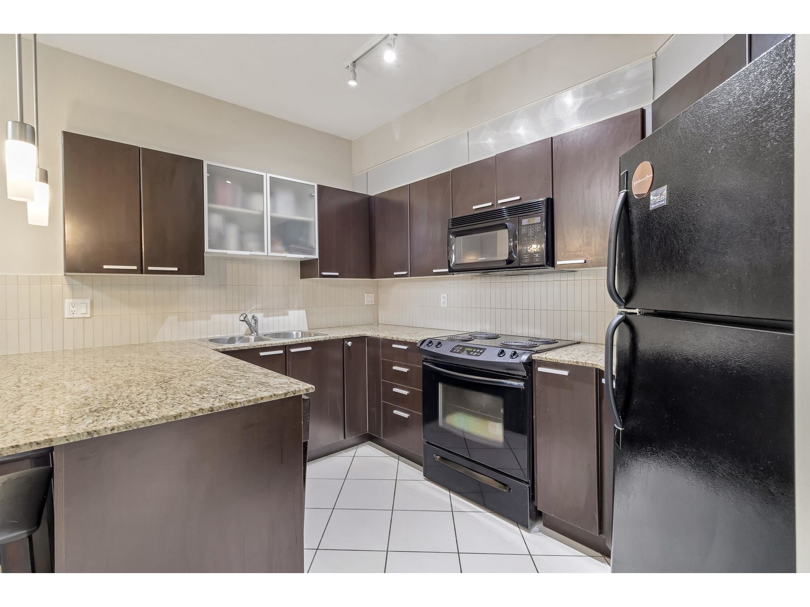 $402 MonthlyD'Cor - In the heart of the city centre. Across from the new library, city hall and few minutes from skytrain, Rec. Ctr, SFU and shopping, T&T market. Spacious 1 bed 1 bath ground floor unit with huge living room & covered patio, very functional plan, granite counters and enough storage, new laminate floor and fresh paint, Concrete between floors, 9ft ceilings. The building has gym, club house, pool, tennis table. Best price/ sft for first time buyer to move in or property to invest. Well maintained strata & no major work anticipated soon. This location is unbeatable. Excellent walk score of 89/100 and transit score of 90/100. Making car unnecessary. (id:52823)