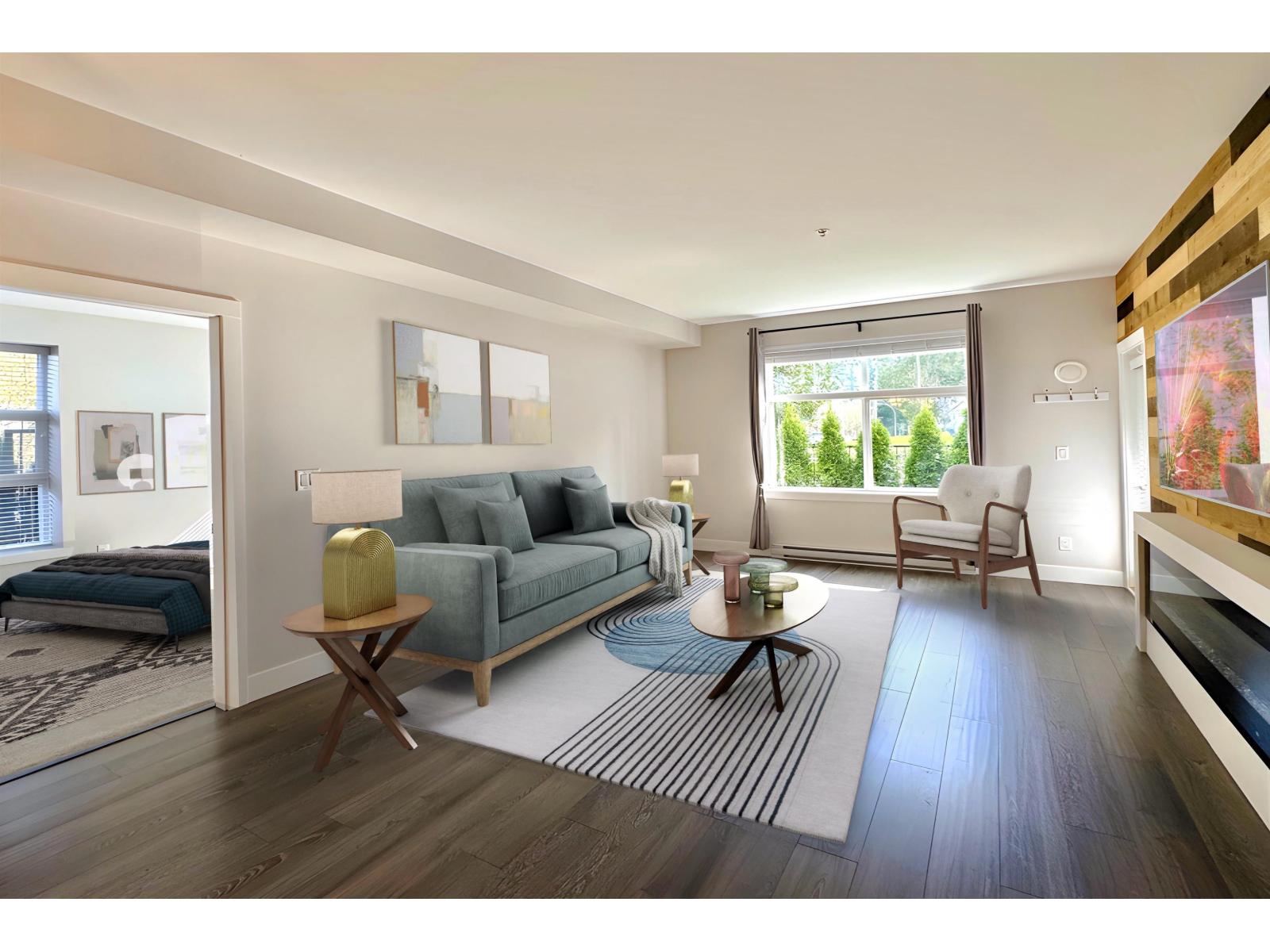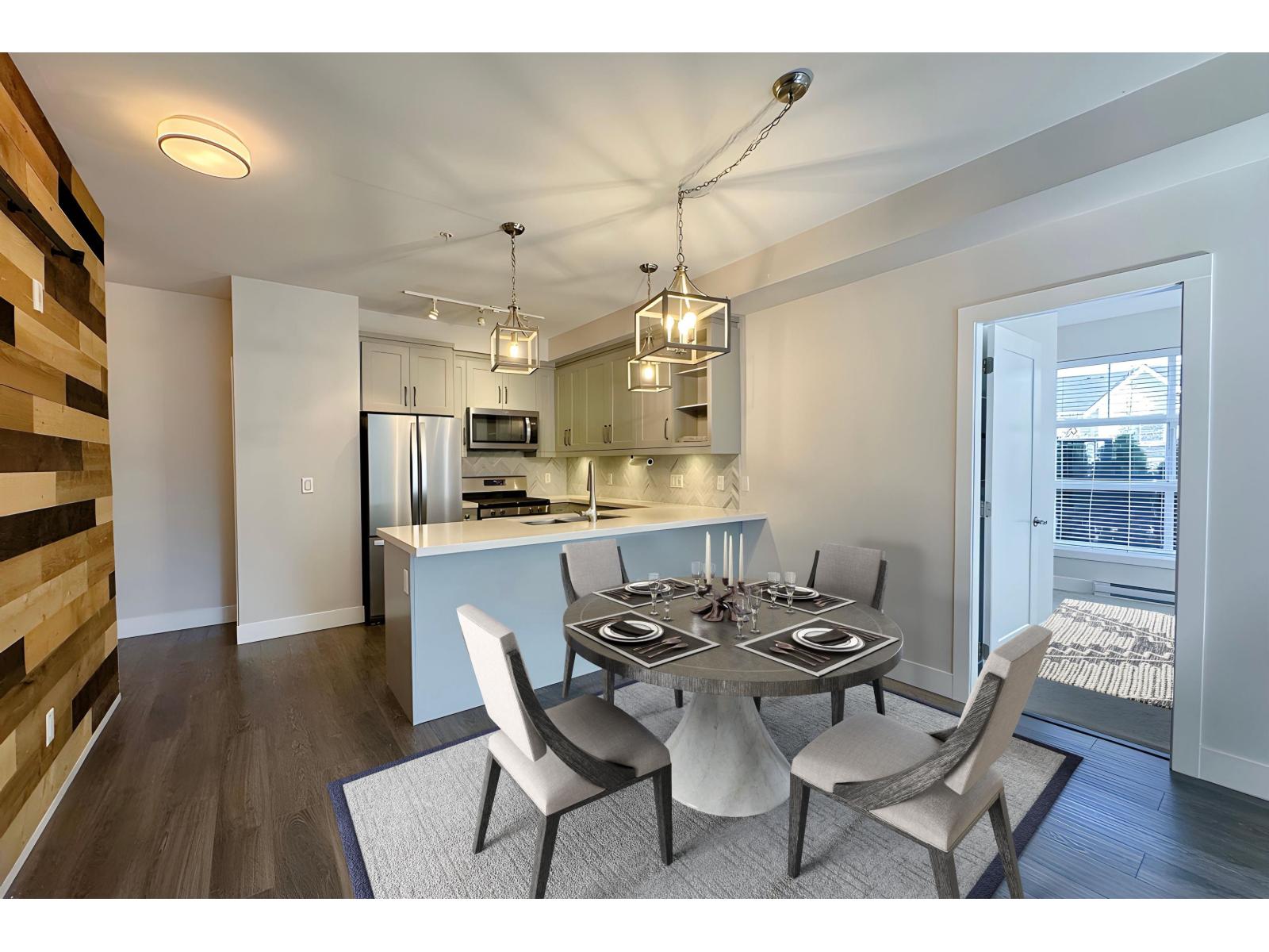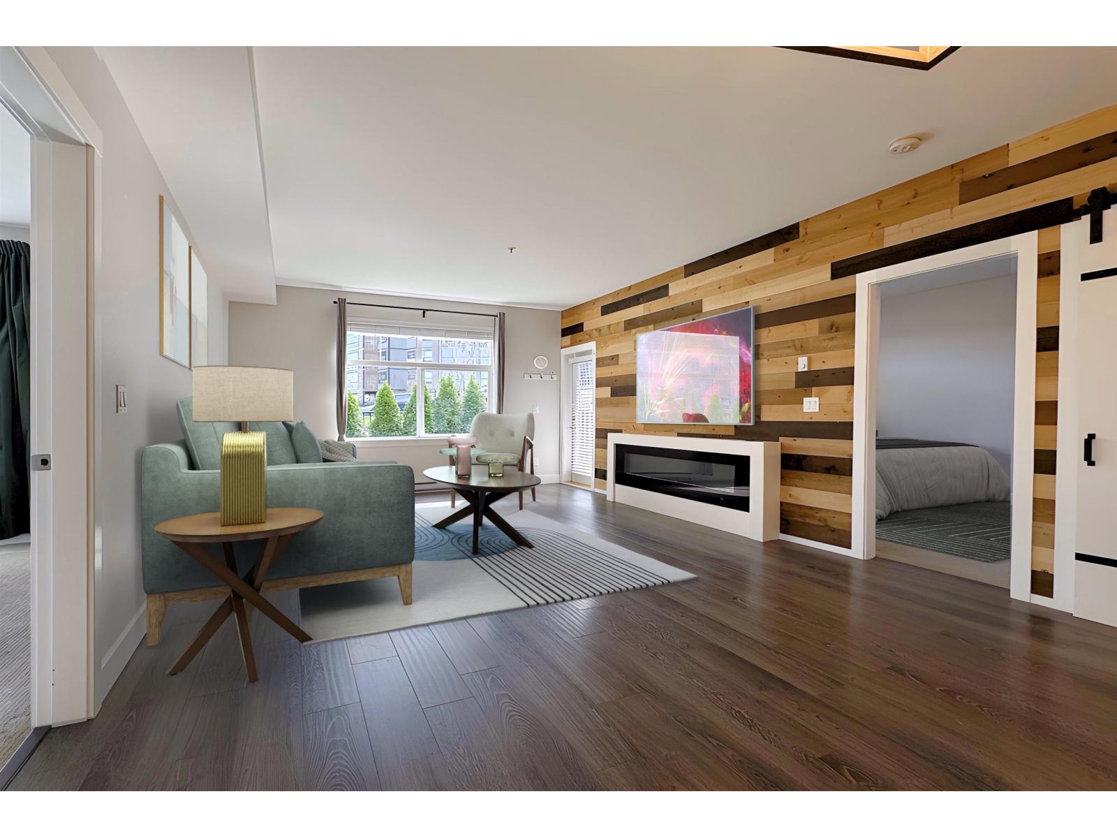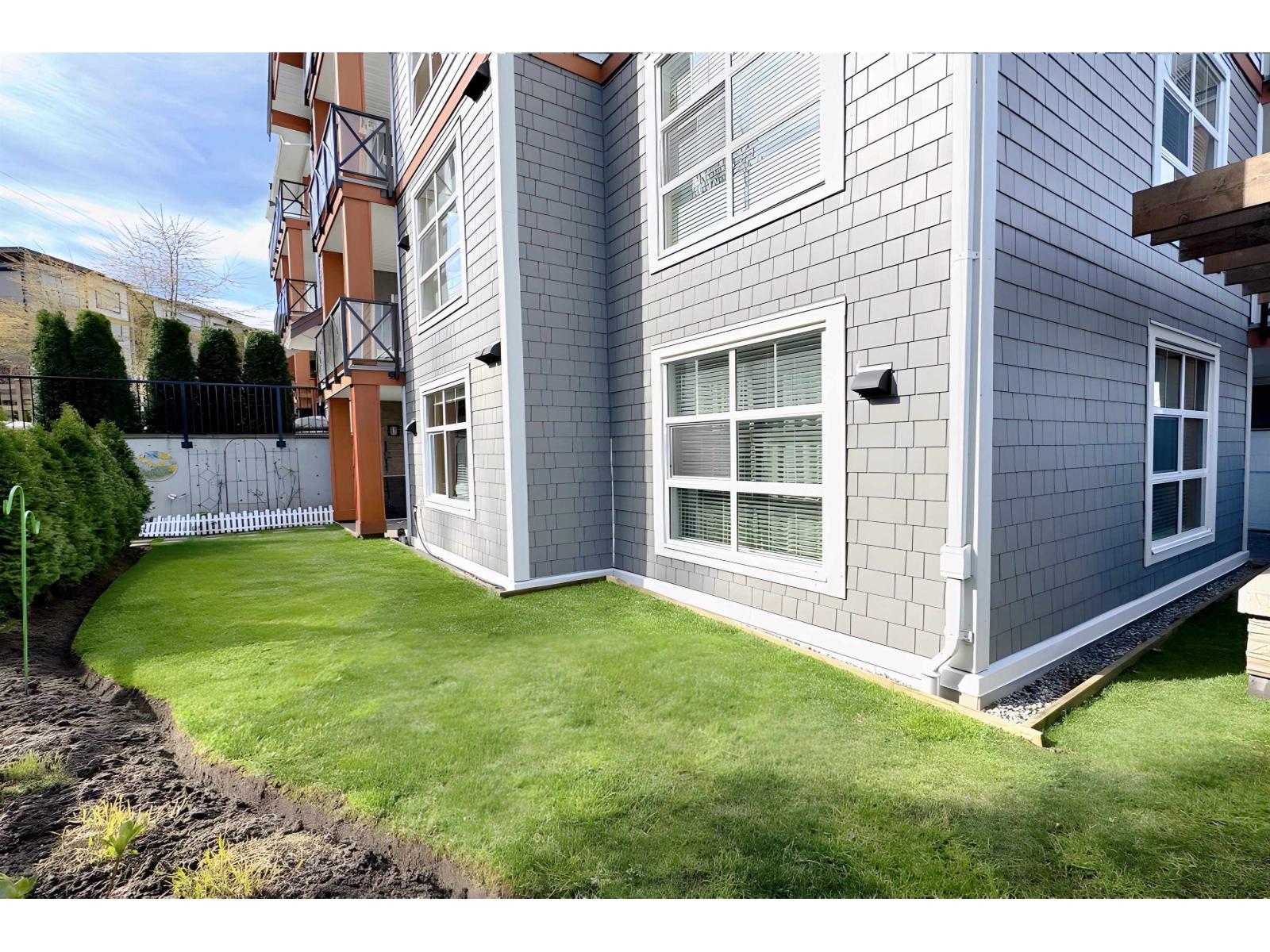 $433 MonthlyRARE FIND: Massive, privately gated, 550+ sqft fenced yard, perfect for kids, pets, entertaining and those wanting easy in/out private access! This stunning ground-level corner unit in prime South Surrey/White Rock offers 2 beds, 2 baths, and 1,011 sqft of open living with 9' ceilings. Enjoy 2 patios, including direct access from the primary bedroom with ensuite and walk-in closet. Cozy up to a striking 23' reclaimed barn wood feature wall with a 72" fireplace in a custom mantle. Kitchen features white nougat quartz counters, undermount sinks, and wide-plank laminate flooring. Bonus: 2 underground parking spots with EV outlet + private storage locker. (id:52823)