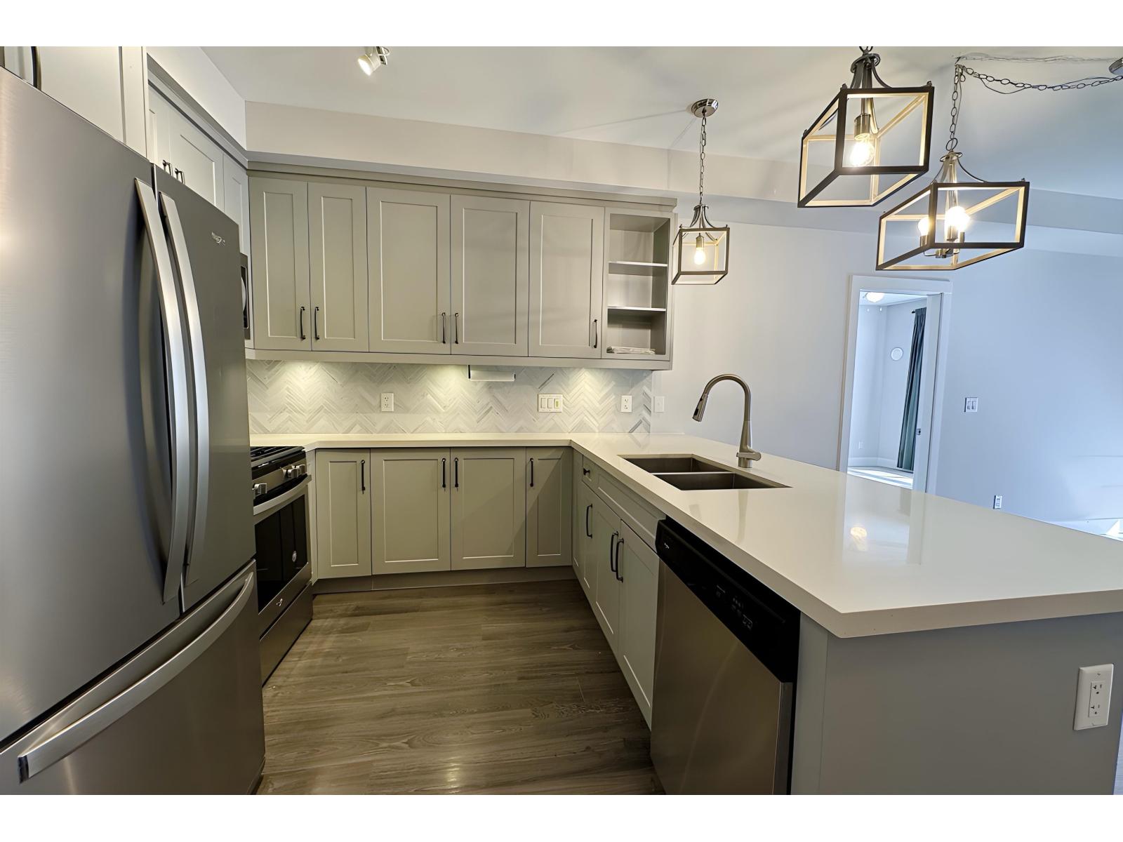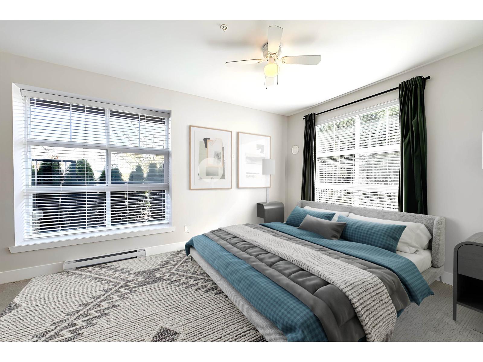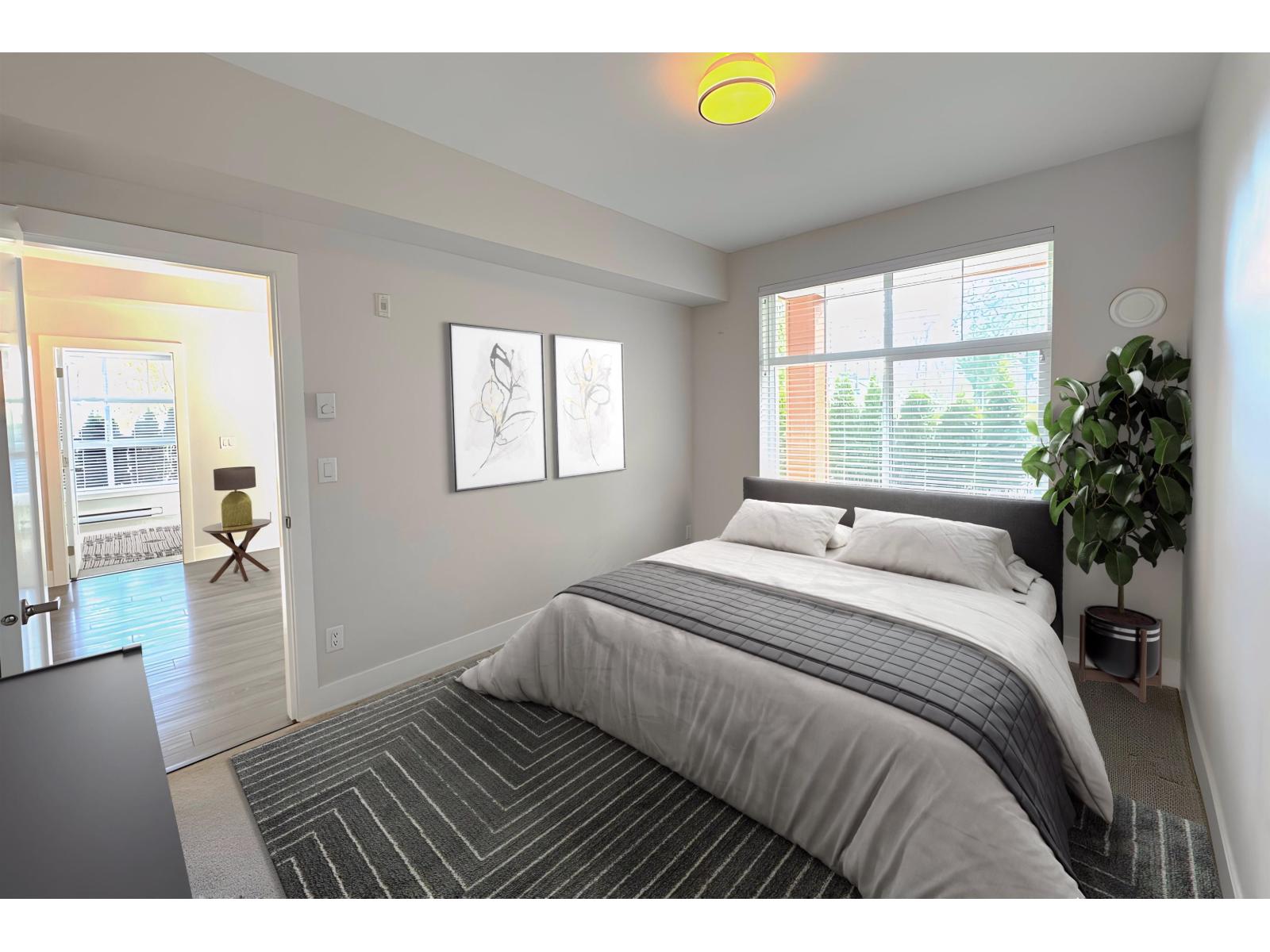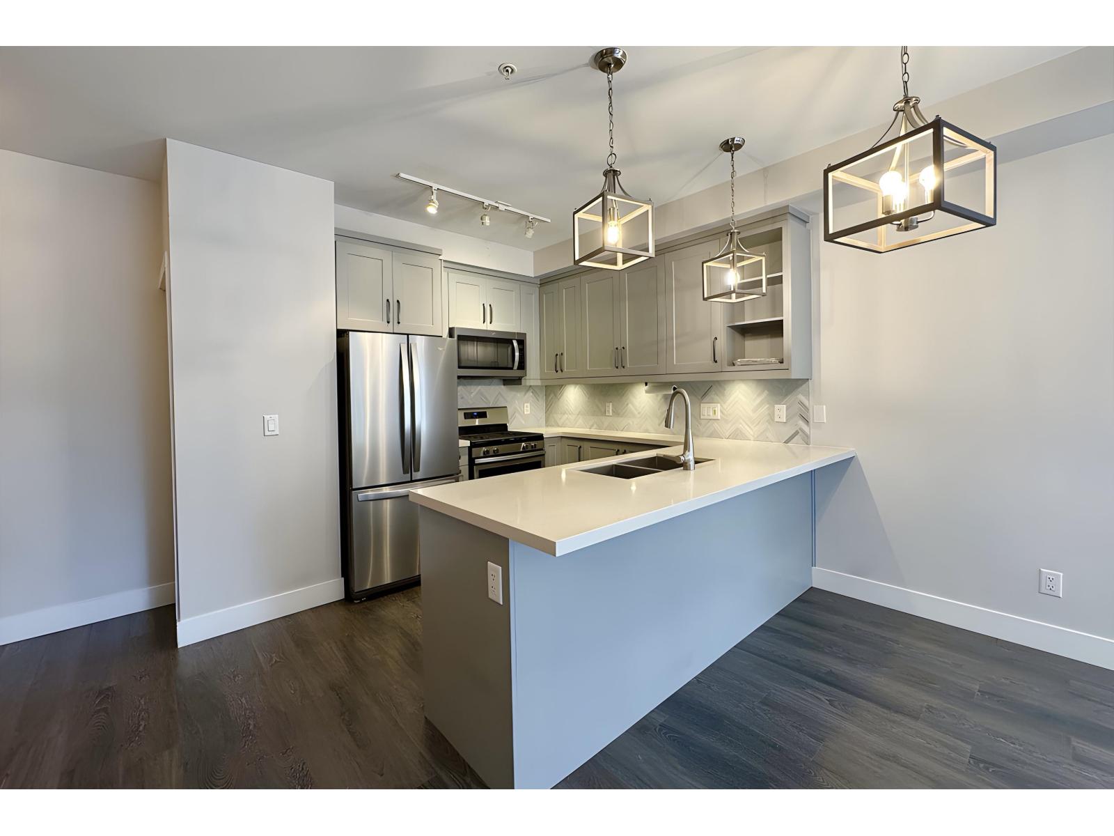 $433 MonthlyRARE FIND: Massive, privately gated, 550+ sqft fenced yard, perfect for kids, pets, entertaining and those wanting easy in/out private access! This stunning ground-level corner unit in prime South Surrey/White Rock offers 2 beds, 2 baths, and 1,011 sqft of open living with 9' ceilings. Enjoy 2 patios, including direct access from the primary bedroom with ensuite and walk-in closet. Cozy up to a striking 23' reclaimed barn wood feature wall with a 72" fireplace in a custom mantle. Kitchen features white nougat quartz counters, undermount sinks, and wide-plank laminate flooring. Bonus: 2 underground parking spots with EV outlet + private storage locker. (id:52823)