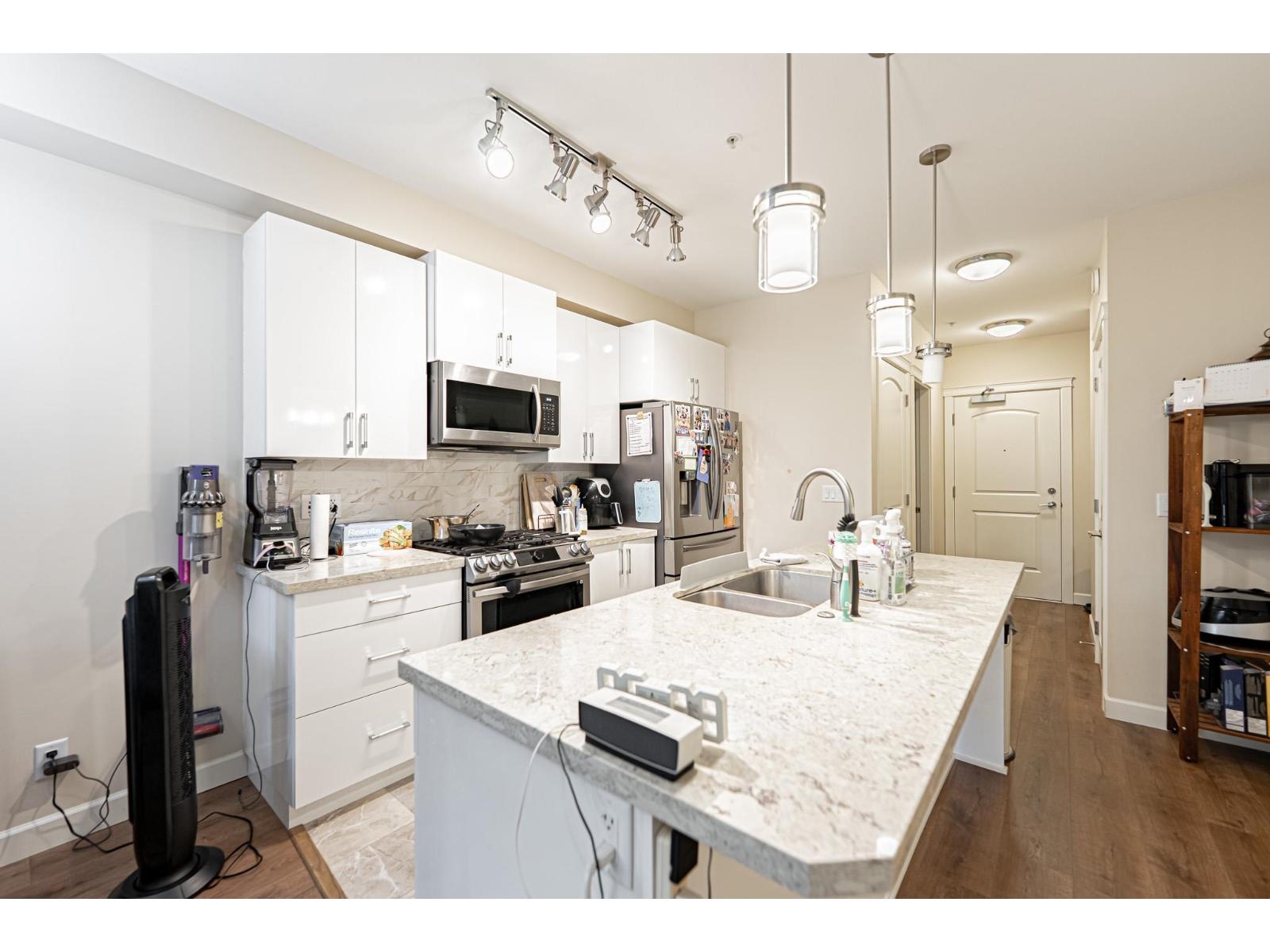 $297.01 MonthlyA perfect blend of elegance and comfort at Yorkson Park. This 2 bed + flex suite is steps from Carvolth Park & Ride and designed for modern living. Enjoy a glass-enclosed solarium with gas BBQ hookup-ideal for year-round entertaining. The gourmet kitchen features a gas 5-burner cooktop, double oven, quartz countertops, and stainless steel appliances. Laminate flooring throughout (no carpet), heated tile floors in bathrooms, an energy-efficient heat pump (A/C & heat), and custom wood closet systems add to the upscale feel. Includes 2 secure underground parking stalls and a private storage locker with an EV-capable outlet. Thoughtful acoustic upgrades ensure quiet comfort. A rare opportunity to own in one of Langley's most desirable communities-don't miss out. (id:52823)