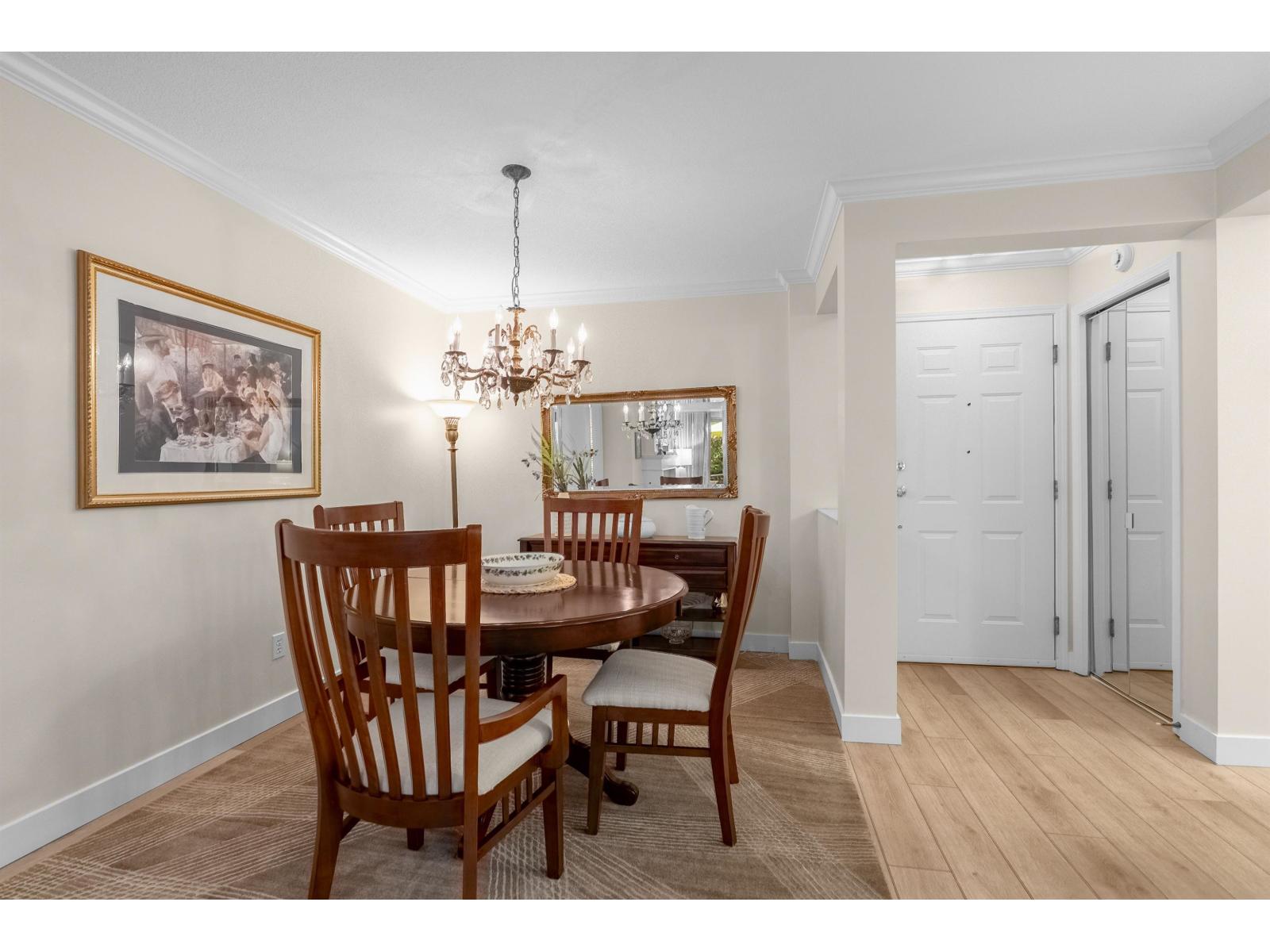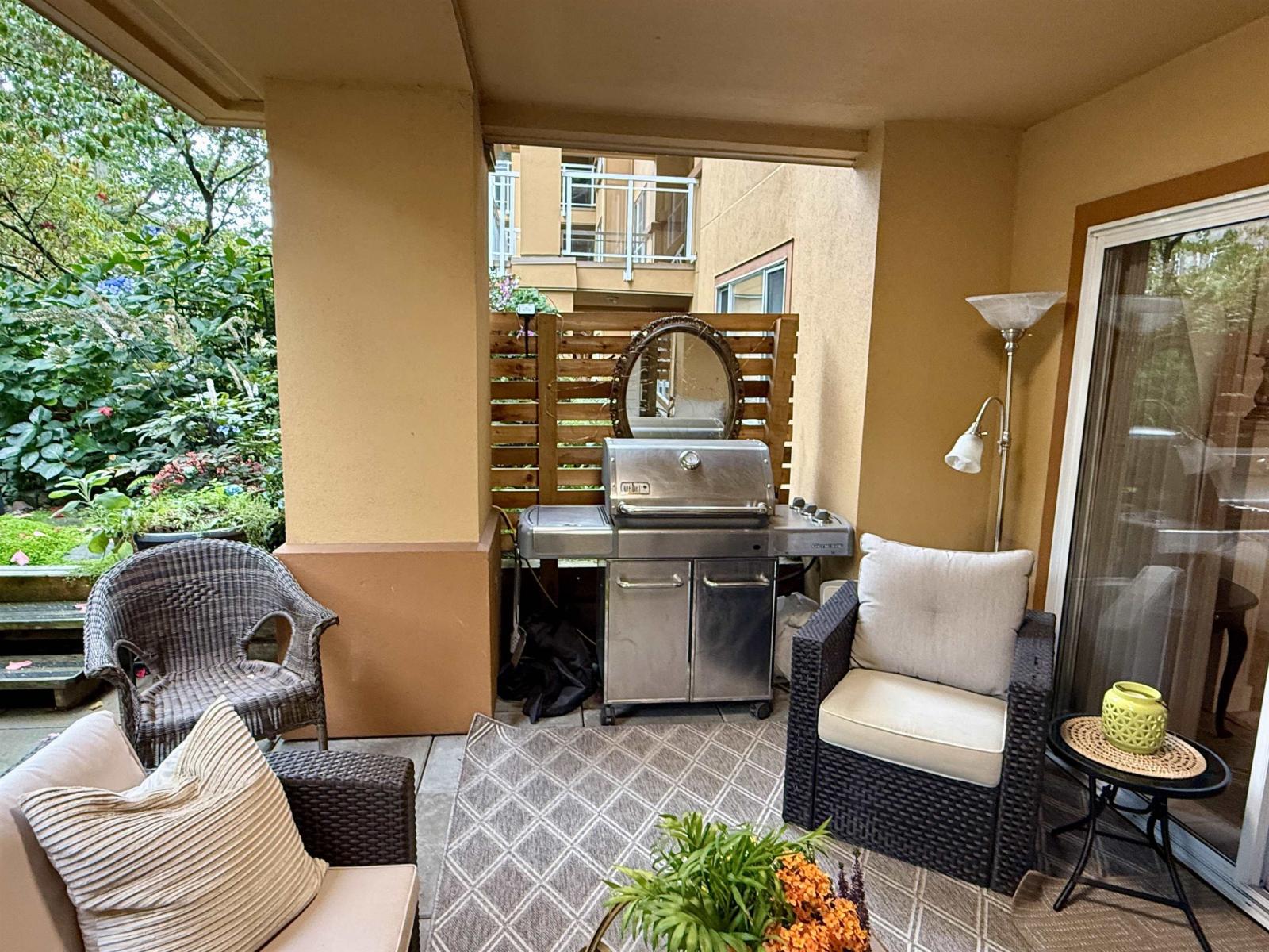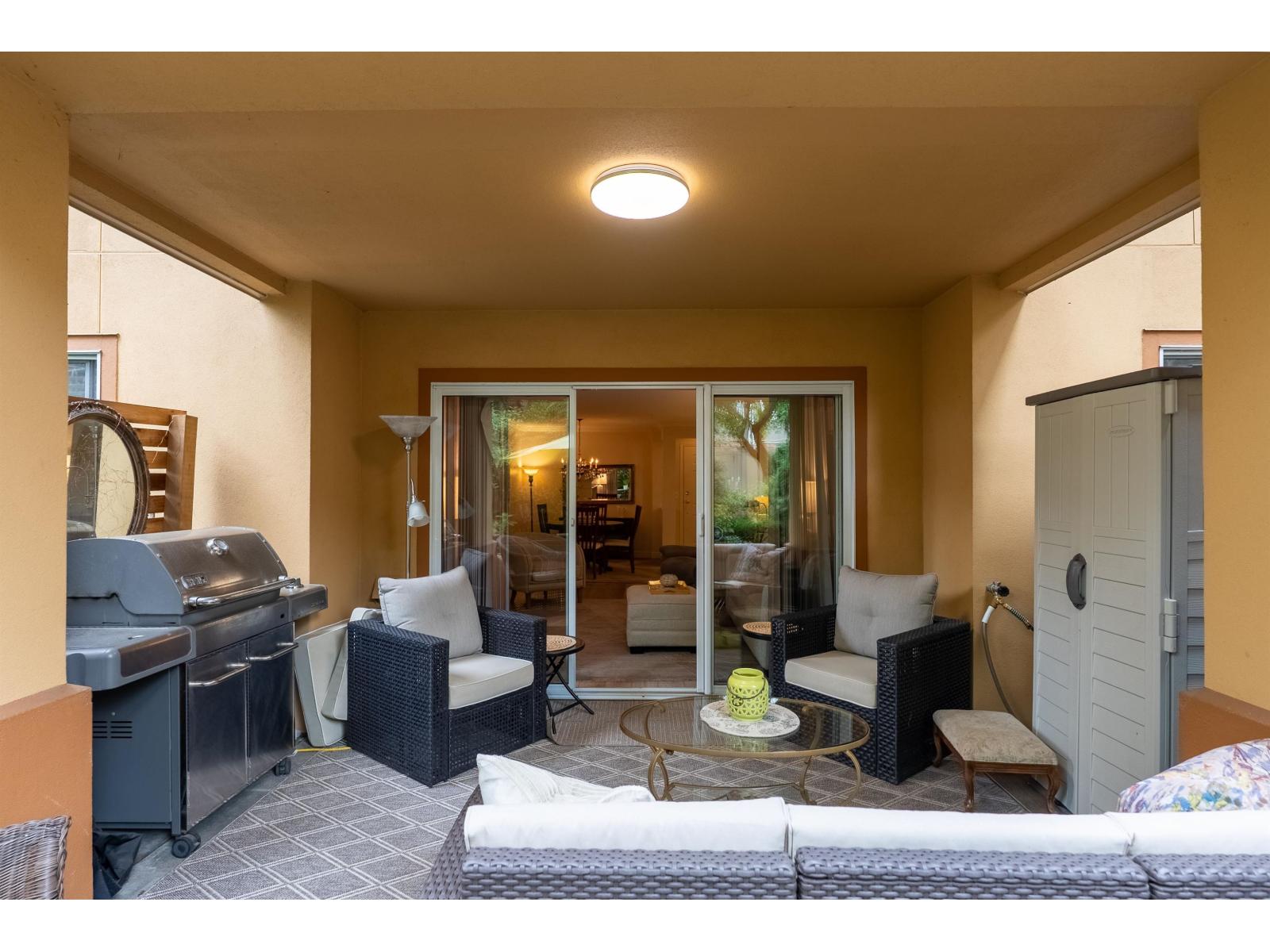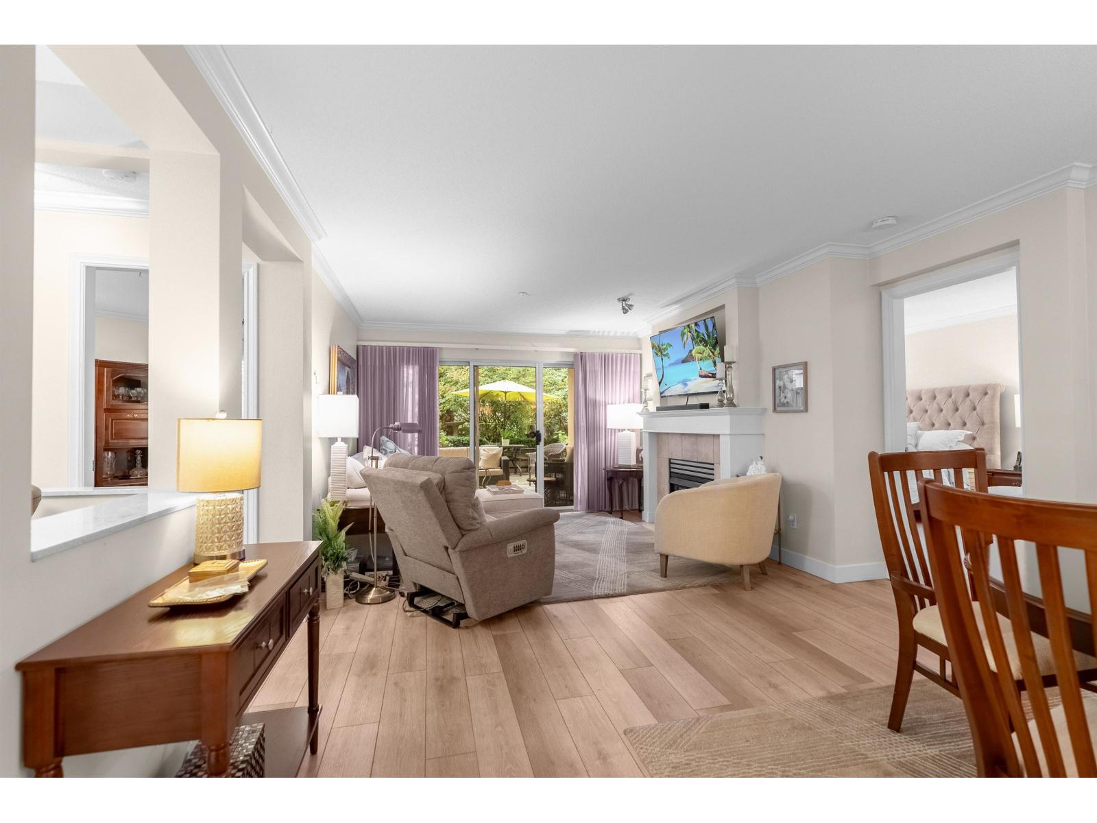 $491.80 MonthlySpacious & beautifully updated ground level condo in sought-after Villa Pacific. Bright, airy layout with large windows, stylish vinyl flooring, cozy gas fireplace, modern kitchen, bathrooms & high end LG appliances. Two well-separated bedrooms: king-sized primary with refined ensuite, queen-sized secondary. Two full, upgraded baths. Enjoy entertaining on your expansive, private, sun-filled covered patio. Complex offers recent upgrades, robust contingency fund ($681,393), proactive strata & excellent amenities: fitness centre, workshop, library, lounge, bike storage, car wash. Secure underground parking & storage locker. Peaceful, walkable area near Semiahmoo Trail. Gas included in strata fees. Family & pet friendly, in Semiahmoo Sec catchment. Move-in ready home. (id:52823)