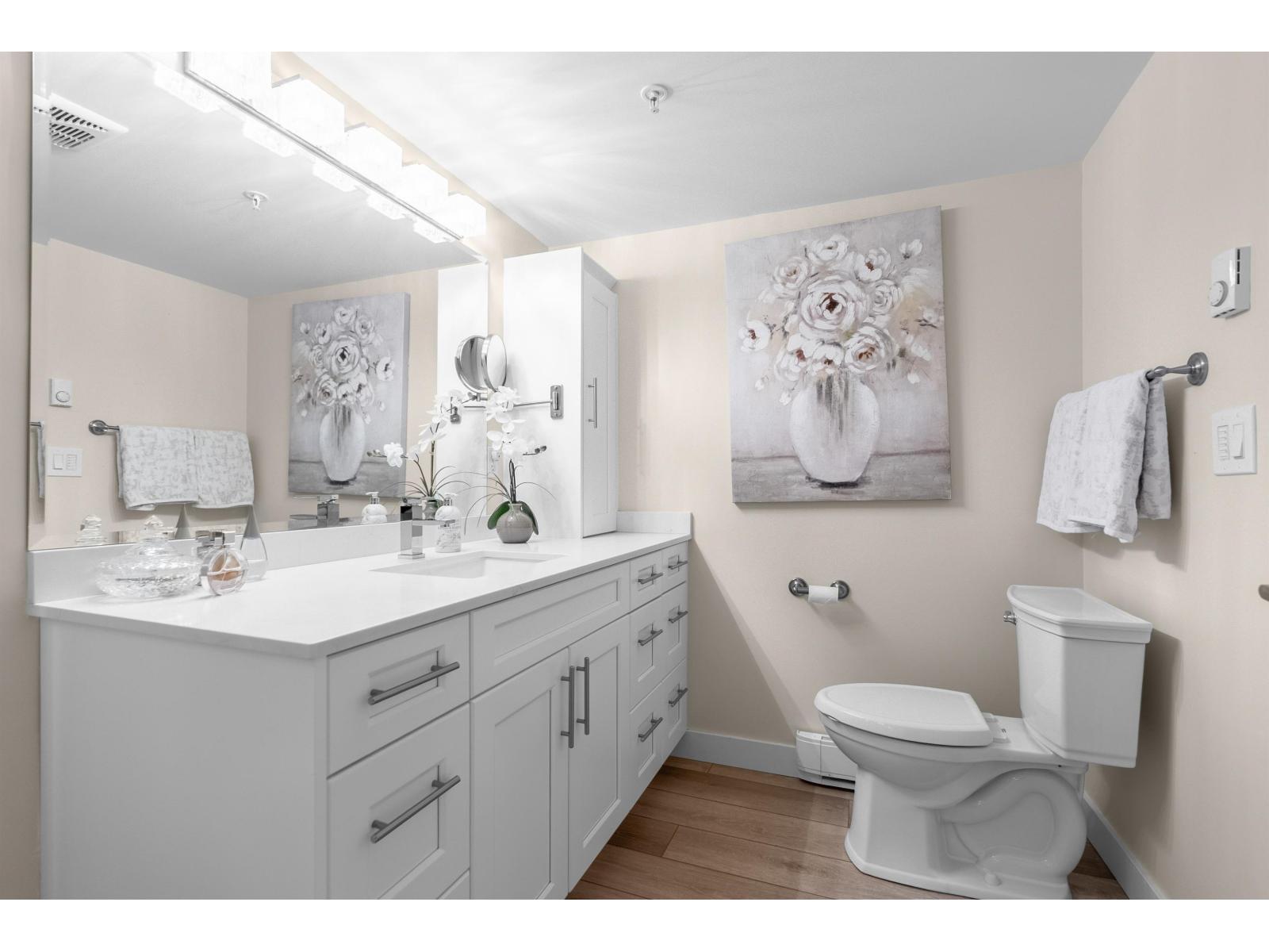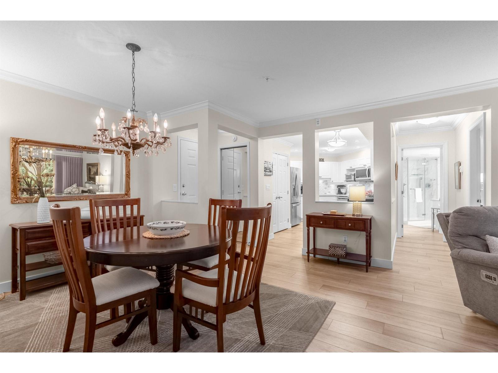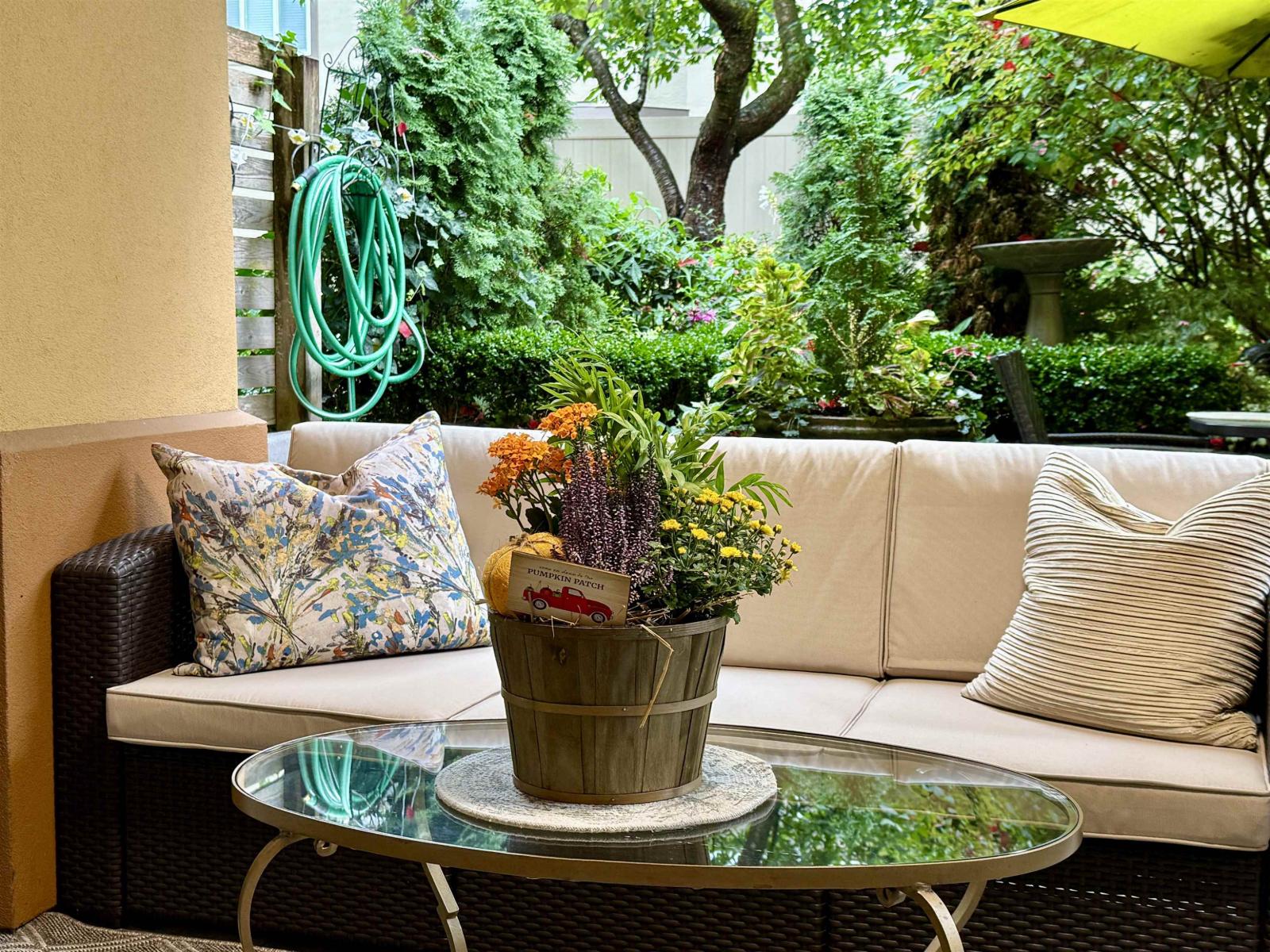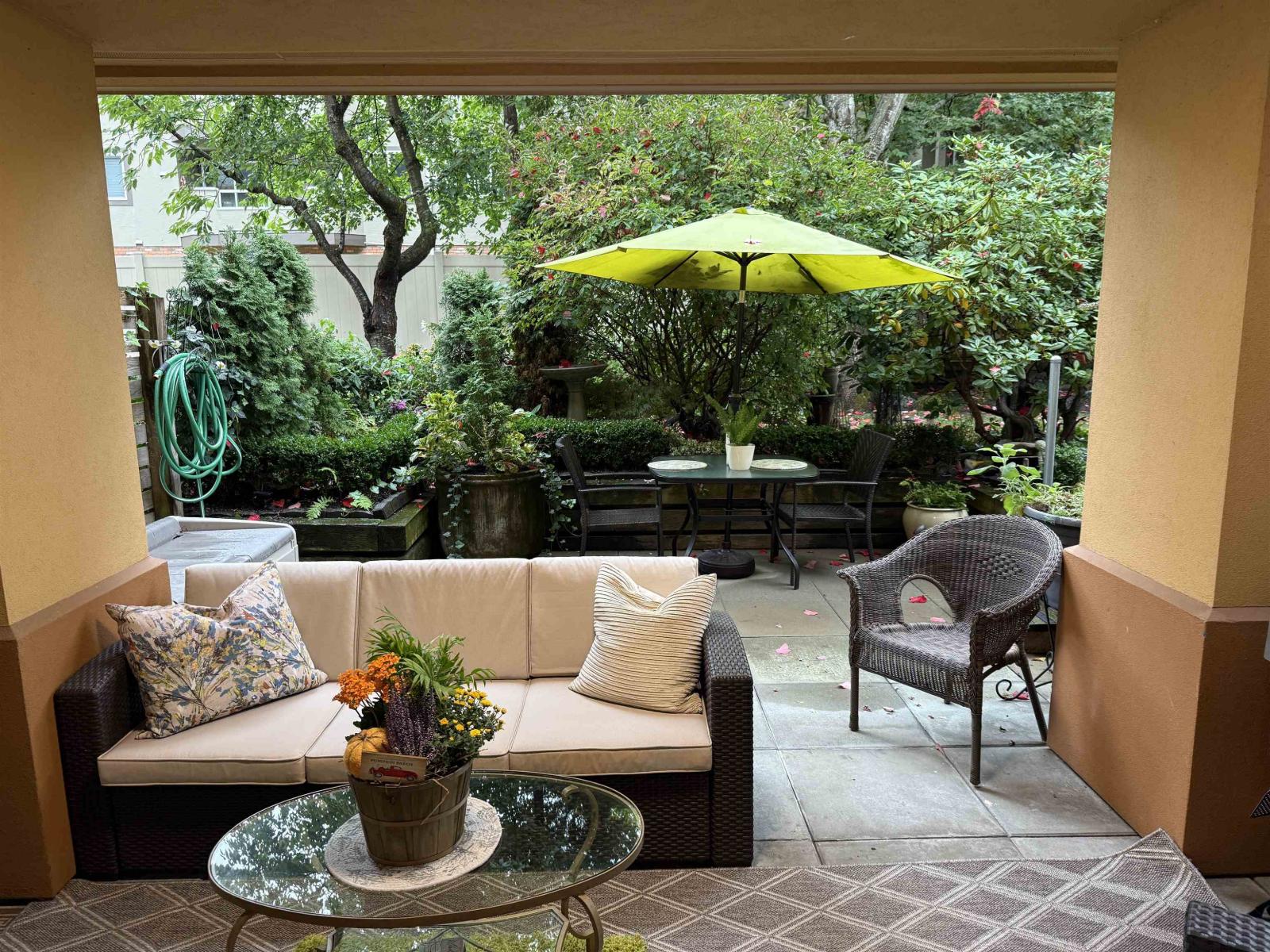 $491.80 MonthlySpacious & beautifully updated ground level condo in sought-after Villa Pacific. Bright, airy layout with large windows, stylish vinyl flooring, cozy gas fireplace, modern kitchen, bathrooms & high end LG appliances. Two well-separated bedrooms: king-sized primary with refined ensuite, queen-sized secondary. Two full, upgraded baths. Enjoy entertaining on your expansive, private, sun-filled covered patio. Complex offers recent upgrades, robust contingency fund ($681,393), proactive strata & excellent amenities: fitness centre, workshop, library, lounge, bike storage, car wash. Secure underground parking & storage locker. Peaceful, walkable area near Semiahmoo Trail. Gas included in strata fees. Family & pet friendly, in Semiahmoo Sec catchment. Move-in ready home. (id:52823)