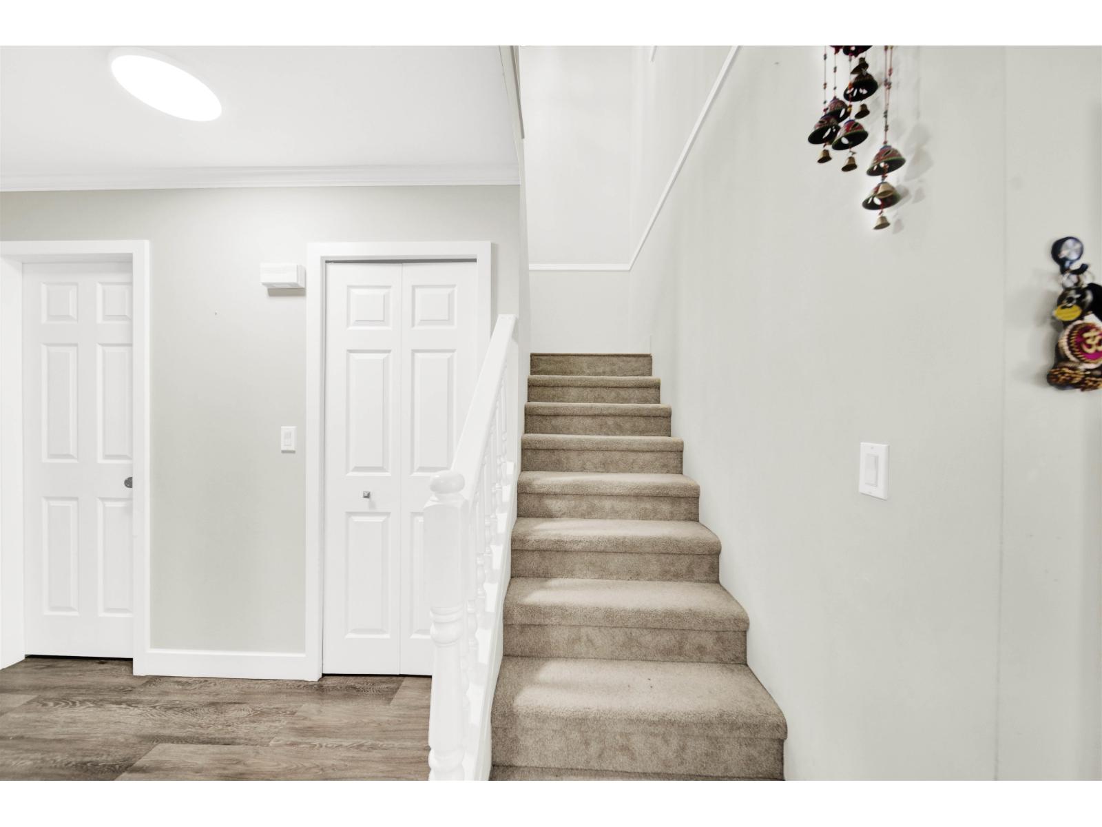 $296.75 MonthlyBeautiful 3 Bedroom, 3 Bathroom, 2-level home with bright, fully fenced private yard just off the kitchen and family rooms. In this Sunny kitchen, LED lighting, solid surface countertops, and well maintained s/s appliance, carpet flooring, and generous sized rooms throughout this great floor plan. Upstairs are the 3 bedrooms, and a full bathroom, with the Master offering a walk-in closet, and a 4pc Ensuite. Two parking, including the single attached garage. This home is in a quiet, friendly, well-run complex. Perfectly located, your Wapella Place home is steps to Frost Road Elementary, Fresh St. Market, Surrey Sport & Leisure Complex, Fleetwood Park Village Shopping, Fraser Hwy & a future skytrain station. (id:52823)