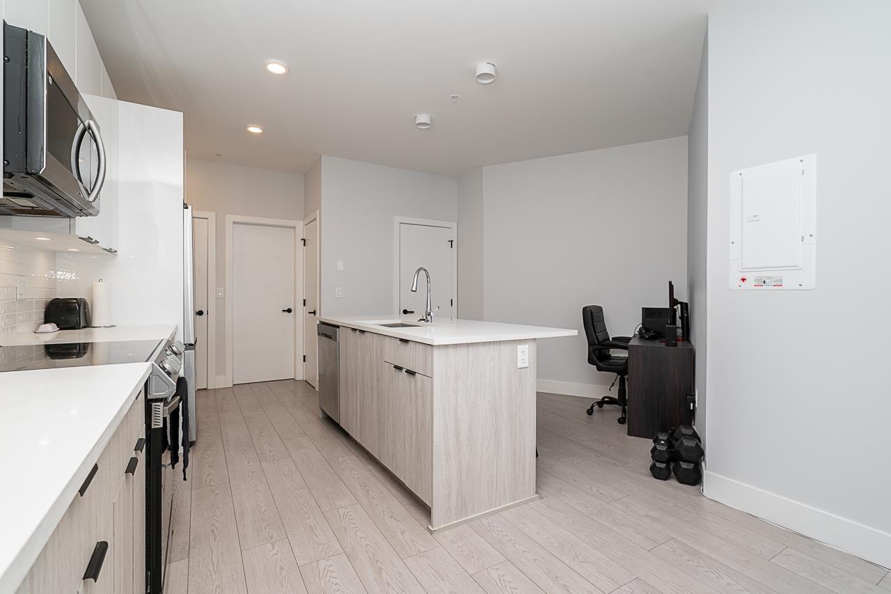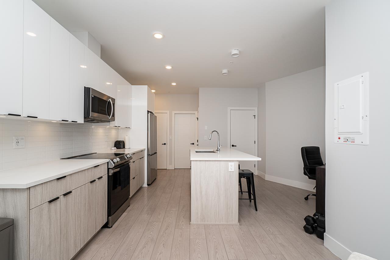 $329.69 MonthlyInvest in the future! This immaculate 1 bed, 1 bath home at Genesis offers great amenities and proximity to everything! With Skytrain on the way to the area, this home offers a prime location for commuters. Inside you'll find a roomy kitchen, tastefully designed with tons of storage and S/S appliances, including a large island with eating bar. Nicely appointed bath, a nook for dining or desk and bedroom with good sized closet. Building amenities include a gym, amenity room, putting green and garden area. Close to absolutely everything....transit, breweries, shops and restaurants. City living at its best. (id:52823)