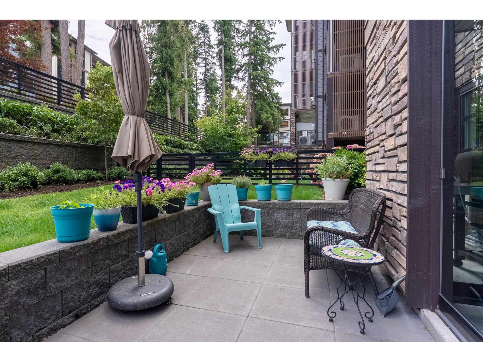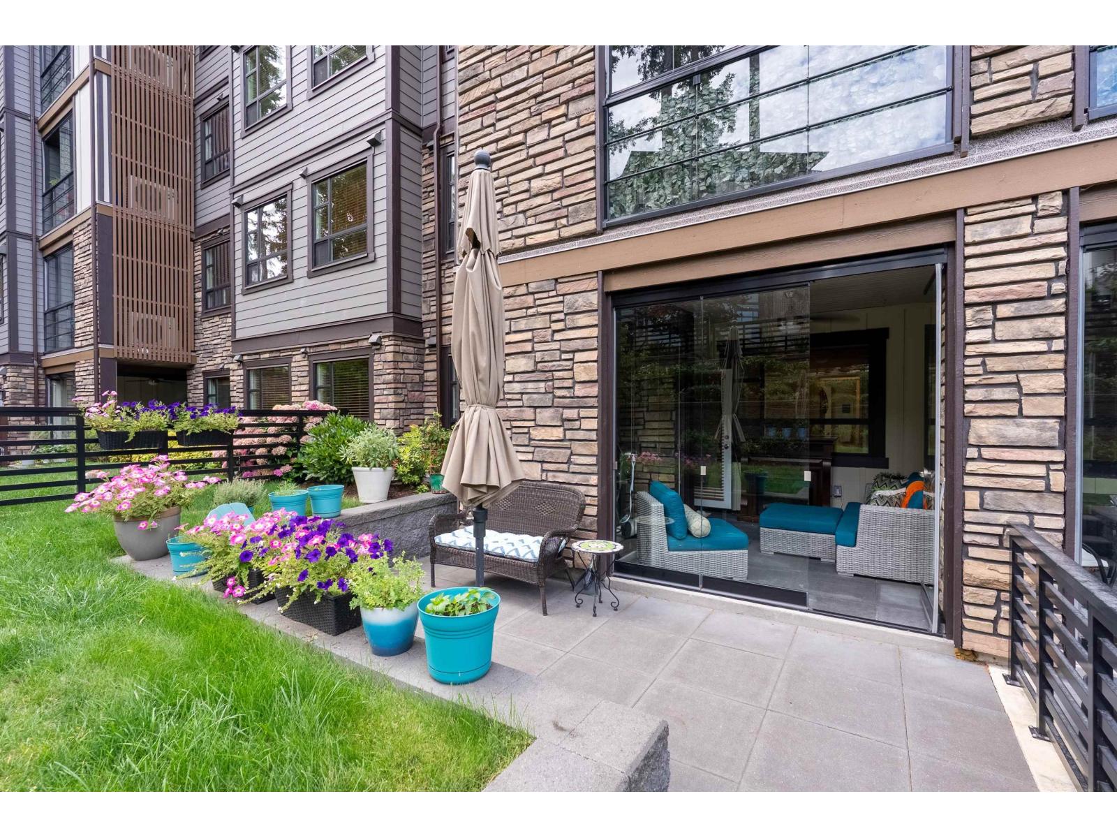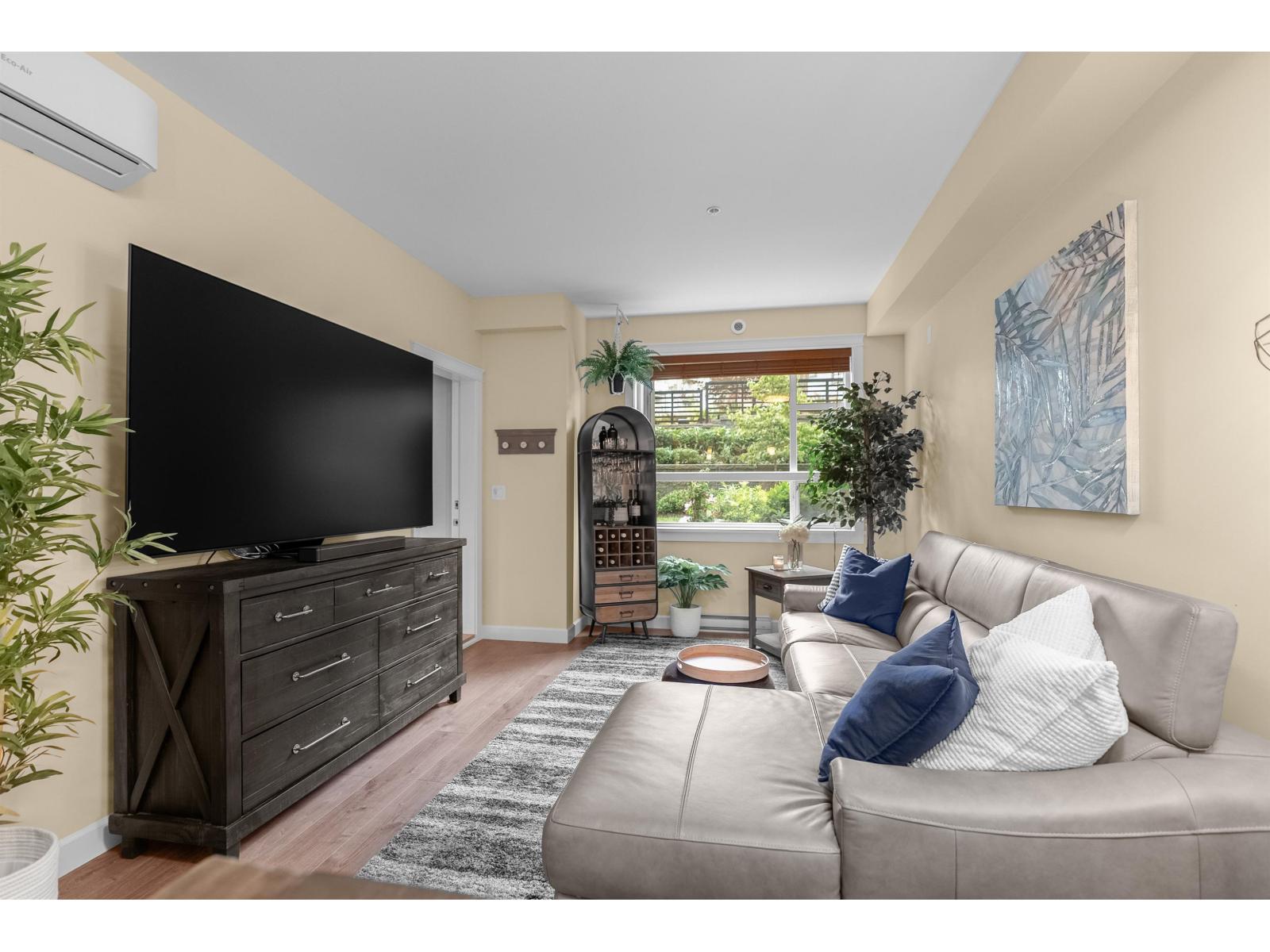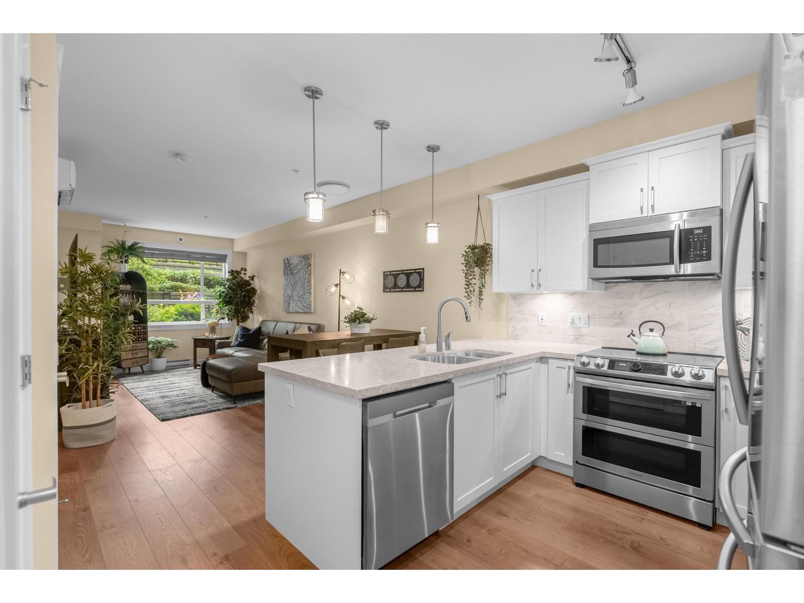 $315 MonthlySpacious ground-floor home with retractable glass solarium, and bonus 200 sqft private patio in Sought-After Forest Ridge by Quadra Homes! Perfectly located just minutes from Crescent Beach, Hwy 99, and South Surrey Park & Ride. This beautifully ground-floor unit offers park views. Ideal for pet lovers, gardeners, and year-round entertaining. Enjoy stylish upgraded flooring throughout, AC, and outdoor gas hookup for seamless summer BBQs. The chef-inspired kitchen boasts stainless steel appliances including a new induction range, quartz counters and timeless white shaker cabinetry. Soaring 9' ceilings and Quadra's exclusive sound-dampening acoustic package. Includes 2 secure underground parking stalls and storage locker. Open House October 4th, 1-3pm. (id:52823)
