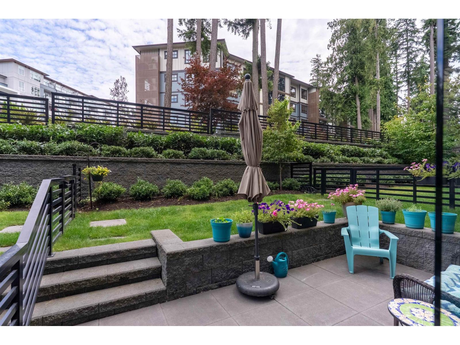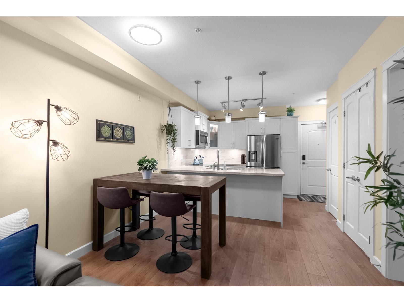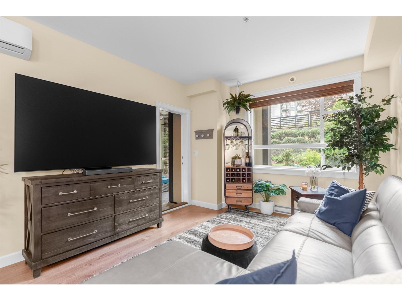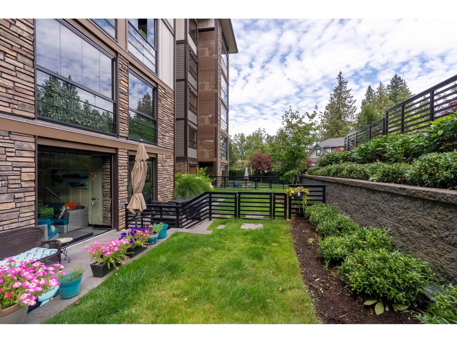 $315 MonthlySpacious ground-floor home with retractable glass solarium, and bonus 200 sqft private patio in Sought-After Forest Ridge by Quadra Homes! Perfectly located just minutes from Crescent Beach, Hwy 99, and South Surrey Park & Ride. This beautifully ground-floor unit offers park views. Ideal for pet lovers, gardeners, and year-round entertaining. Enjoy stylish upgraded flooring throughout, AC, and outdoor gas hookup for seamless summer BBQs. The chef-inspired kitchen boasts stainless steel appliances including a new induction range, quartz counters and timeless white shaker cabinetry. Soaring 9' ceilings and Quadra's exclusive sound-dampening acoustic package. Includes 2 secure underground parking stalls and storage locker. Open House October 4th, 1-3pm. (id:52823)