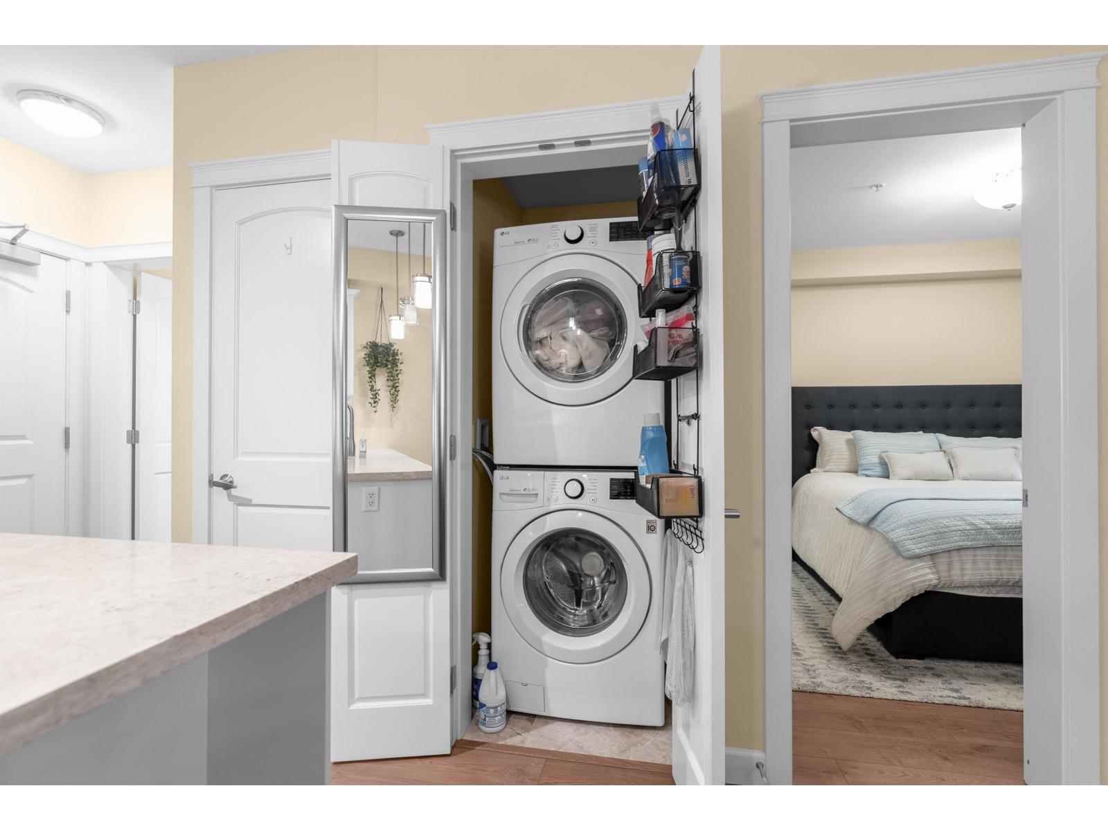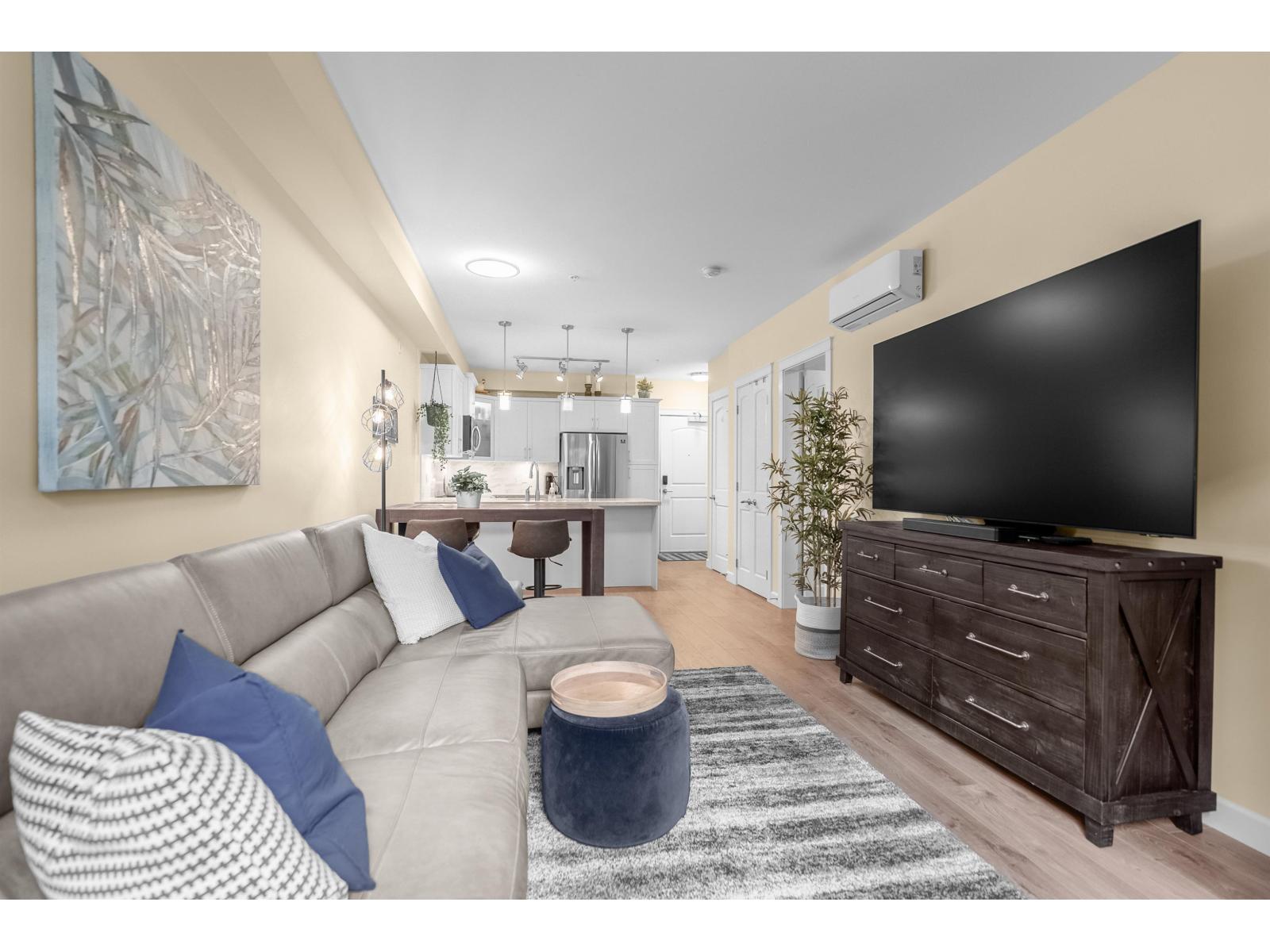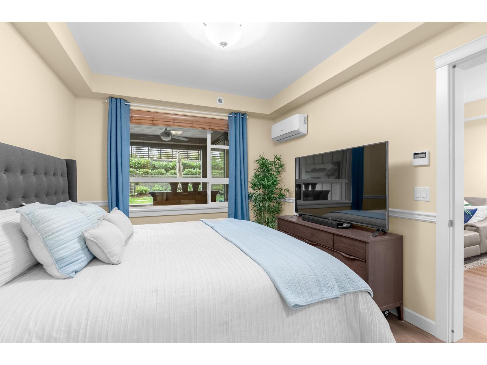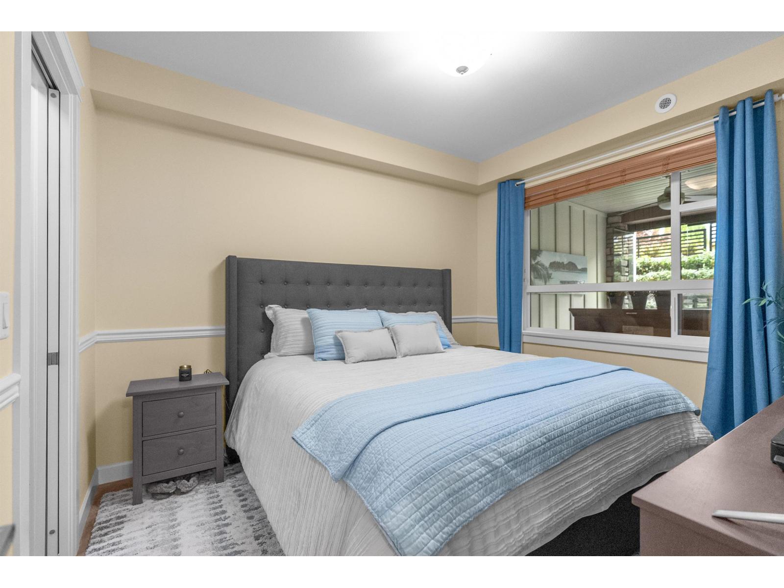 $315 MonthlySpacious ground-floor home with retractable glass solarium, and bonus 200 sqft private patio in Sought-After Forest Ridge by Quadra Homes! Perfectly located just minutes from Crescent Beach, Hwy 99, and South Surrey Park & Ride. This beautifully ground-floor unit offers park views. Ideal for pet lovers, gardeners, and year-round entertaining. Enjoy stylish upgraded flooring throughout, AC, and outdoor gas hookup for seamless summer BBQs. The chef-inspired kitchen boasts stainless steel appliances including a new induction range, quartz counters and timeless white shaker cabinetry. Soaring 9' ceilings and Quadra's exclusive sound-dampening acoustic package. Includes 2 secure underground parking stalls and storage locker. Open House October 4th, 1-3pm. (id:52823)