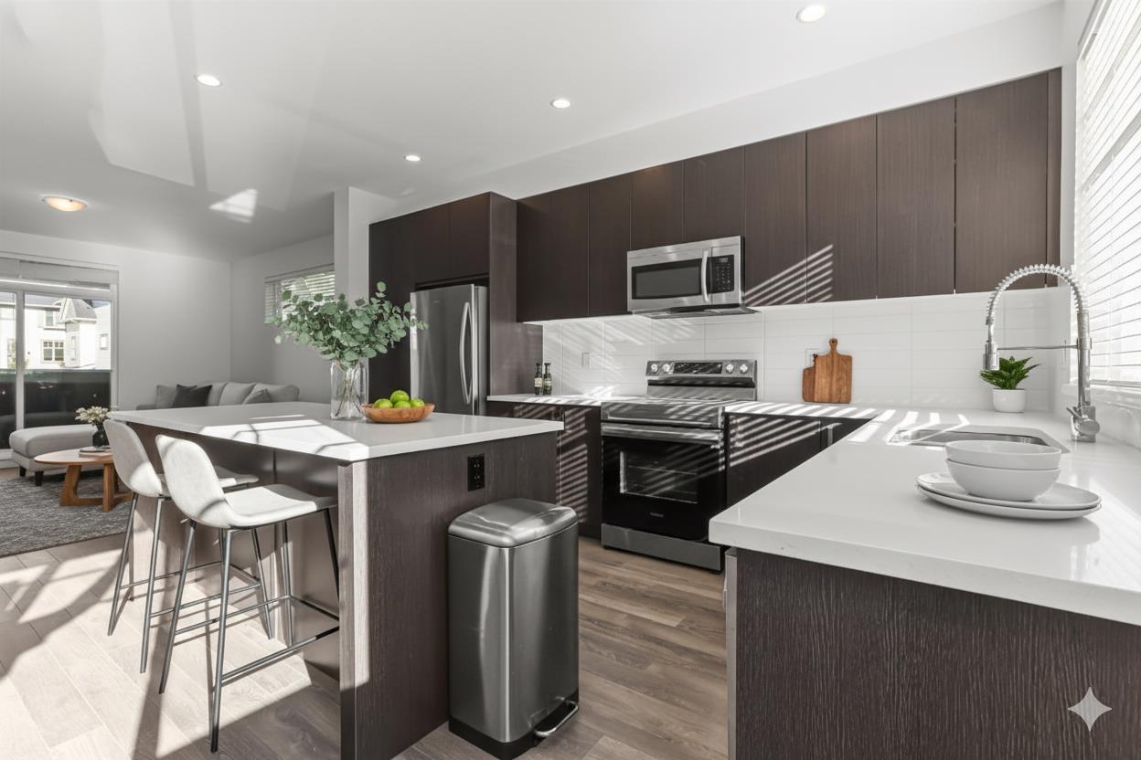 $343.18 MonthlyWelcome to Fleetwood Village! This beautiful END UNIT has 4 bedrooms, 4 bathrooms. The main floor features an elegant kitchen with stainless steel appliances and a large island, an open and bright living area with 9-foot ceilings, a convenient powder room, and a covered deck. Upstairs, three spacious bedrooms, including a primary suite with a walk-in closet and a luxurious ensuite bathroom. The lower level includes a versatile fourth bedroom with its own ensuite-ideal for guests, teenagers, or a home office and a double side-by-side garage. This unit has one of the most desirable locations in the complex. Located just steps from Fleetwood Park Village Shopping, recreation center, and the future 160 Street SkyTrain station, this home combines modern comfort with exceptional convenience. (id:52823)