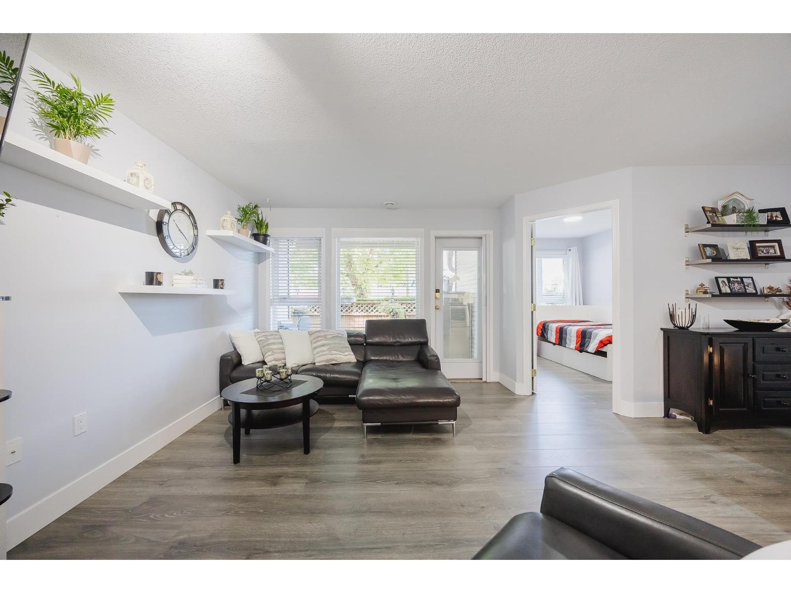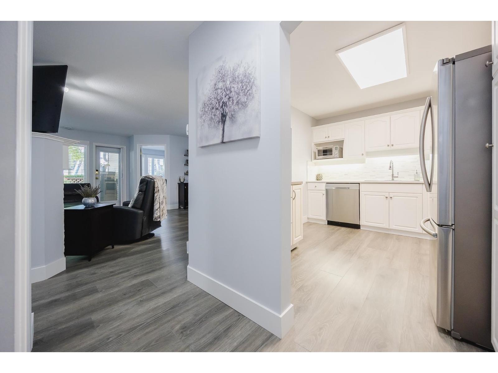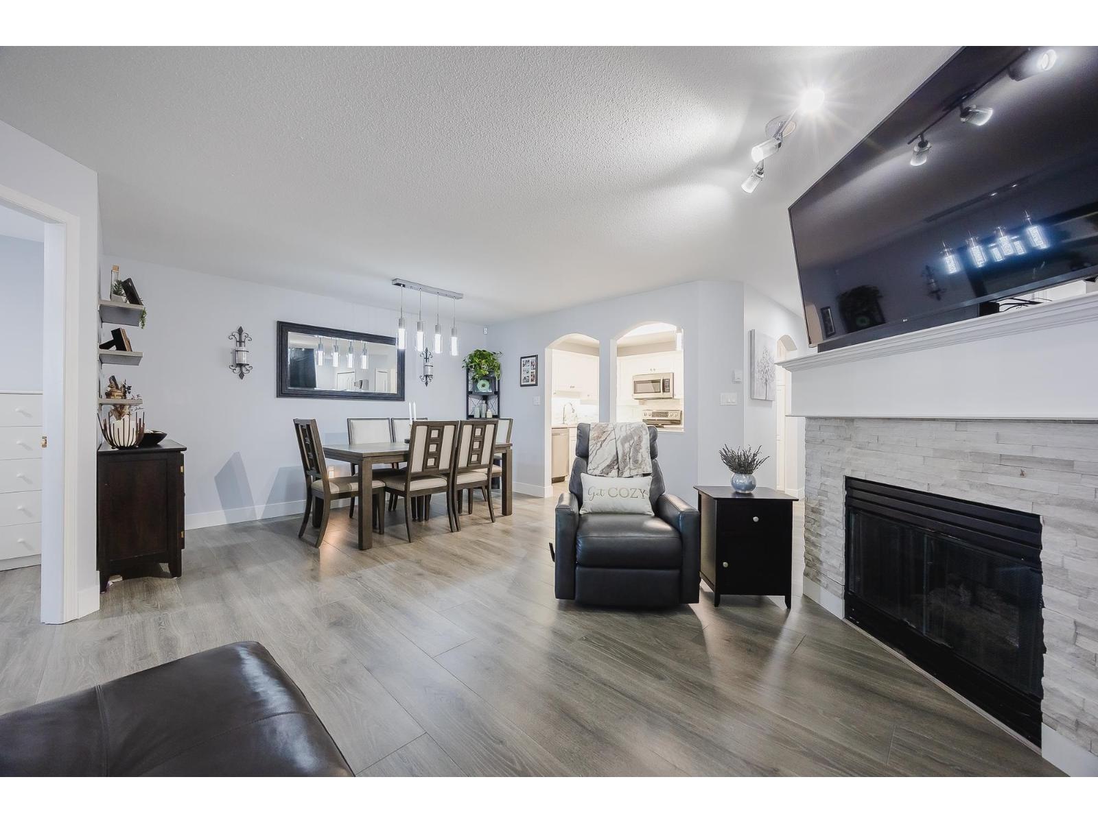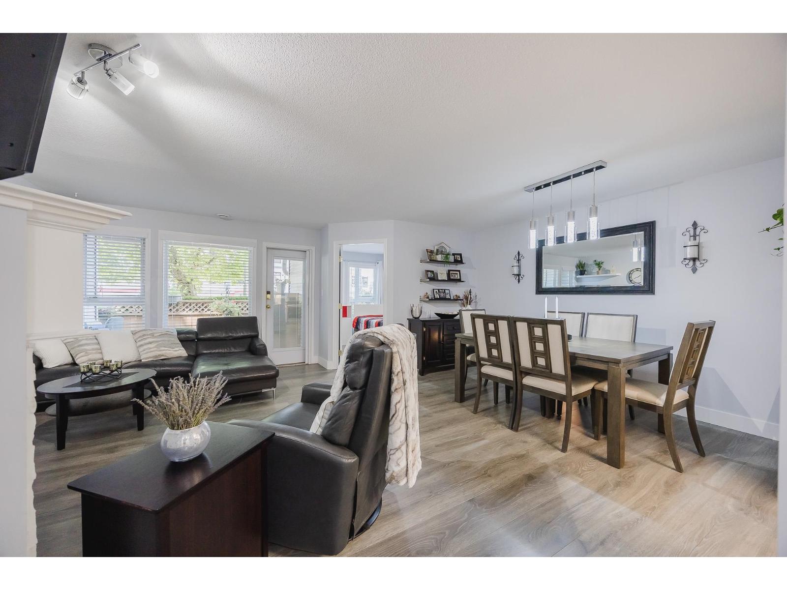 $439.36 MonthlyWelcome to Derby Downs! South-facing 2-bed, 1.5-bath offers 986 sq ft of stylish living. Updates include SS appliances, flooring, lighting, paint, and blinds. A spacious primary bedroom fits a full king set. In-suite laundry. Fully fenced private yard with gate offers walk-in access. Strata fee includes in-floor radiant heat, hot water, and gas. Amenities: guest suite, amenity room, gym, workshop, EV stations. Walk to shops, dining, schools, and the future Cloverdale Hospital. Owner-loved for 19 years! Wonderful ammenities room with a full kitchen, pool table and outdoor patio, parking is right next to elevator and a large storage locker! (id:52823)