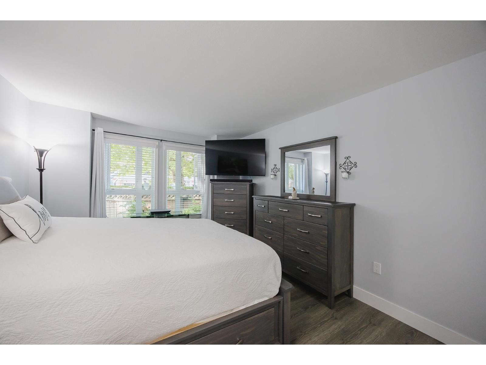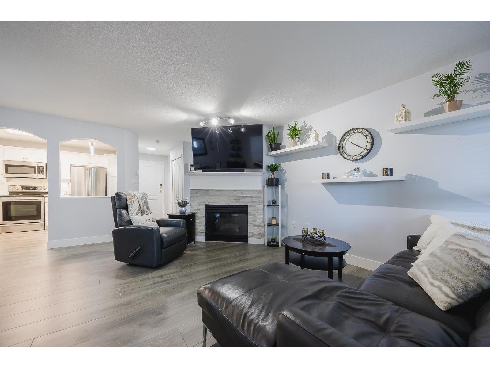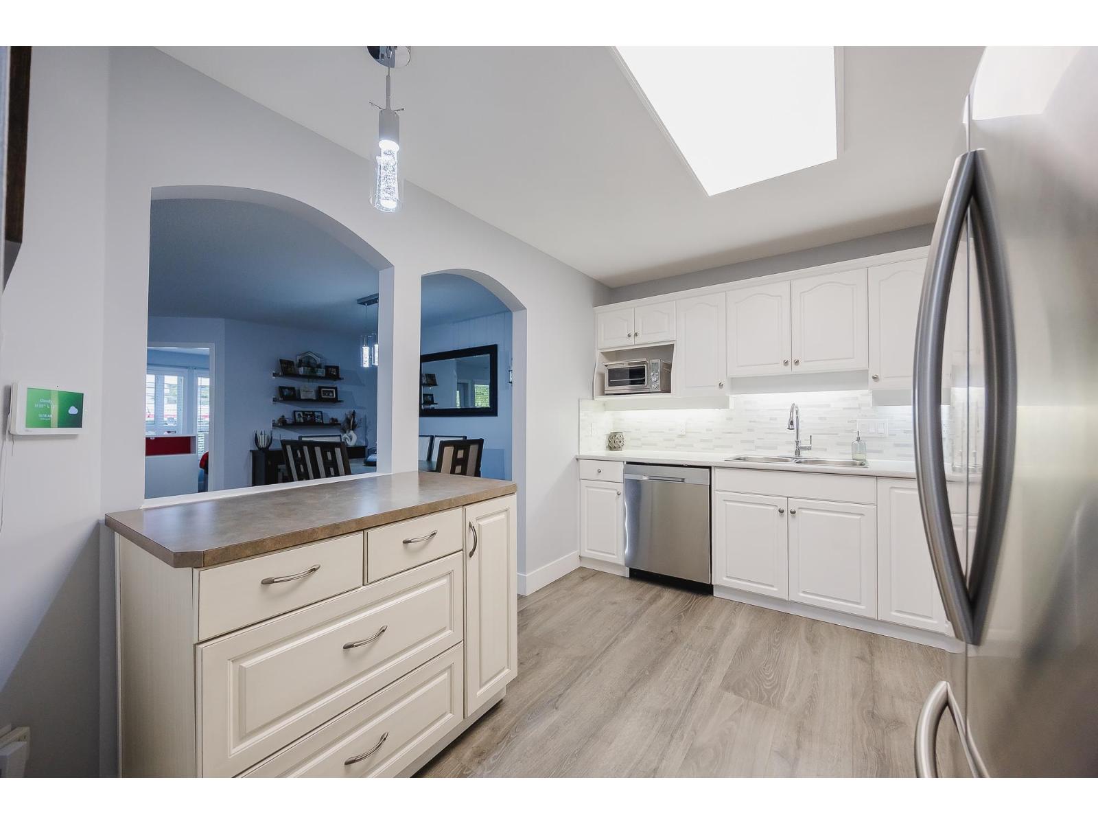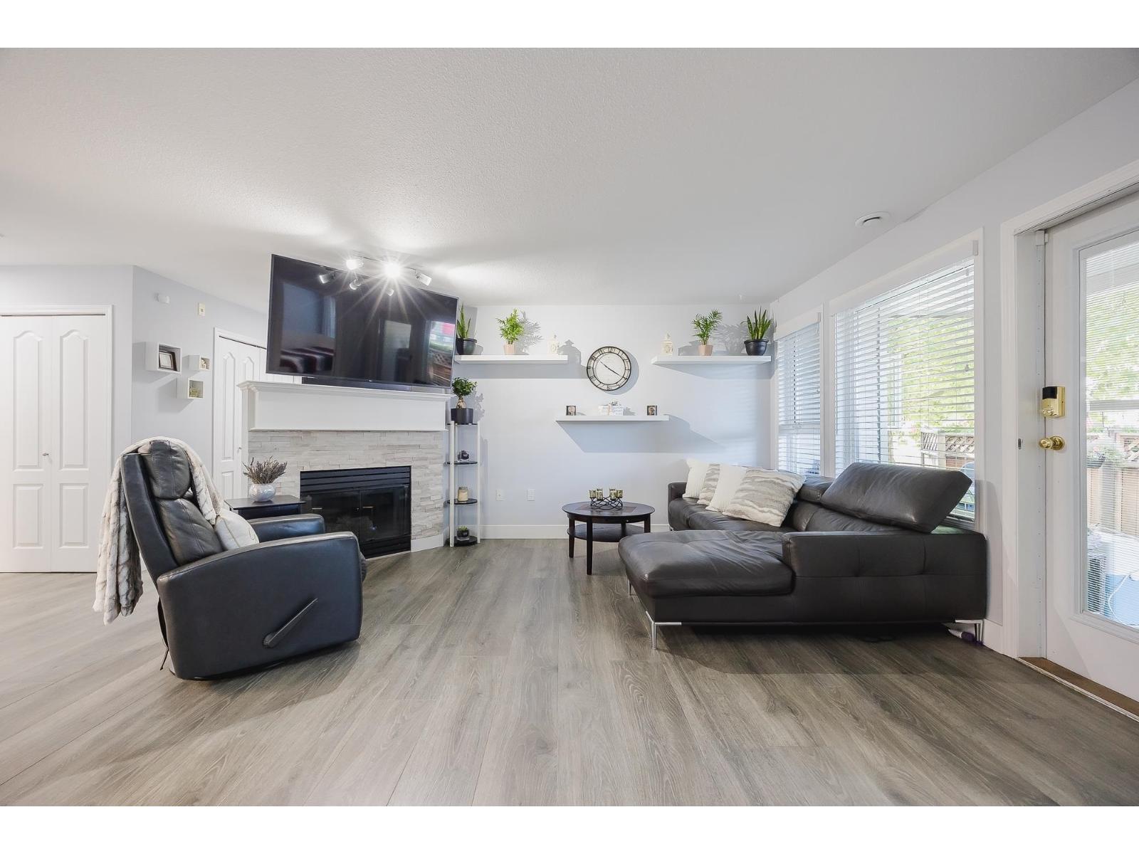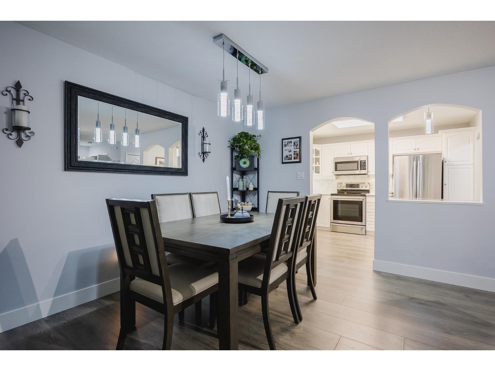 $439.36 MonthlyWelcome to Derby Downs! South-facing 2-bed, 1.5-bath offers 986 sq ft of stylish living. Updates include SS appliances, flooring, lighting, paint, and blinds. A spacious primary bedroom fits a full king set. In-suite laundry. Fully fenced private yard with gate offers walk-in access. Strata fee includes in-floor radiant heat, hot water, and gas. Amenities: guest suite, amenity room, gym, workshop, EV stations. Walk to shops, dining, schools, and the future Cloverdale Hospital. Owner-loved for 19 years! Wonderful ammenities room with a full kitchen, pool table and outdoor patio, parking is right next to elevator and a large storage locker! (id:52823)