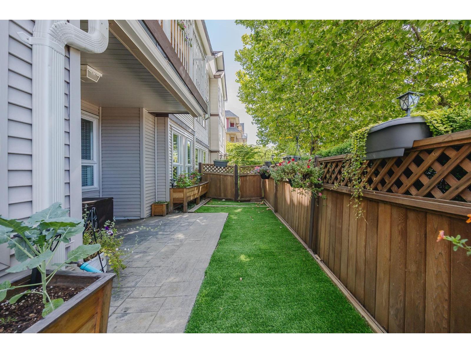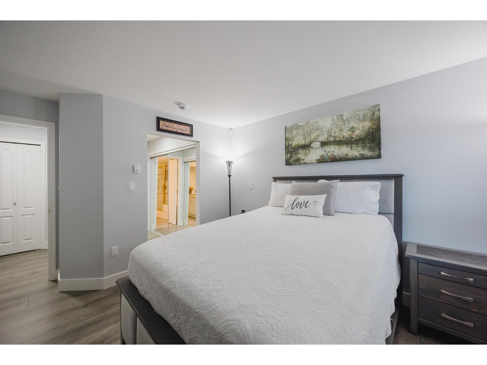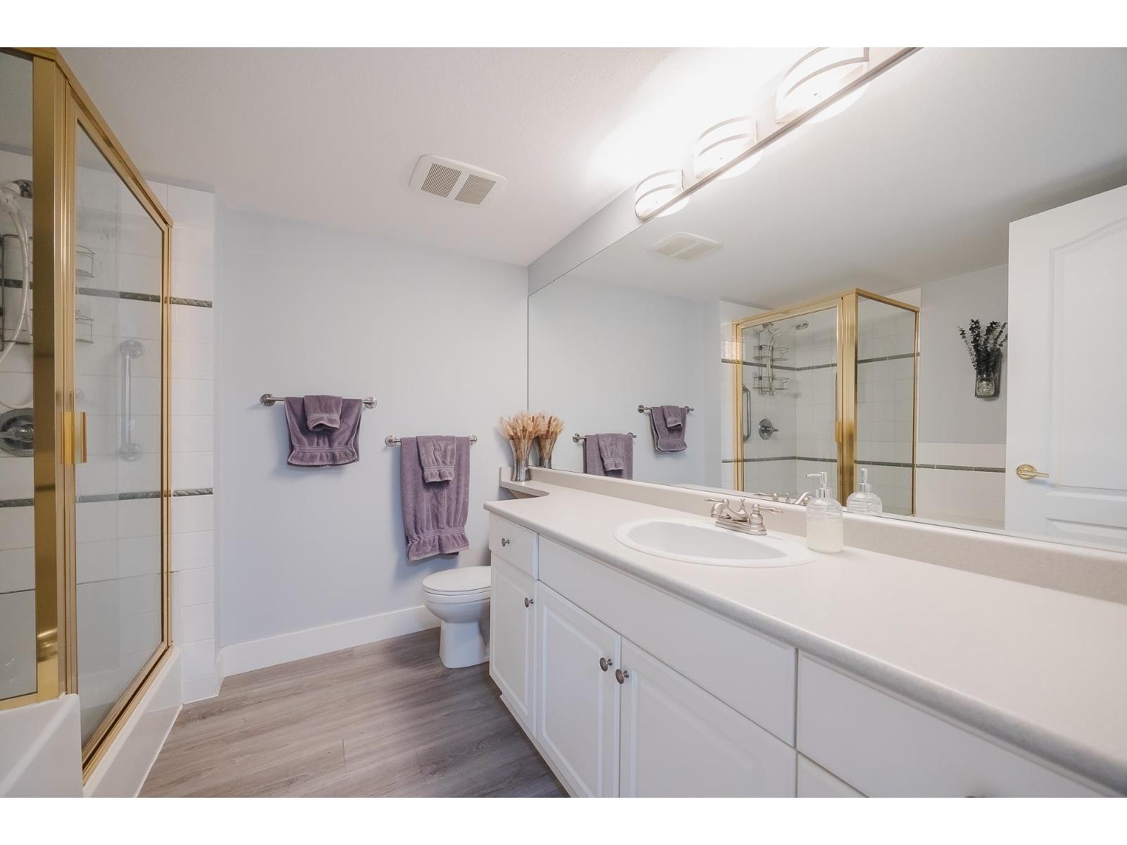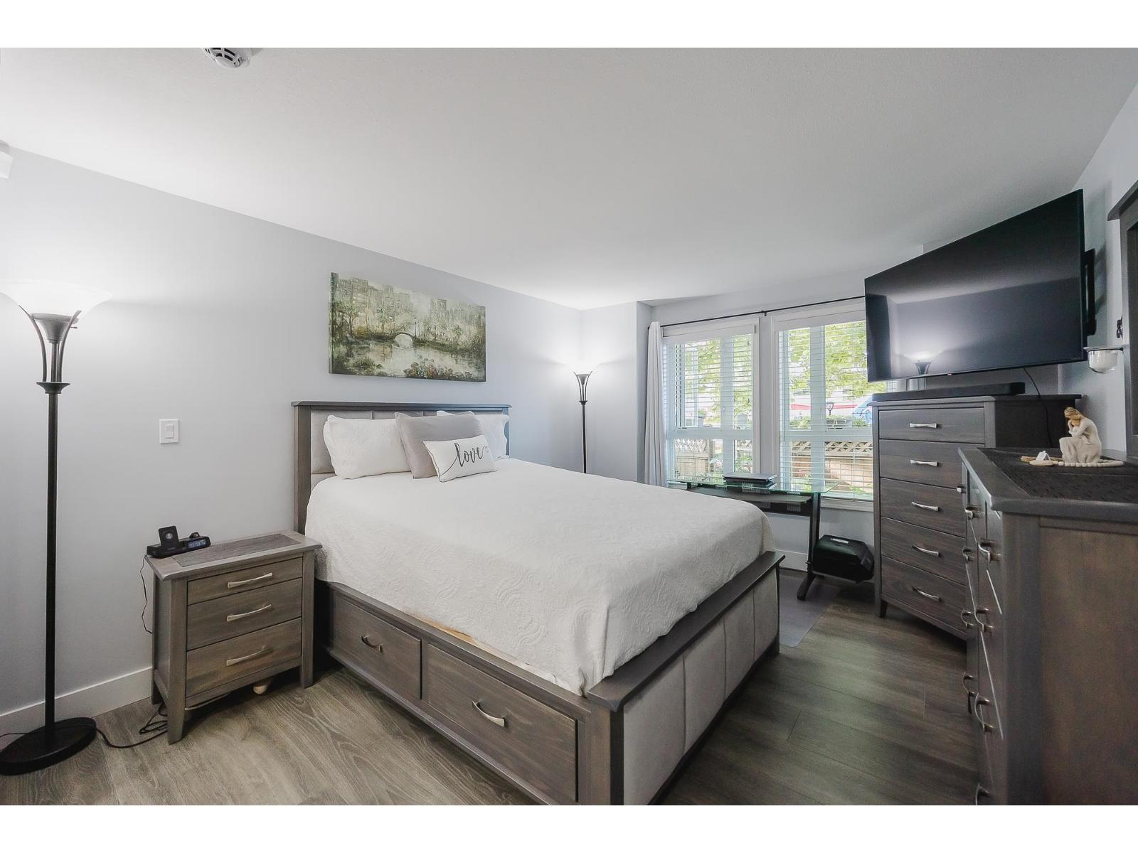 $439.36 MonthlyWelcome to Derby Downs! South-facing 2-bed, 1.5-bath offers 986 sq ft of stylish living. Updates include SS appliances, flooring, lighting, paint, and blinds. A spacious primary bedroom fits a full king set. In-suite laundry. Fully fenced private yard with gate offers walk-in access. Strata fee includes in-floor radiant heat, hot water, and gas. Amenities: guest suite, amenity room, gym, workshop, EV stations. Walk to shops, dining, schools, and the future Cloverdale Hospital. Owner-loved for 19 years! Wonderful ammenities room with a full kitchen, pool table and outdoor patio, parking is right next to elevator and a large storage locker! (id:52823)