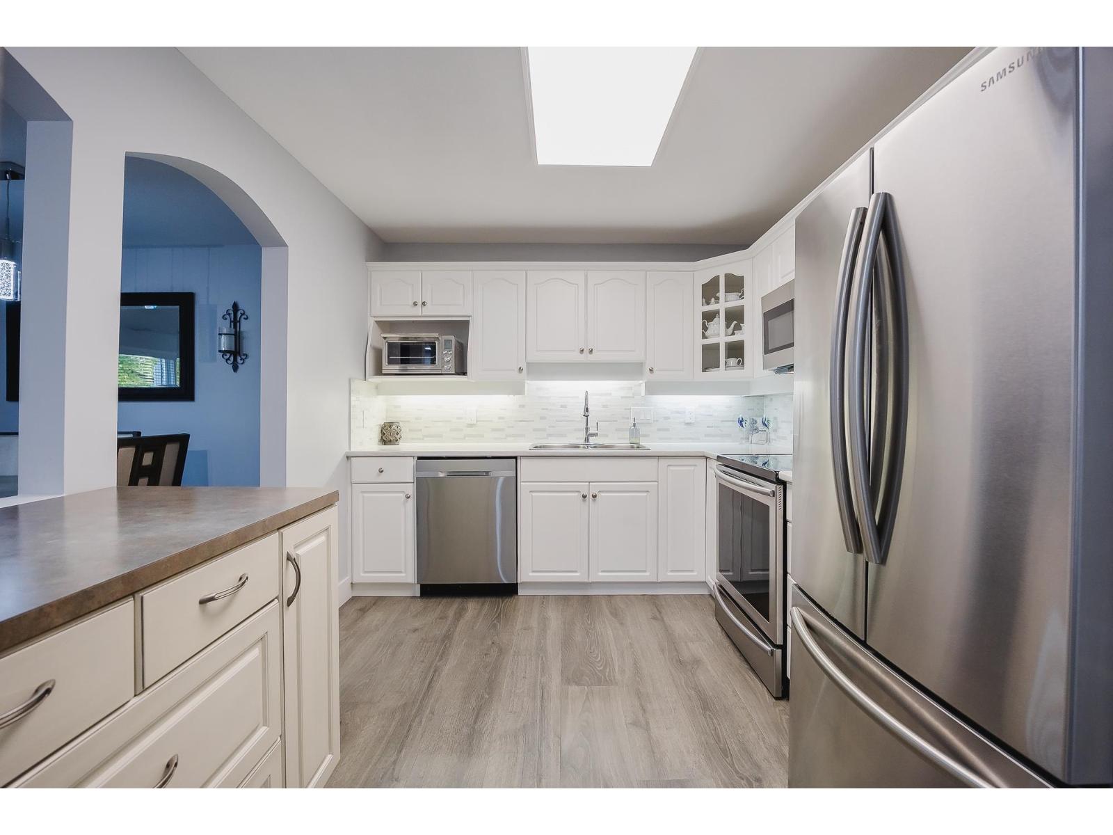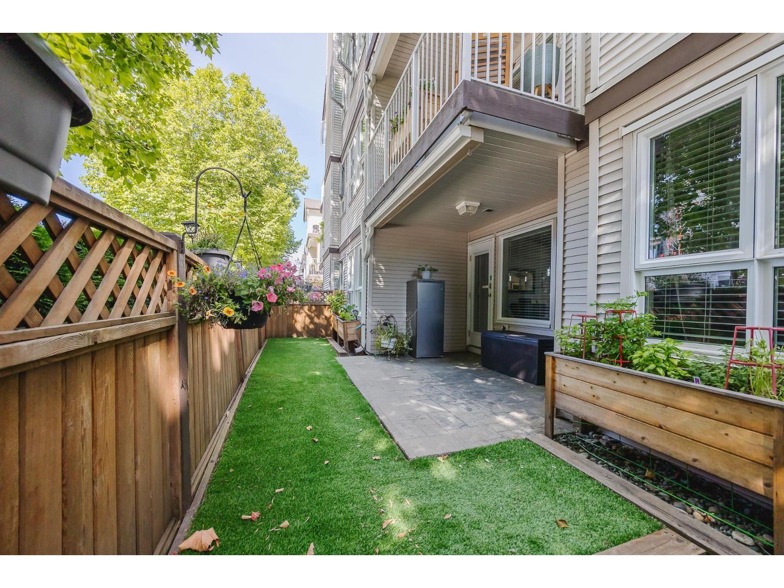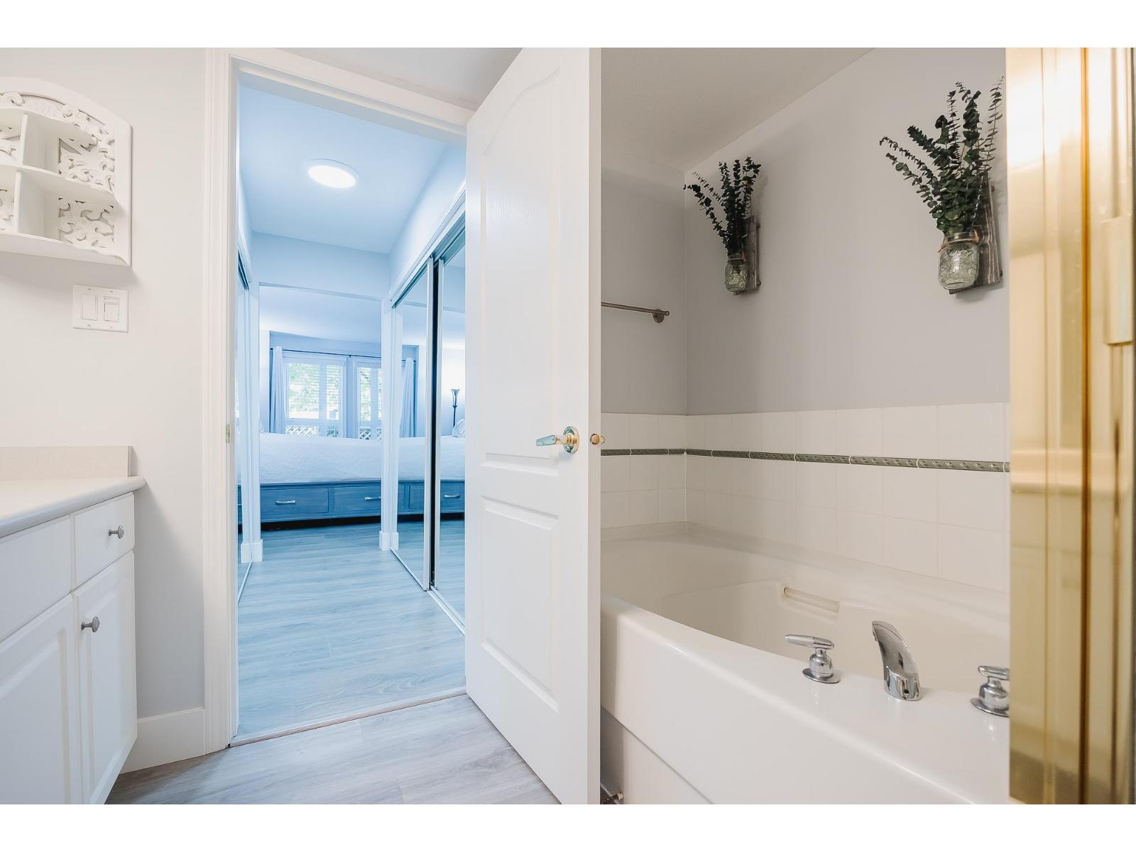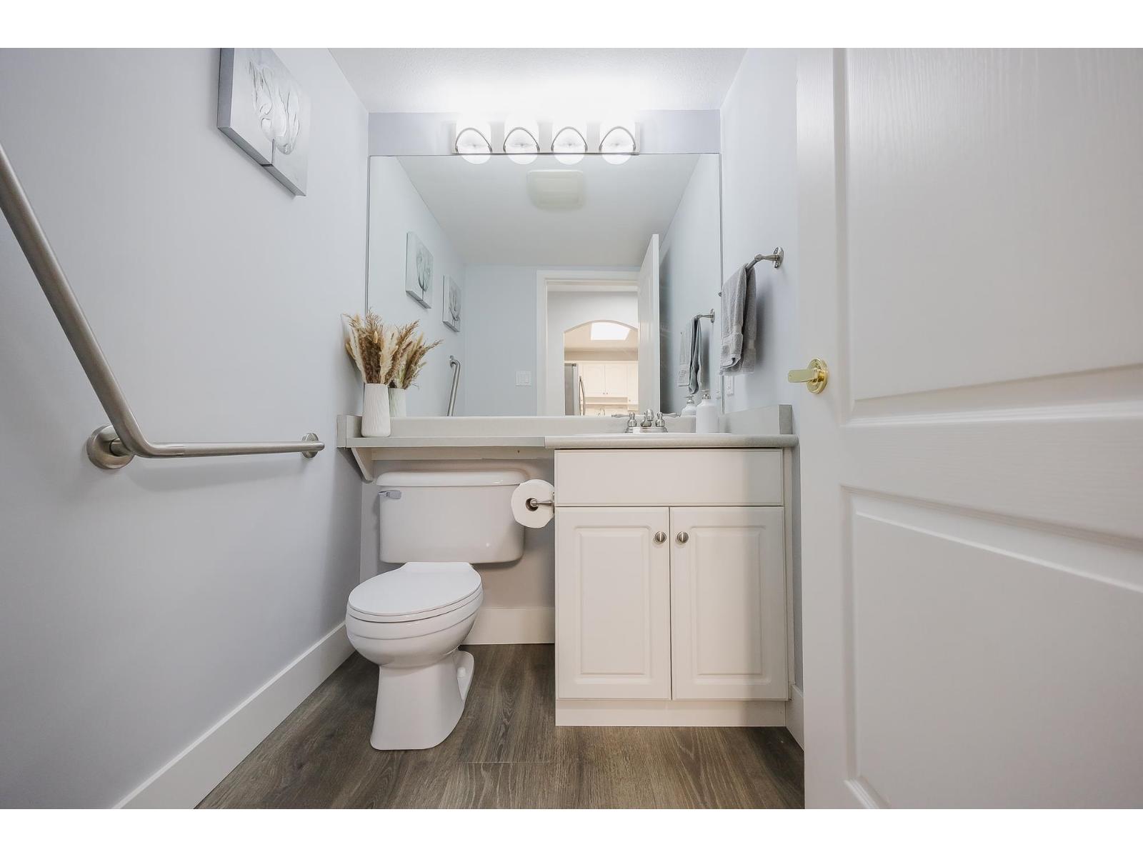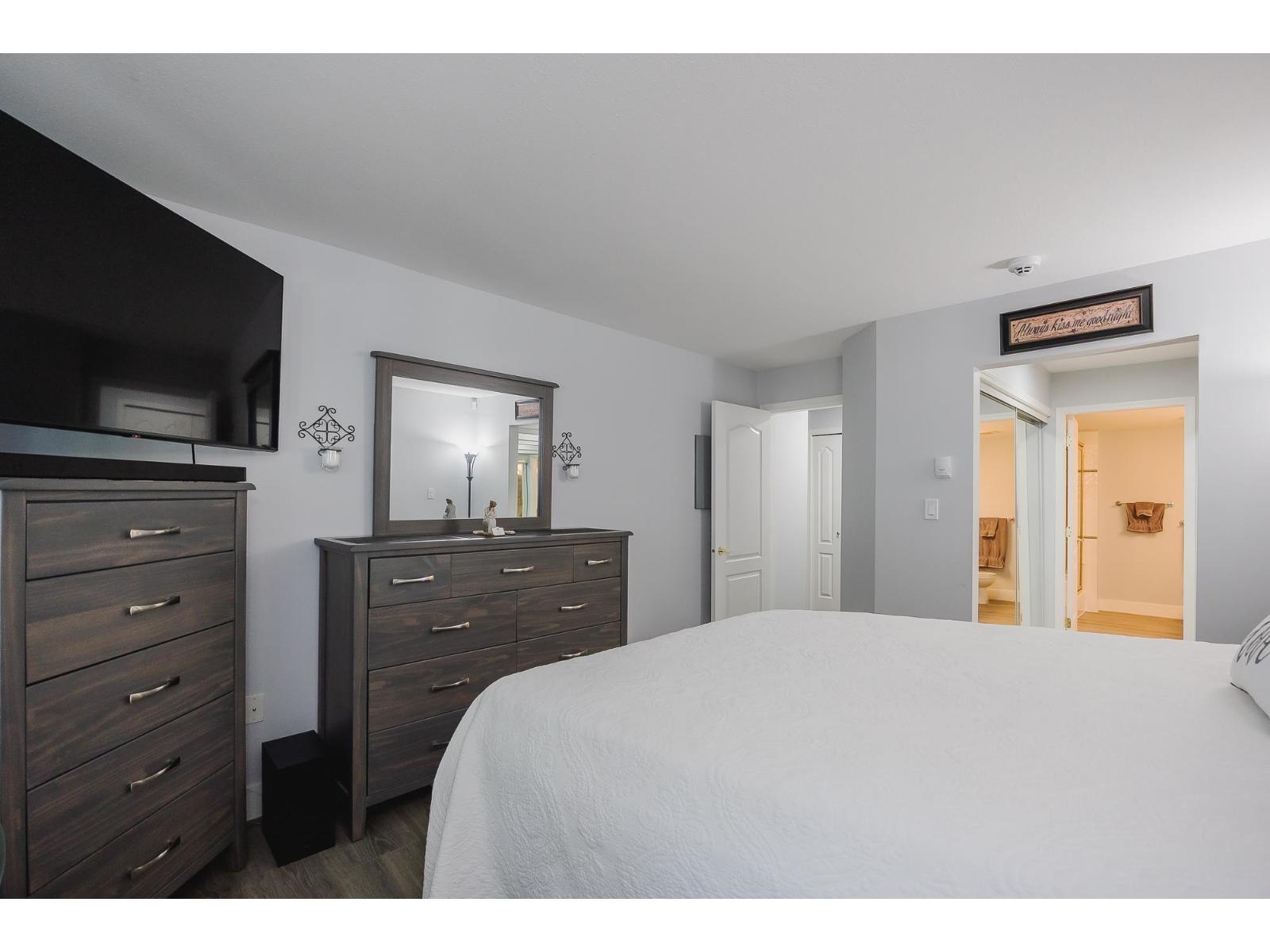 $439.36 MonthlyWelcome to Derby Downs! South-facing 2-bed, 1.5-bath offers 986 sq ft of stylish living. Updates include SS appliances, flooring, lighting, paint, and blinds. A spacious primary bedroom fits a full king set. In-suite laundry. Fully fenced private yard with gate offers walk-in access. Strata fee includes in-floor radiant heat, hot water, and gas. Amenities: guest suite, amenity room, gym, workshop, EV stations. Walk to shops, dining, schools, and the future Cloverdale Hospital. Owner-loved for 19 years! Wonderful ammenities room with a full kitchen, pool table and outdoor patio, parking is right next to elevator and a large storage locker! (id:52823)