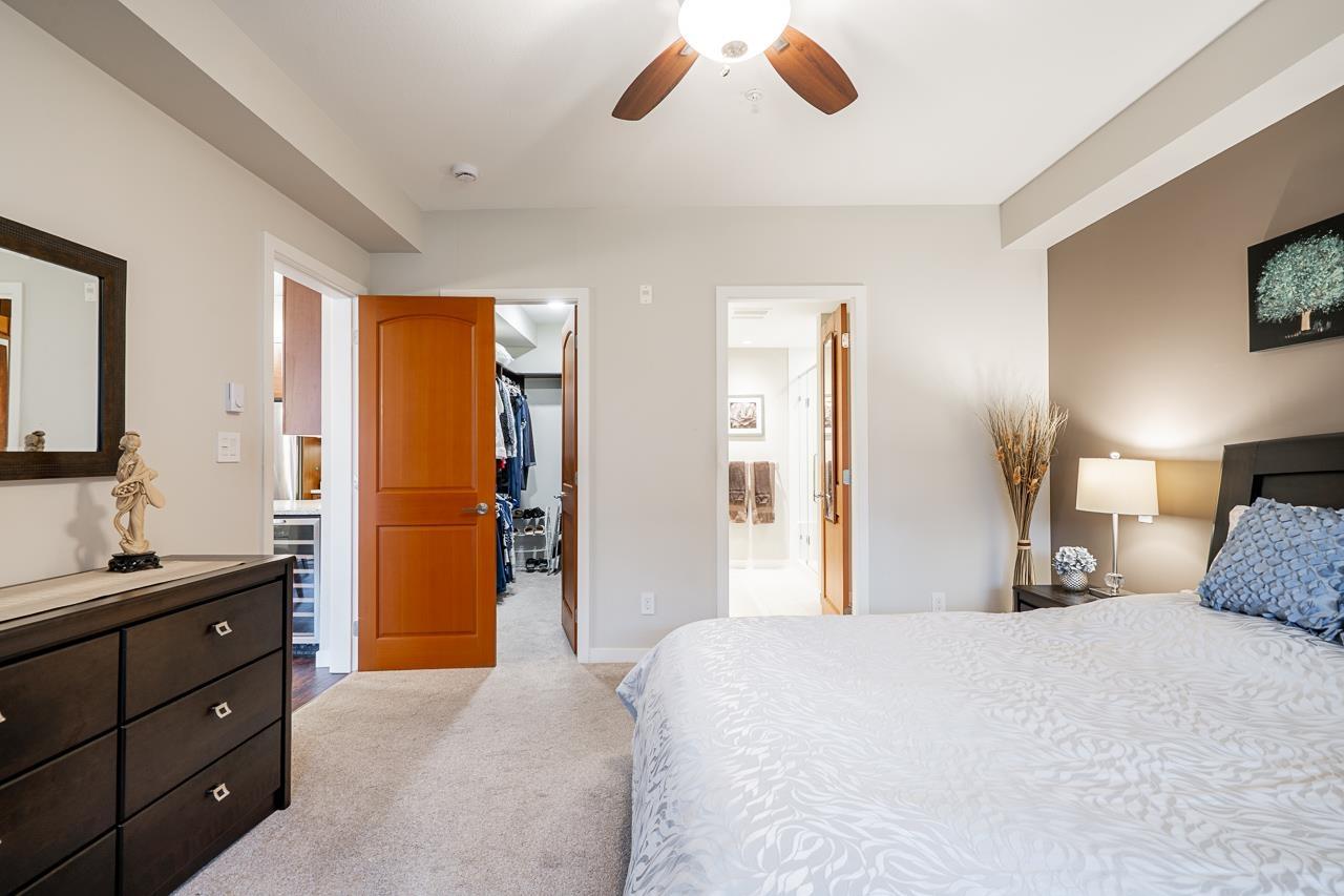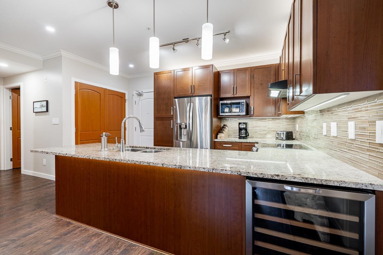 $781.03 MonthlyWelcome to this beautifully upgraded 2 bedroom plus den home in Waterstone, one of the most sought-after communities in Clayton. This residence offers a thoughtful layout with premium finishings, exceptional storage and parking options rarely found in condo living. Enjoy heated floors in the kitchen and both bathrooms, upgraded lighting throughout including pot lights and above and under-cabinet lighting. The primary ensuite offers a 5 ft walk-in shower and custom cabinetry, creating a spa-like retreat. This home includes 2 parking stalls, an extra-deep mini garage capable of EV charging, and an abundance of additional storage. North-facing exposure overlooks the beautifully landscaped gardens, providing a private and cooler outlook in the summer months. Residents enjoy resort-style amenities including an indoor pool, hot tub, gym, theatre, party room, and guest suites, all within walking distance to shops, restaurants, transit, and schools. (id:52823)