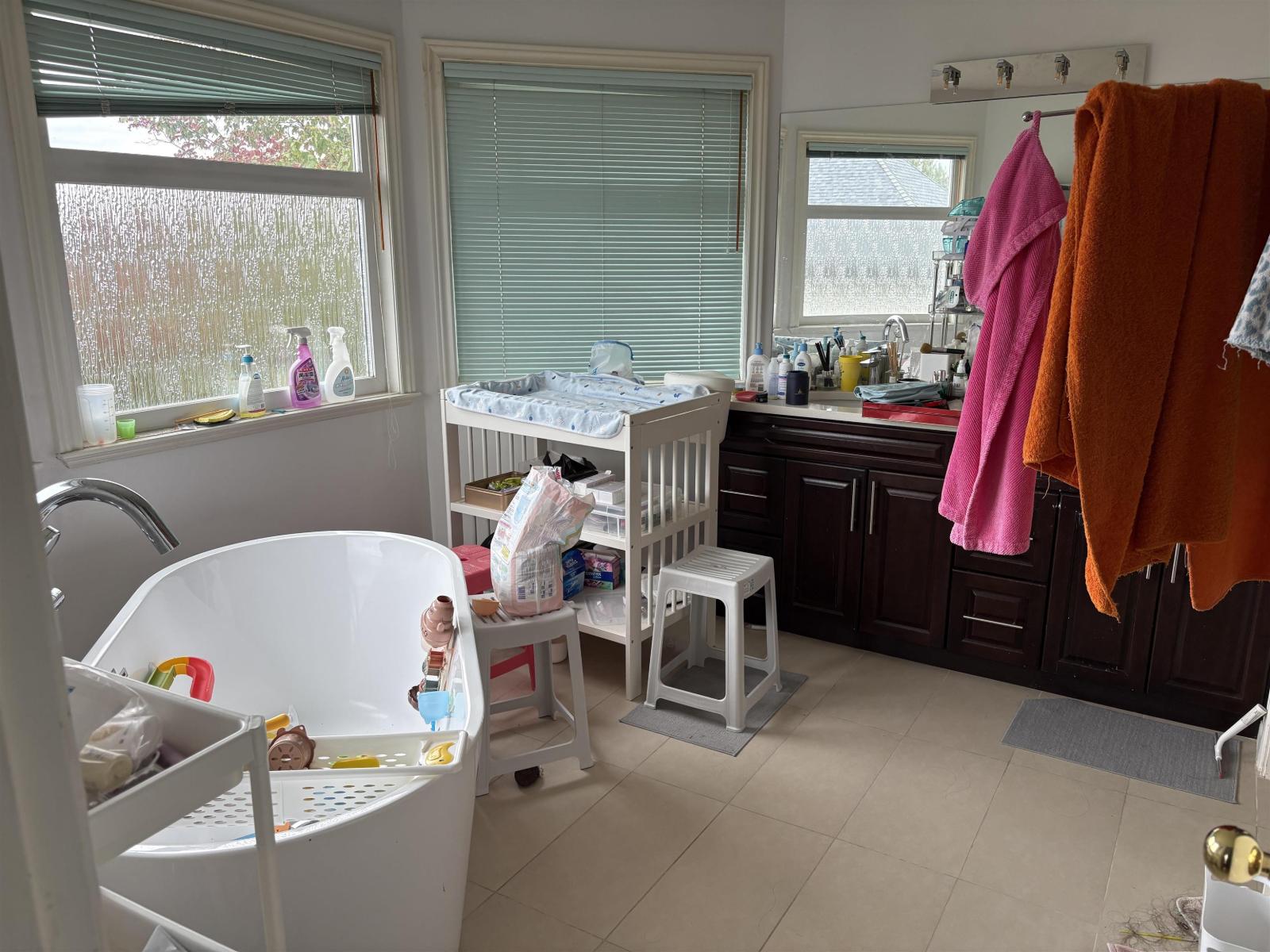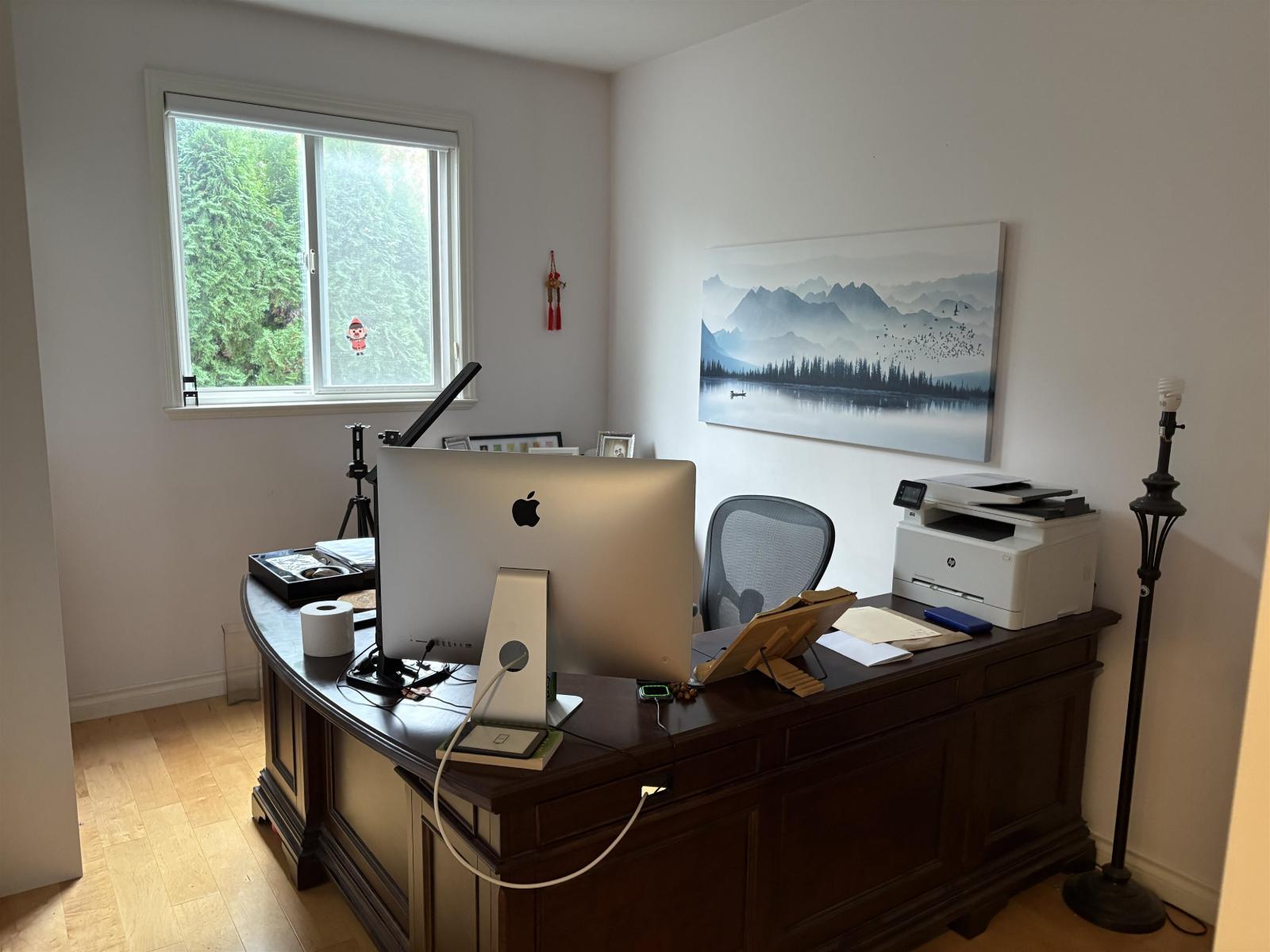 WOW!! North Surrey Fraser Heights location, quiet street with large level lot. A beautiful big backyard with a mountain view. Features include; beautiful wood floors throughout, sunken living room, large formal dining room, perfect main floor office for those that work from home, kitchen with separate eating area which has access to rear deck/yard. Upper floor has generous sized bedrooms with the primary bedroom offering a deep tub, large shower spa like en-suite and walk in closet. The fully finished part basement has a large playroom and a bedroom for one more, slider door to rear yard. There is a large 1/2 basement/crawl space for lots of additional storage. Bring your paint brush and decorating ideas. (id:52823)