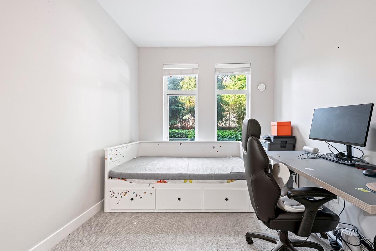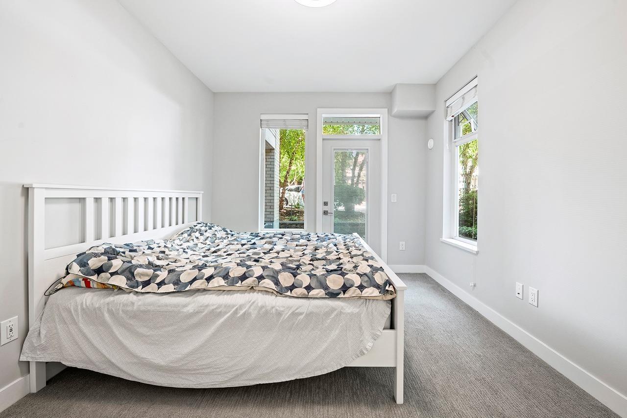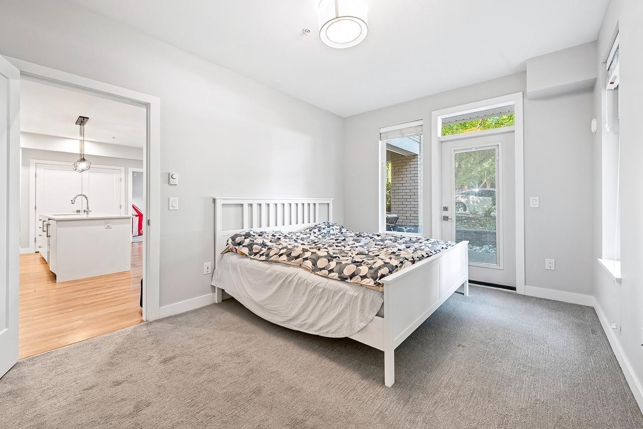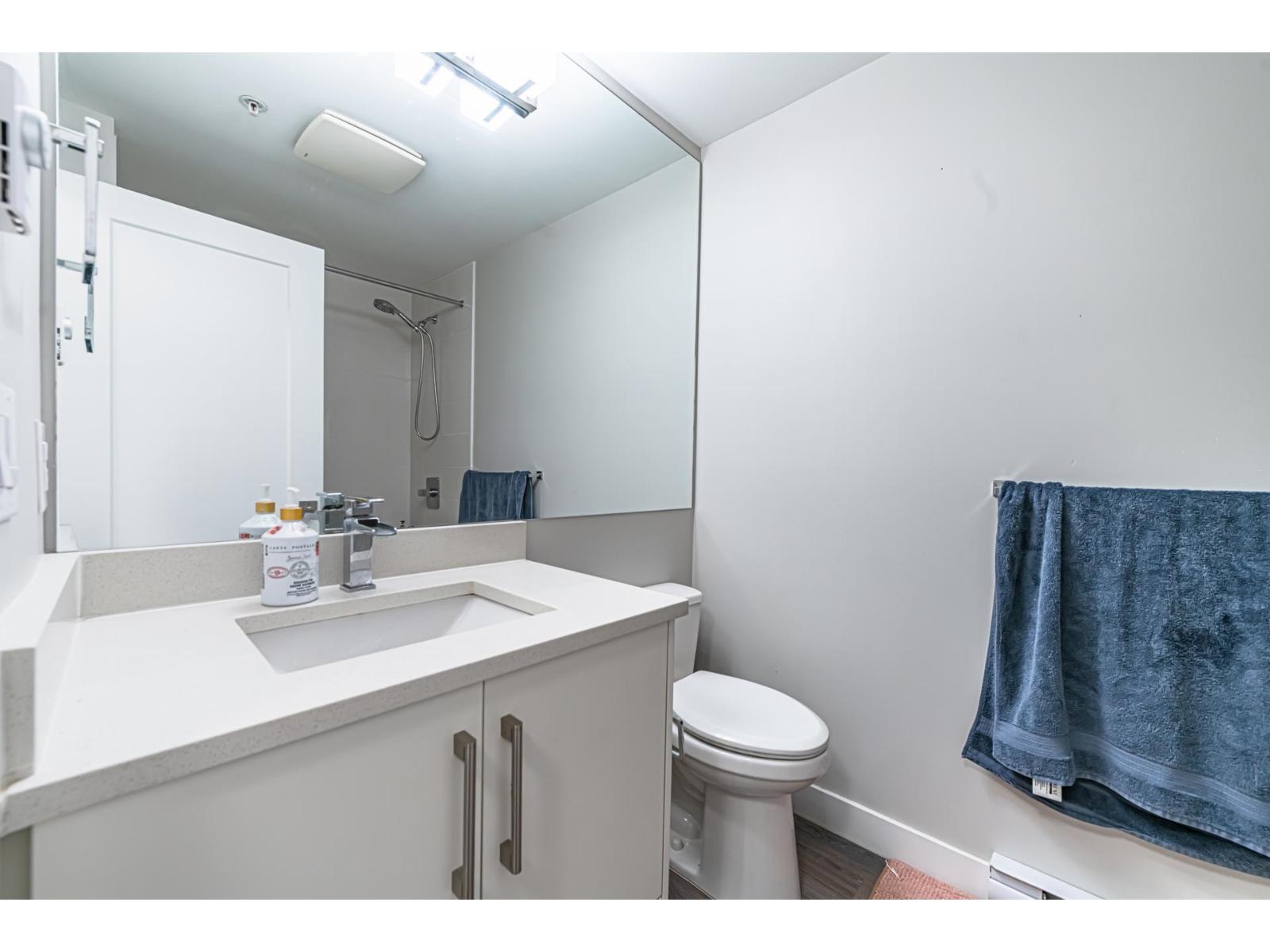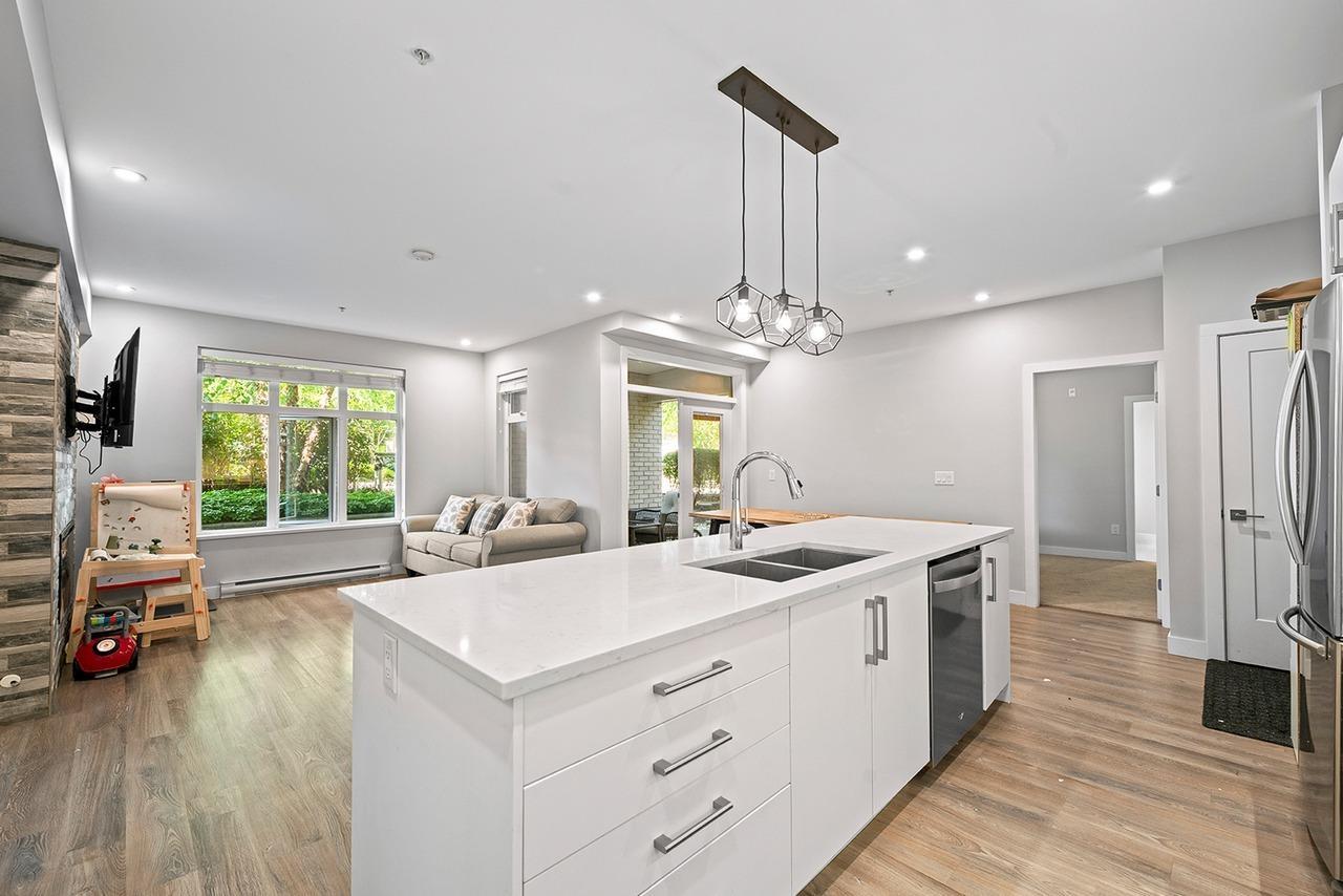 $449.60 MonthlyWelcome to Headwaters! This immaculate ground level corner unit offers nearly 1,000 sq ft of open concept living with a gourmet kitchen, quartz counters, Whirlpool gas range and French doors to a private patio. Spacious primary bedroom with spa-like ensuite featuring heated floors and walk-in shower. Includes 2 parking stalls and 1 storage locker. Enjoy top-tier amenities: business centre, gym, clubhouse and guest suite. Tucked away yet minutes from South Point - don't miss this one! School catchment: Rosemary Heights Elementary & Grandview Heights Secondary. Easy to show with some notice. (id:52823)