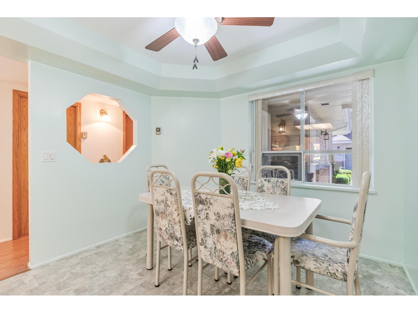 $448.36 MonthlySought-after Westwinds in South Surrey! Well-maintained 2-level townhome, lovingly cared for by the original owner. Bright kitchen with eating area, spacious dining/living room, main floor laundry with storage, powder room & double garage. Upstairs offers 2 bedrooms + den, large primary with walk-in closet & ensuite with soaker tub. Enjoy a private backyard & garden! Quiet location, close to highway access. Well-run strata. Move in as-is or bring your design ideas to life! (id:52823)