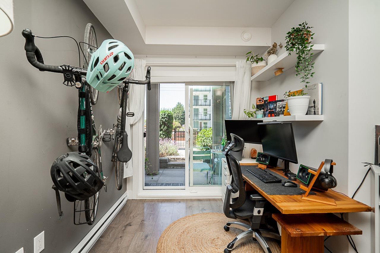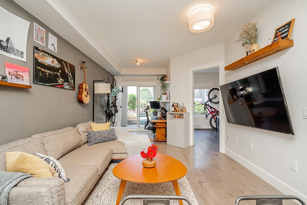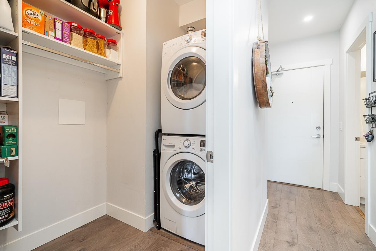 $431.60 MonthlyWelcome to your new home at The Benjamin in Langley City! This 773 sqft ground-level, west-facing unit is ideal for pet owners - with no size or weight restrictions for dogs. Inside, you'll find durable laminate flooring and a bright, open-concept living space. The kitchen features quartz countertops and stainless steel appliances, perfect for those who love to cook. The spacious primary bedroom includes a walk-in closet, a private ensuite bathroom and air conditioning. Enjoy the convenience of in-suite storage and laundry, and step out onto your private patio - great for morning coffee or letting the dog out with ease. One parking stall is included. (id:52823)