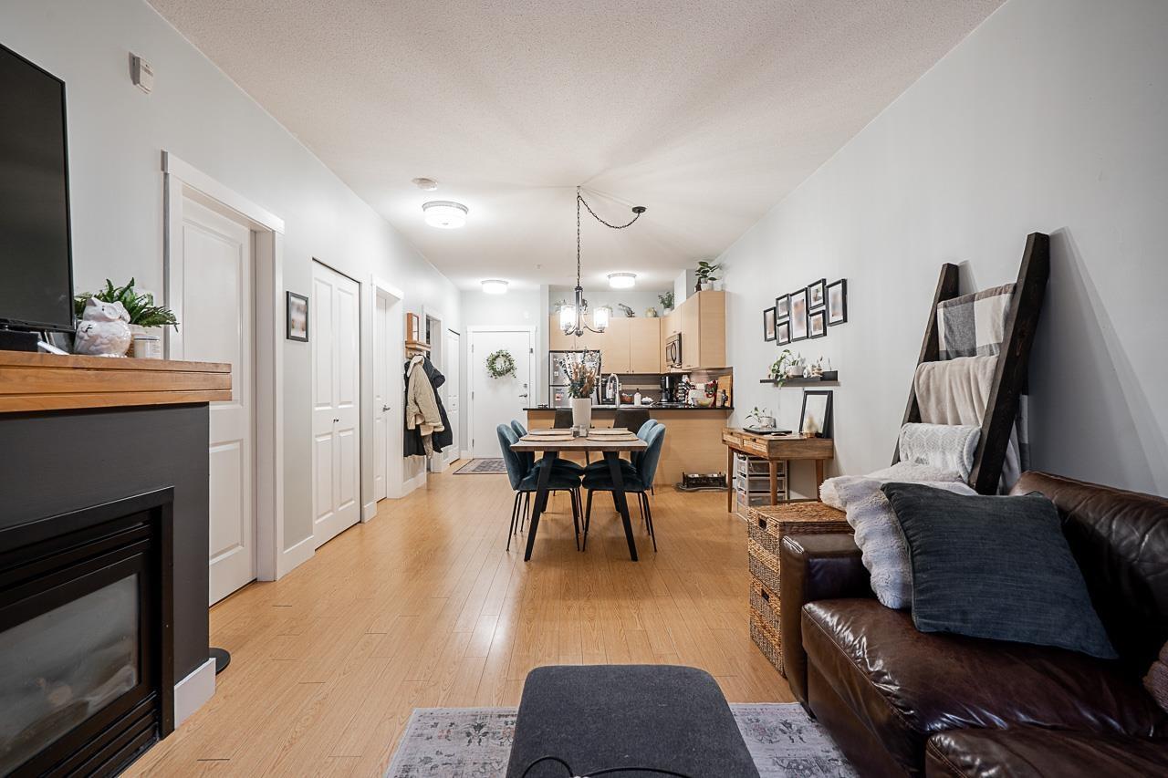 $353.97 MonthlyWelcome to Sunset Grove. This 1 bedroom plus den garden suite condo is a must see. From the moment you walk into the foyer you will appreciate the large open concept floor plan this home offers. The kitchen features granite counter tops, stainless appliances and lots of storage. Opening up into the dining area and living space this condo has room for a large table and couch and all of your furniture. Spacious master bedroom with ample closet space, and a bonus den which is large enough as a guest / kids bedroom. The walk out garden suite is extremely popular and faces inside on the quiet side of the building. Let the dog out, take the kids for a walk, or get some exercise without having to take an elevator. A must see! Gas fireplace included in strata maintenance fee. (id:52823)