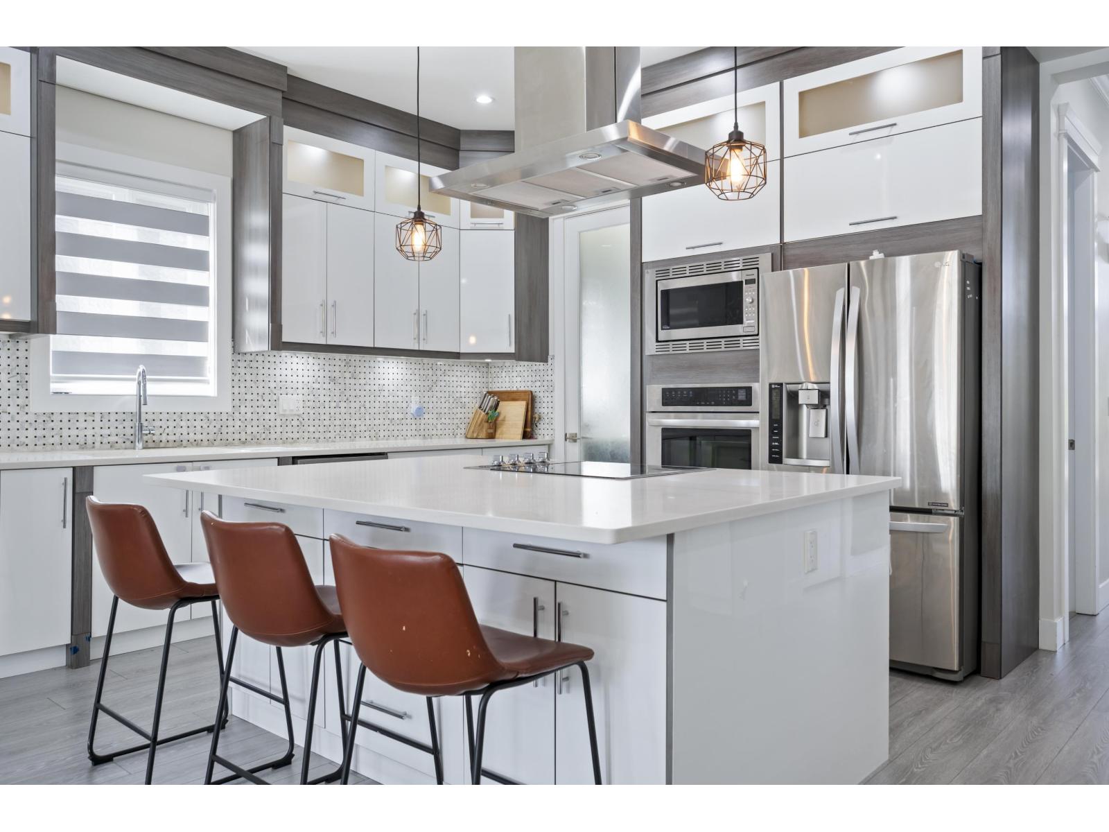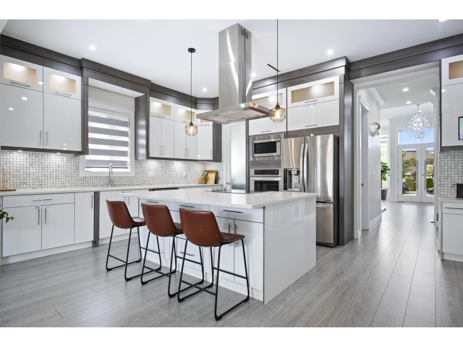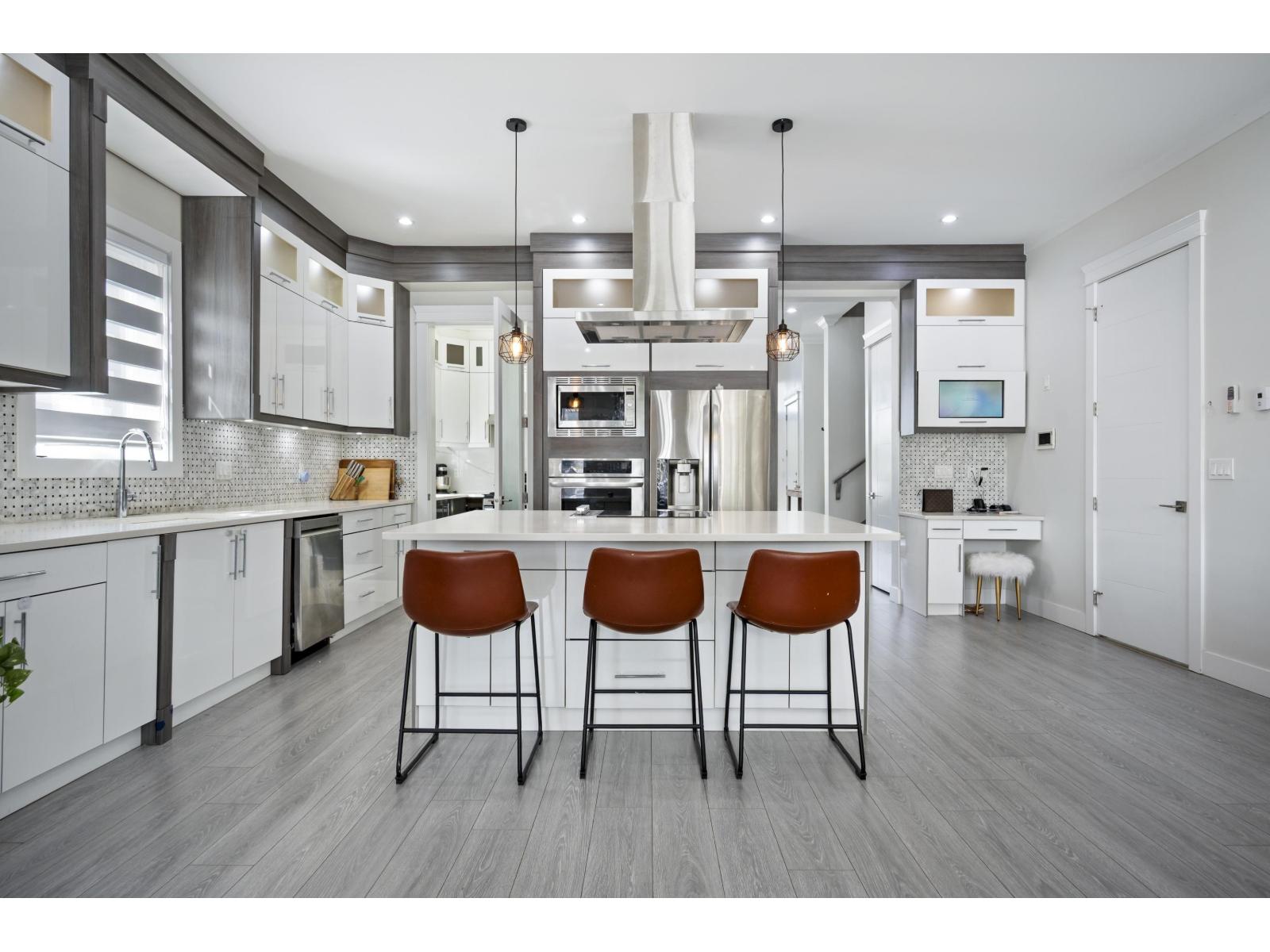 Fraser Heights! Enjoy luxurious living in this spacious two storey home with a two bedroom mortgage helper with separate entrance. Ideal setup for extended families as the suite is on the main floor and tucked off to the side. Quality finishing throughout with in floor hot water heating, central air conditioning, wok kitchen, overheight ceilings, extensive marble feature walls, high end lighting plus more. Upstairs are 4 bedrooms with the primary featuring a spa like 5 piece ensuite, with all other bedrooms featuring 4 piece ensuites. Lots of parking with the double garage access from the laneway. Convenient location close to transit. Shows like new! Call today. (id:52823)