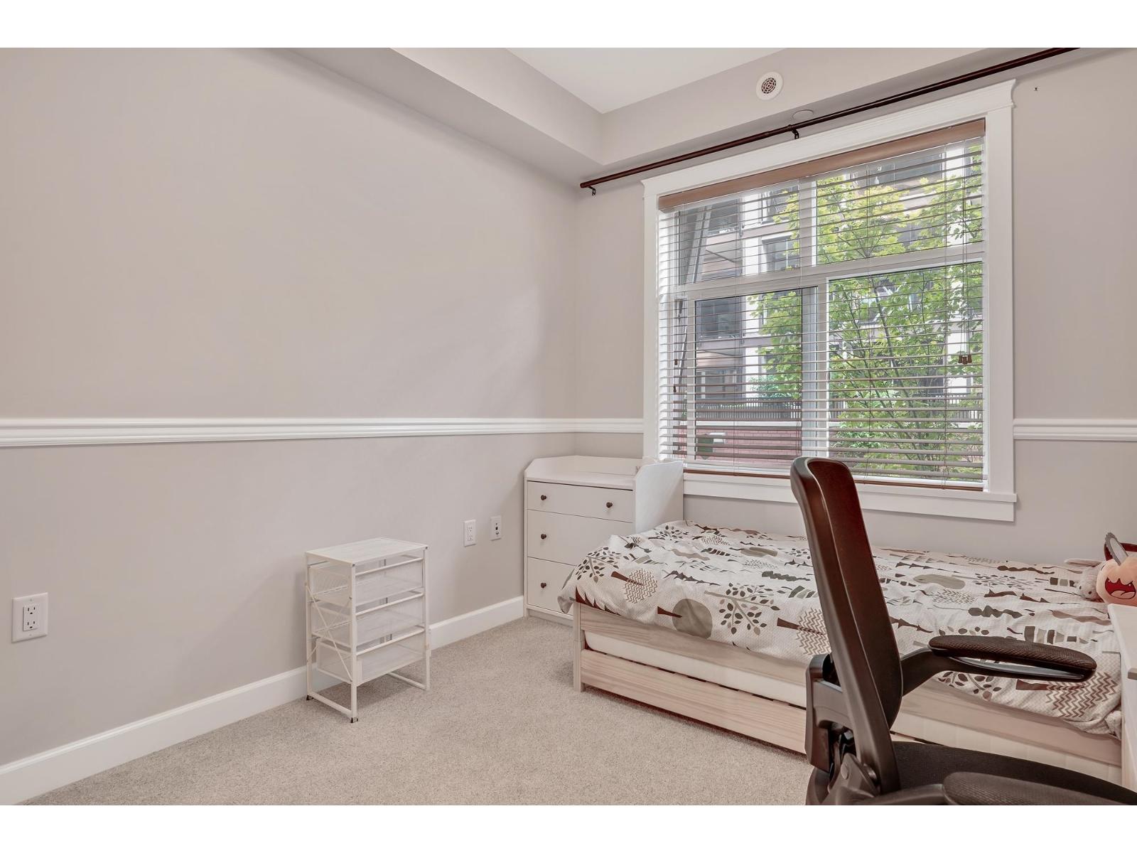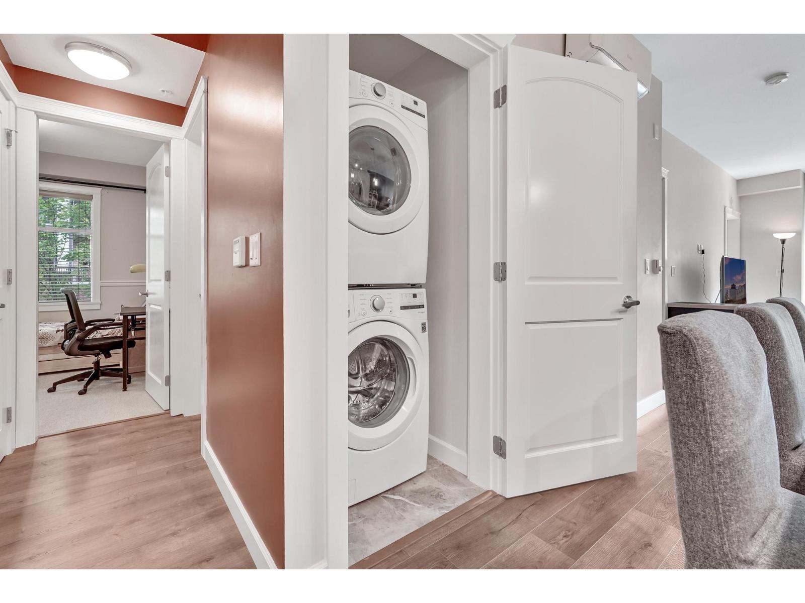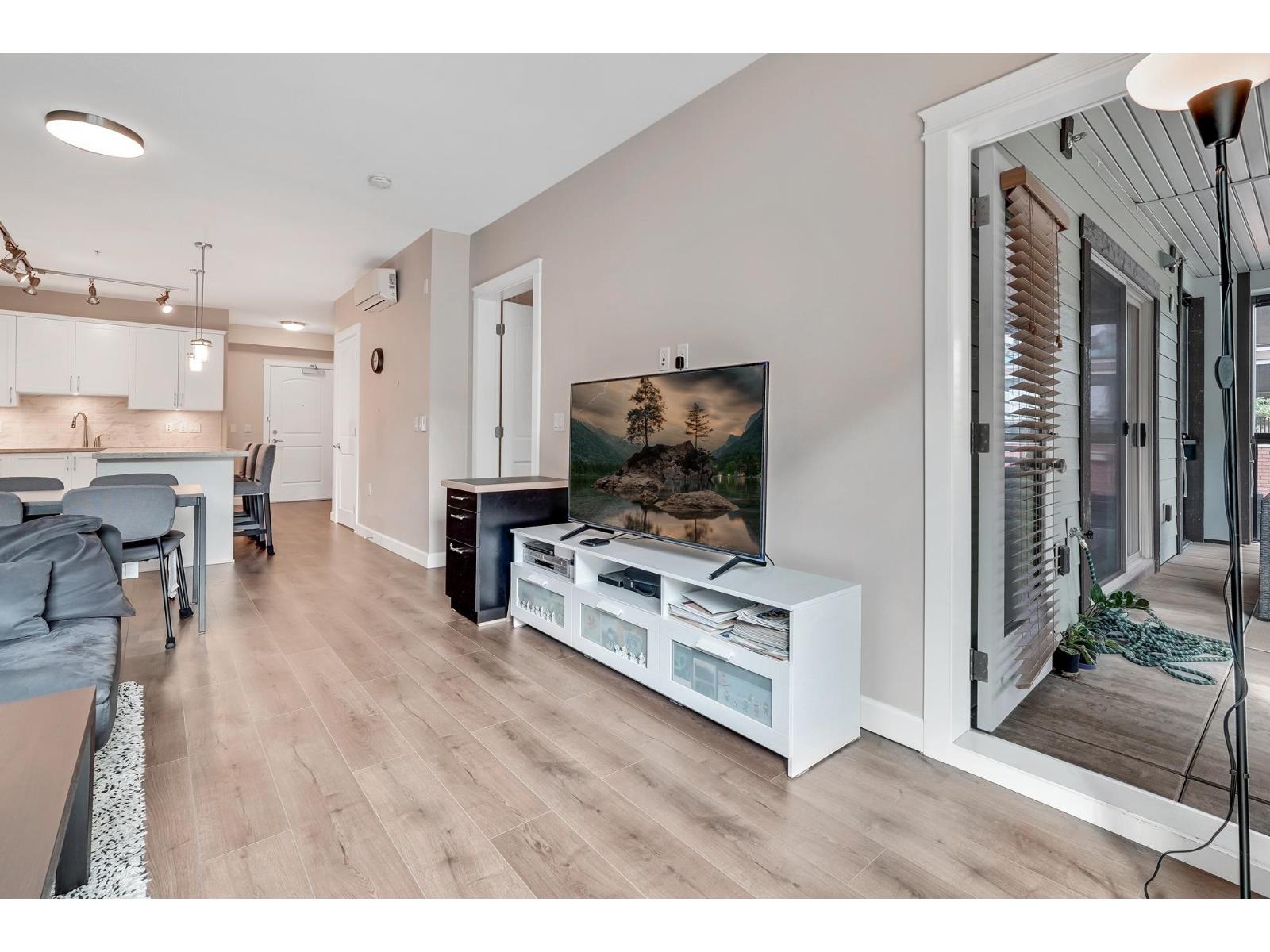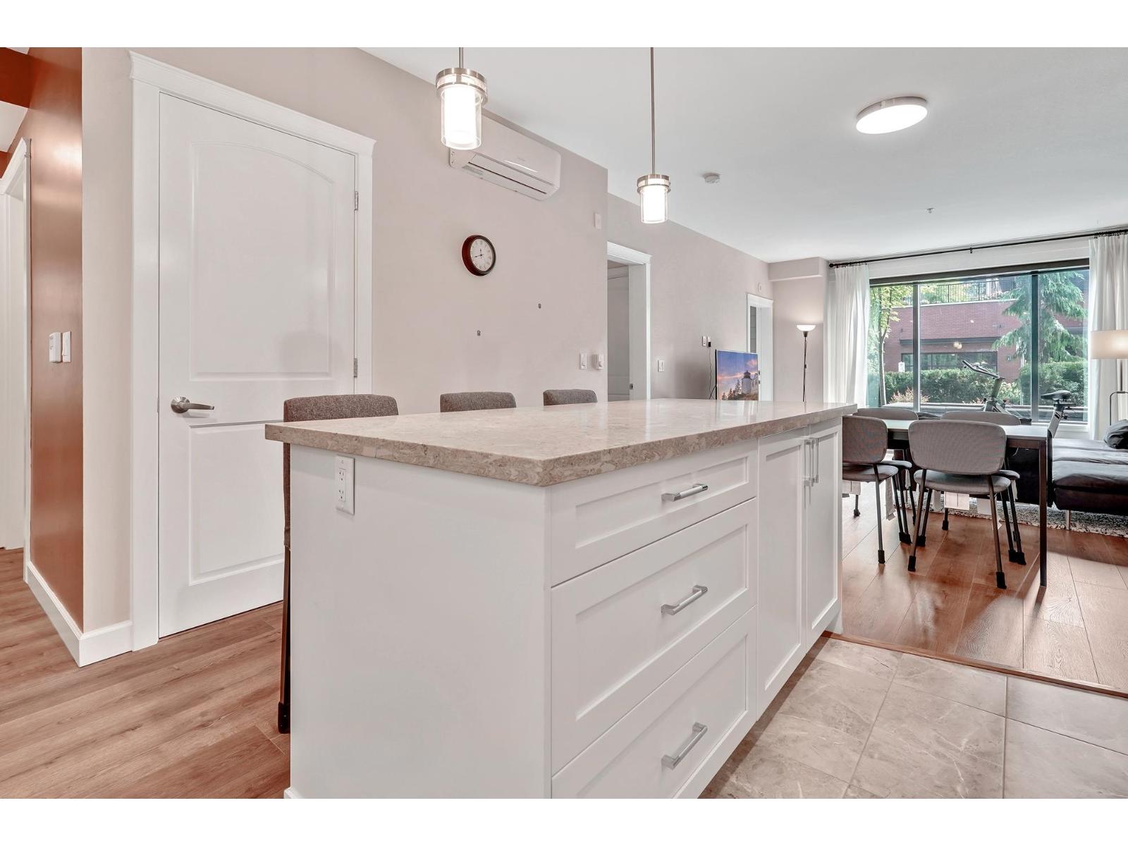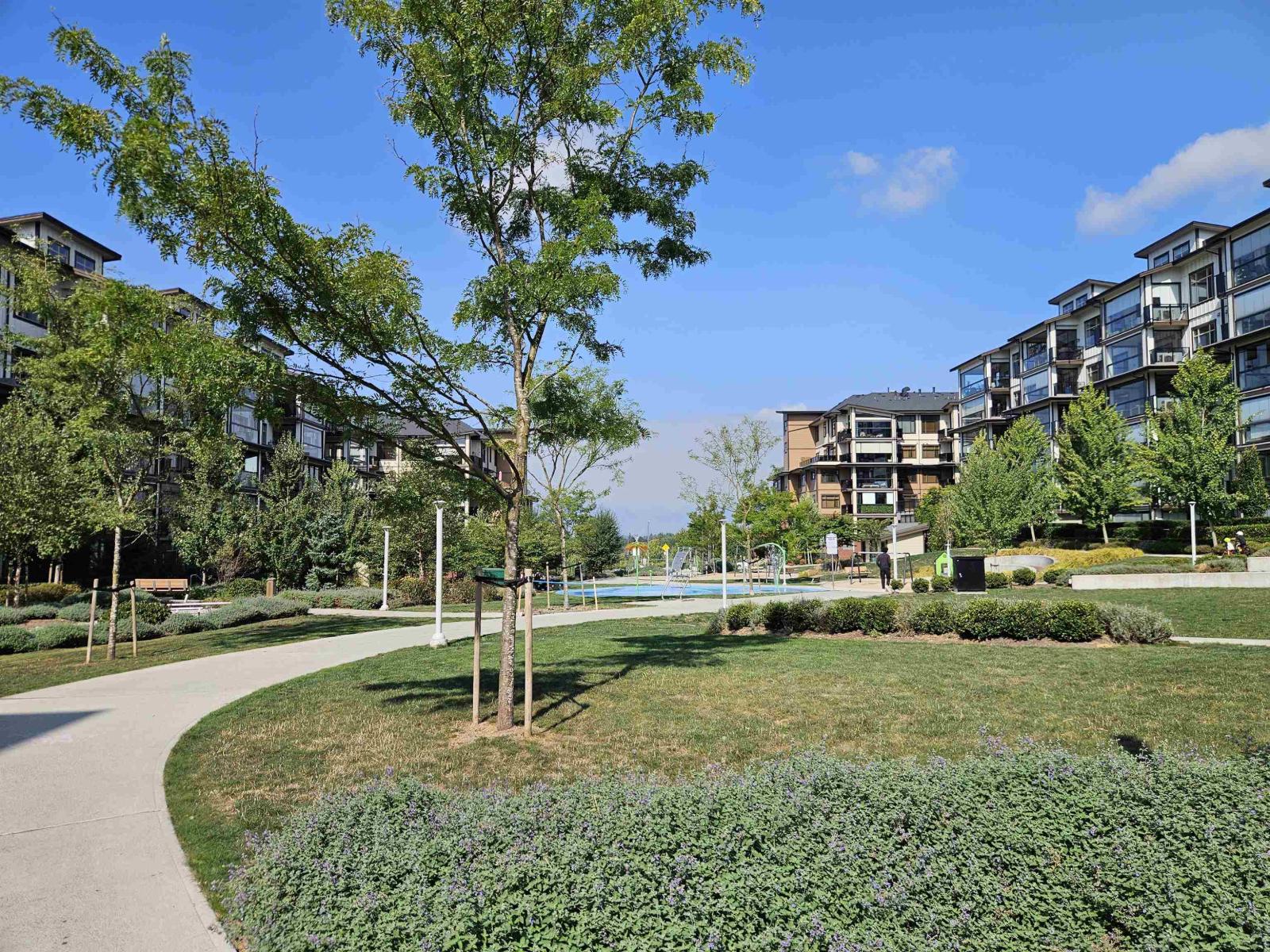 $430.66 MonthlyYorkson Park Central! Large 1,129 SqFt 3 bed, 2 bath, northeast corner, and ground floor unit. The gourmet kitchen comes with stainless appliances, including gas cooktop, quartz countertops, and ample cabinet spaces. Your comfort living with energy efficiency heat-pump heating and cooling for all rooms and floor heating for bathrooms. Open concept indoor living space and all year round glass-enclosed 261 SqFt solarium with gas hookup. Two side by side parking and storage locker next to the parking. The well-run building comes with fitness, lounge, children's playroom, and playground. Great location with steps to Carvolth Park & Ride and easy access to Hwy 1, shopping, restaurants, and parks. School catchment: Willoughby Elementary, Yorkson Creek Middle, and R.E. Mountain Secondary. (id:52823)