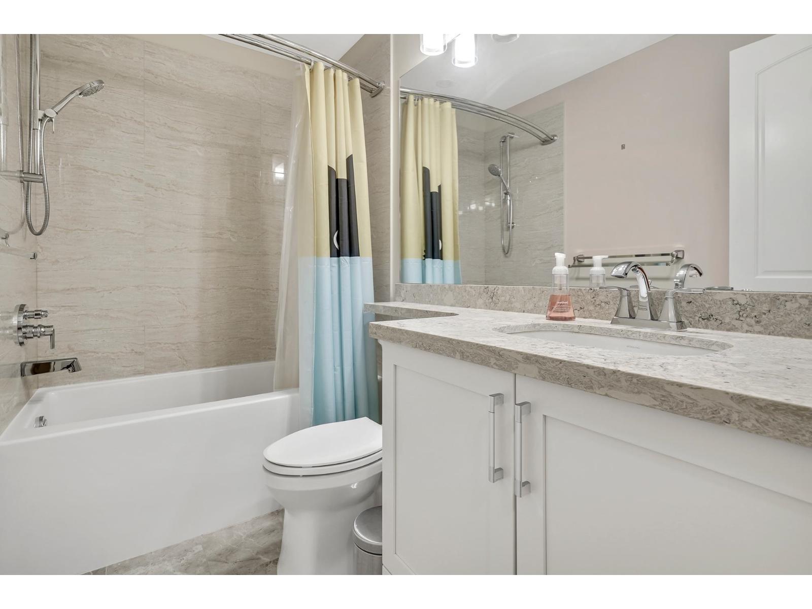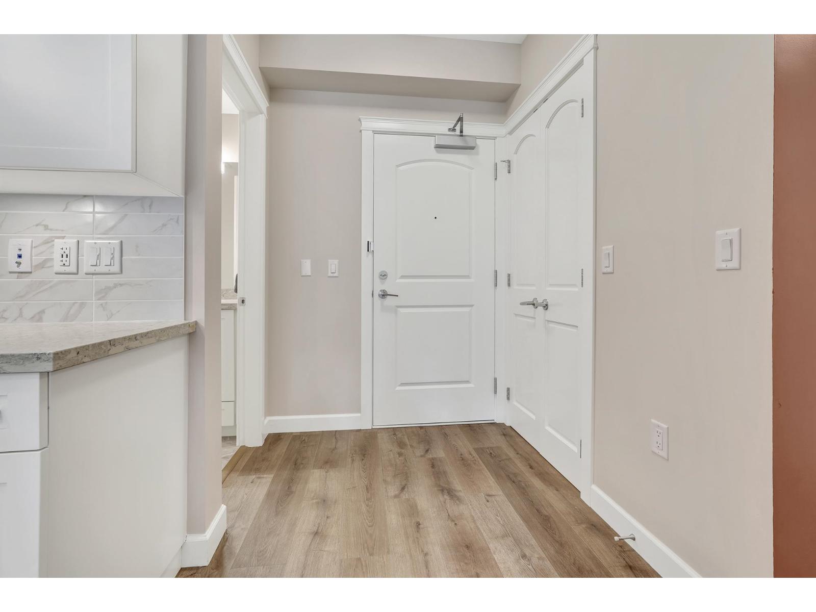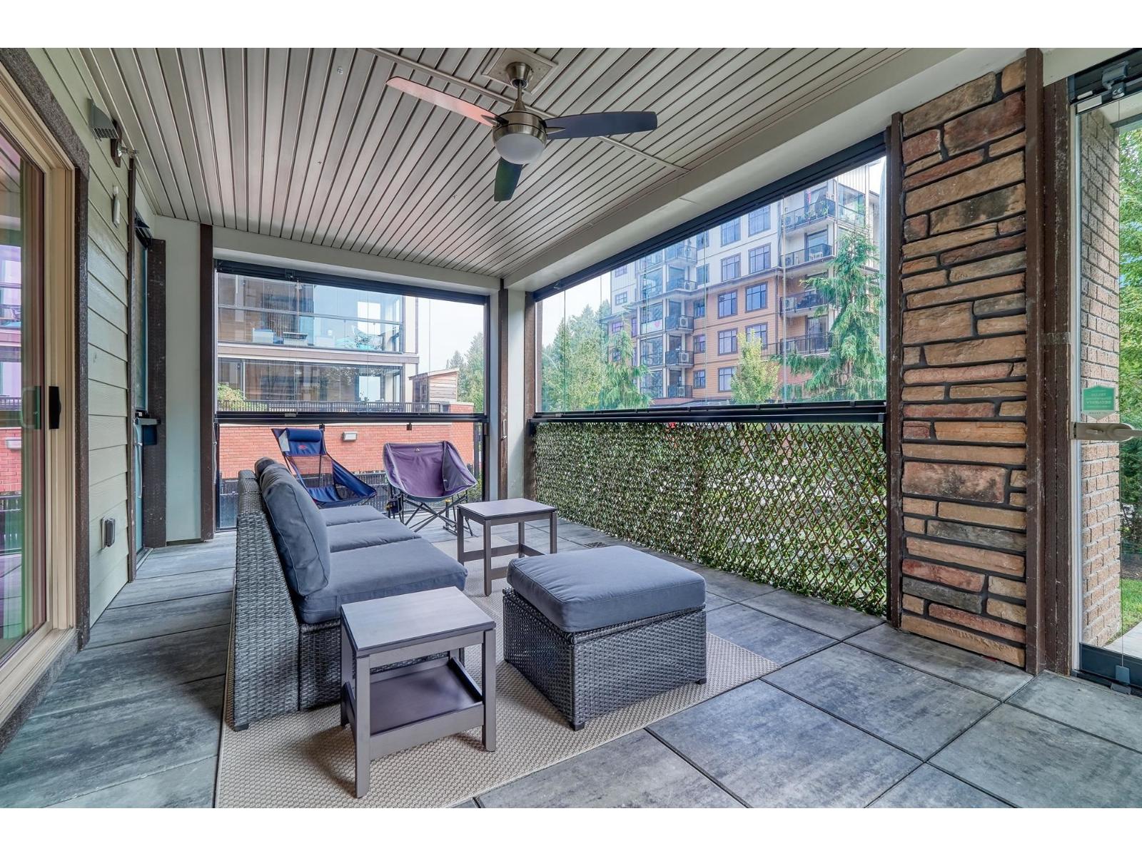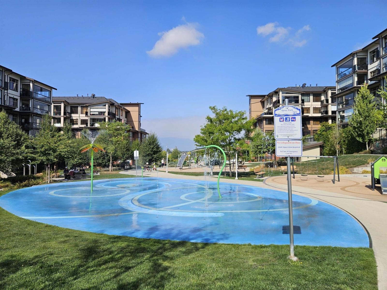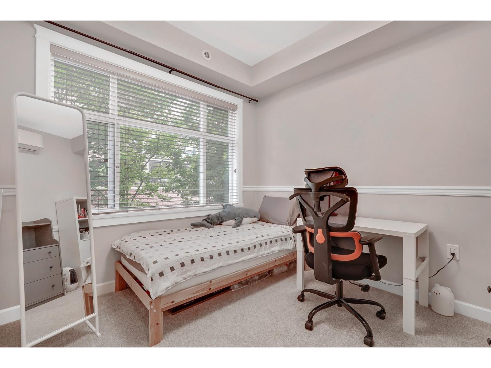 $430.66 MonthlyYorkson Park Central! Large 1,129 SqFt 3 bed, 2 bath, northeast corner, and ground floor unit. The gourmet kitchen comes with stainless appliances, including gas cooktop, quartz countertops, and ample cabinet spaces. Your comfort living with energy efficiency heat-pump heating and cooling for all rooms and floor heating for bathrooms. Open concept indoor living space and all year round glass-enclosed 261 SqFt solarium with gas hookup. Two side by side parking and storage locker next to the parking. The well-run building comes with fitness, lounge, children's playroom, and playground. Great location with steps to Carvolth Park & Ride and easy access to Hwy 1, shopping, restaurants, and parks. School catchment: Willoughby Elementary, Yorkson Creek Middle, and R.E. Mountain Secondary. (id:52823)