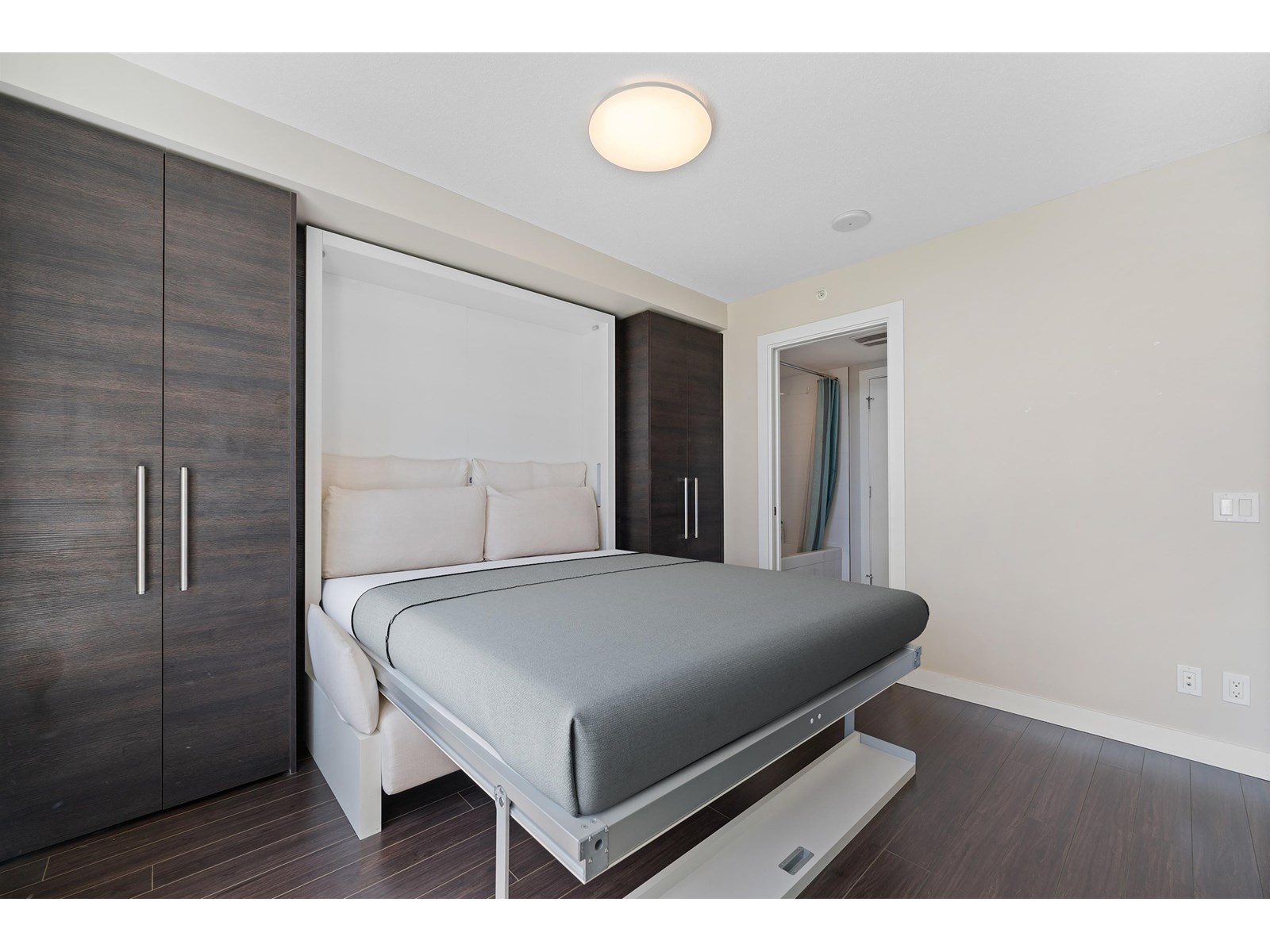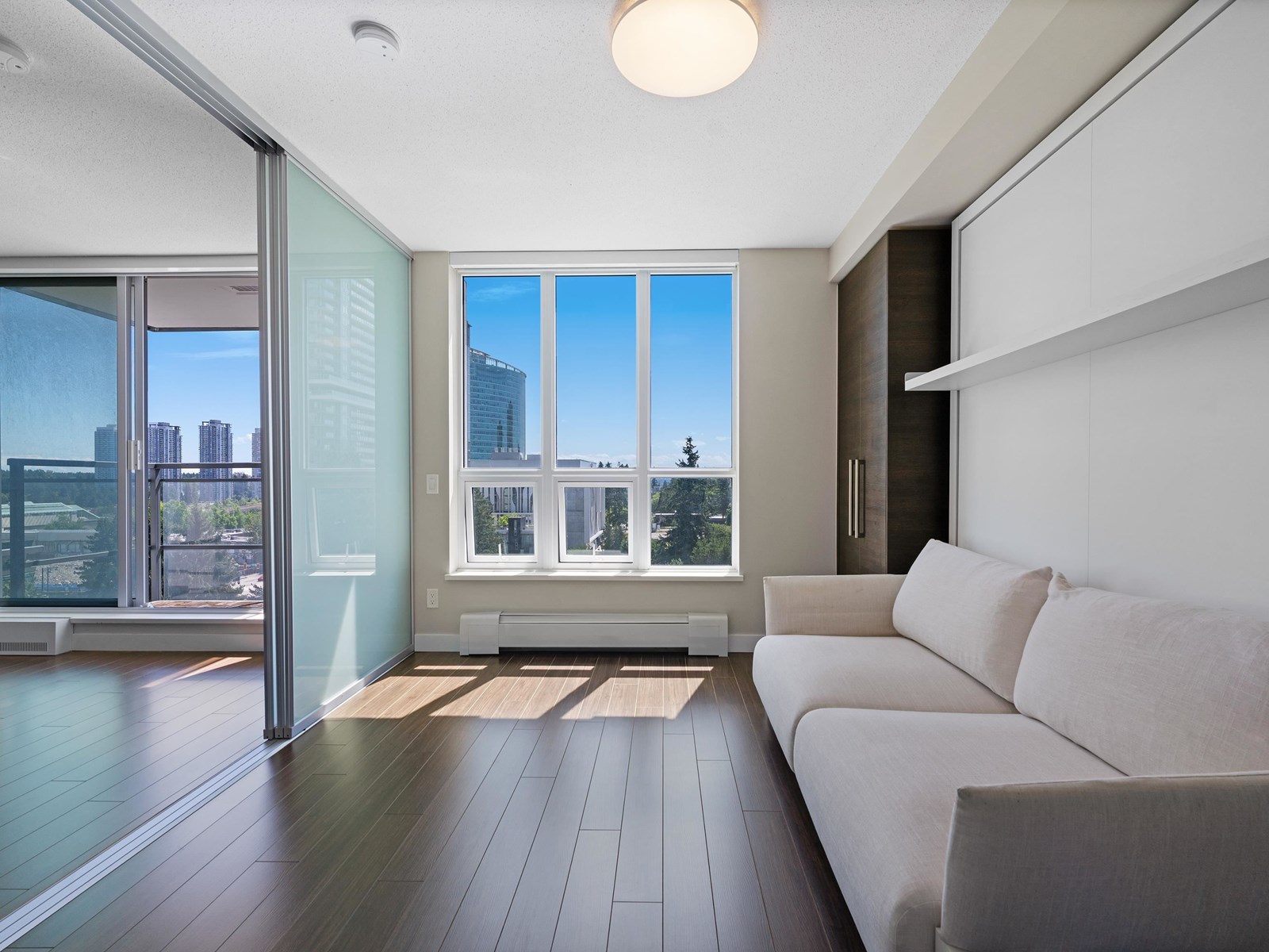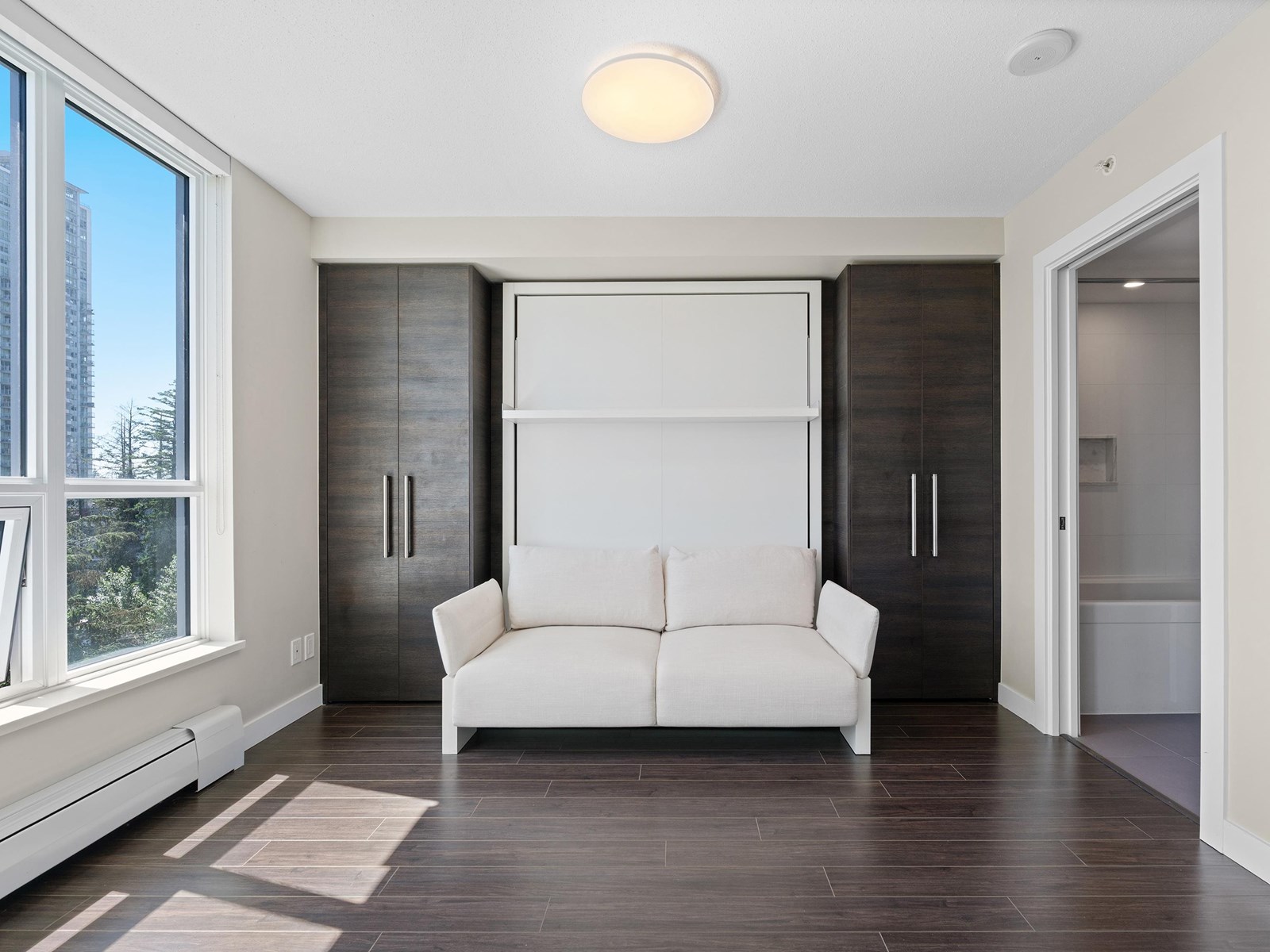 $406.86 MonthlyWelcome to Alumni, a sought-after concrete high-rise where intelligent design meets modern city living. This 1 bedroom corner unit offers exceptional privacy, paired with thoughtfully designed interiors & exceptional functionality. Discover a bright & spacious layout featuring Bosa's signature space-saving features: an integrated dining table that extends from the kitchen island, a built-in guest bed concealed within sleek millwork, & a pull-out bed that effortlessly converts into a sofa. Designed for both comfort & functionality, every square foot is maximized to suit your lifestyle. Steps to the SkyTrain, SFU, KPU, T&T Supermarket, Central City Mall, & an array of dining and shopping options. 1 parking, 1 locker, vacant & easy to show. Live smarter, live better! (id:52823)