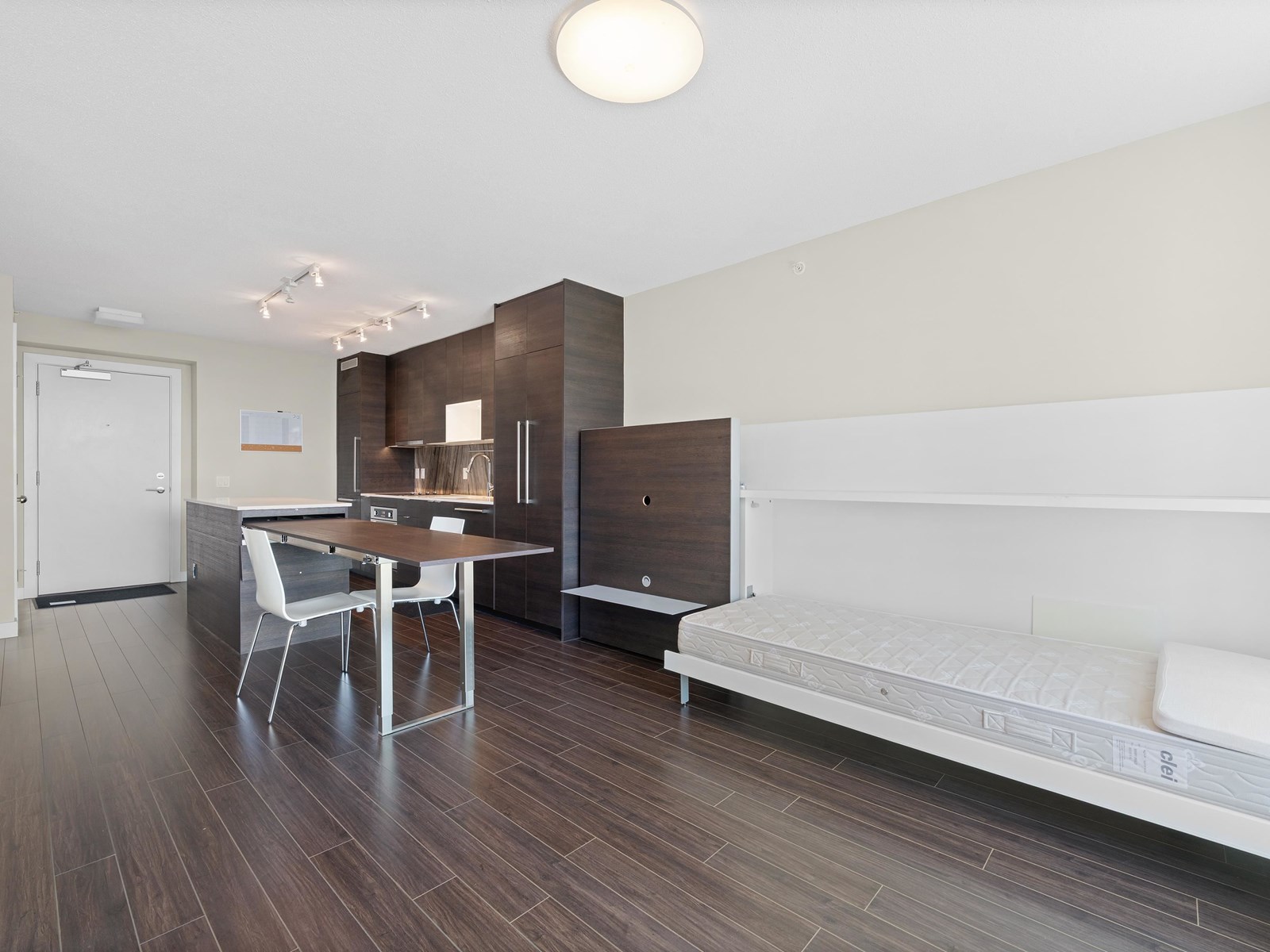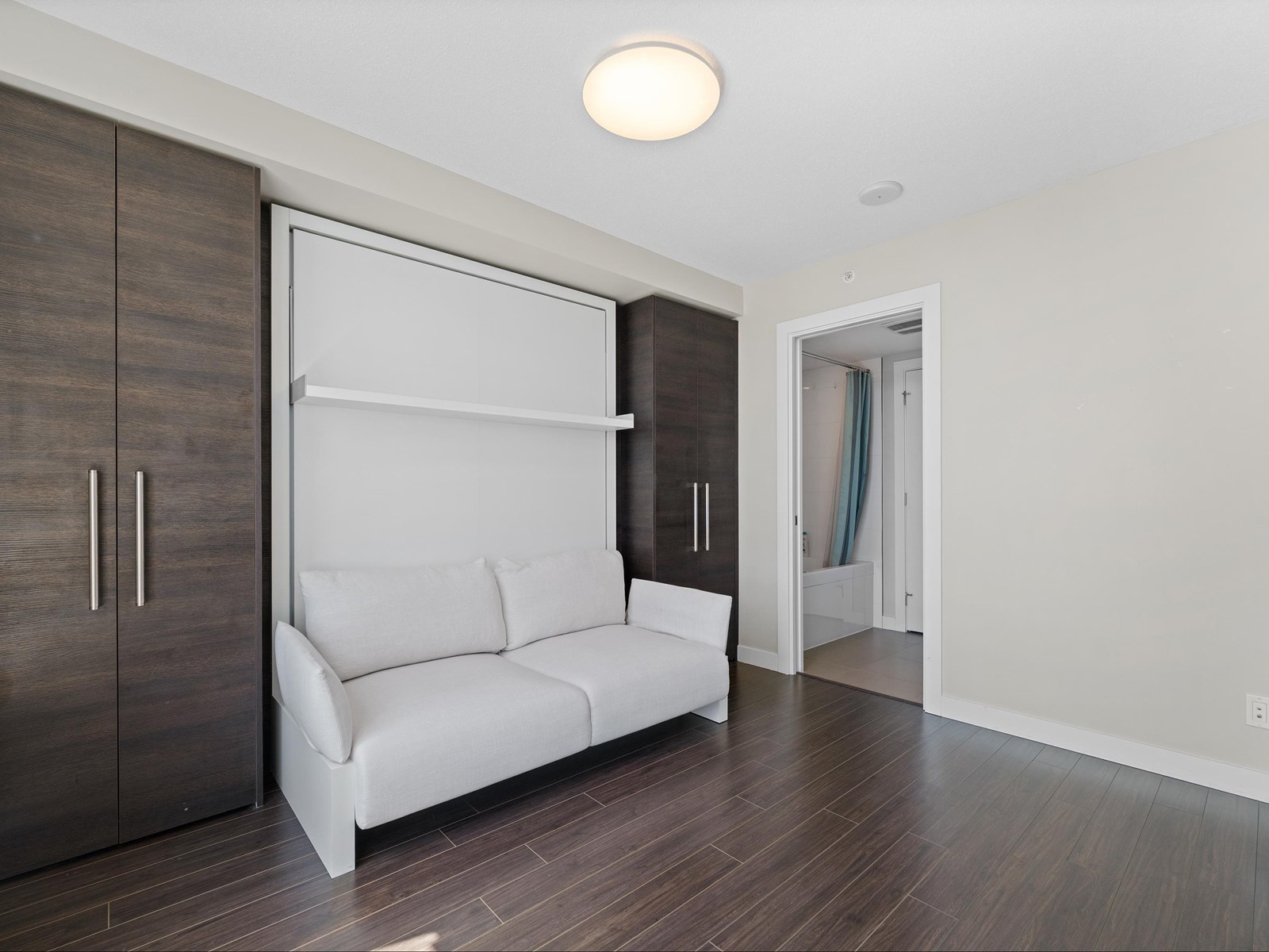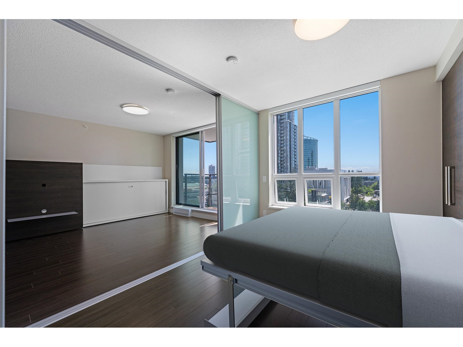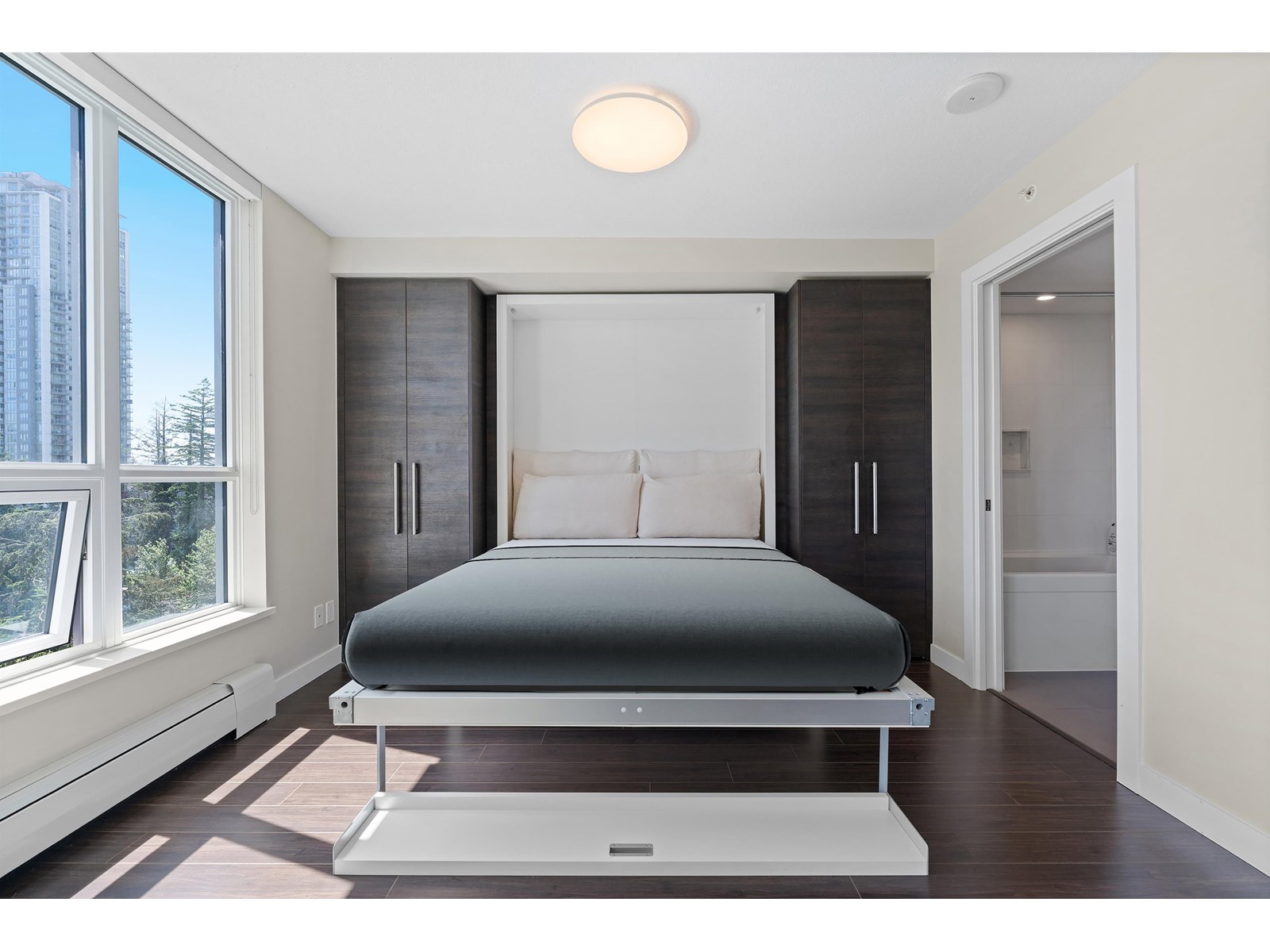 $406.86 MonthlyWelcome to Alumni, a sought-after concrete high-rise where intelligent design meets modern city living. This 1 bedroom corner unit offers exceptional privacy, paired with thoughtfully designed interiors & exceptional functionality. Discover a bright & spacious layout featuring Bosa's signature space-saving features: an integrated dining table that extends from the kitchen island, a built-in guest bed concealed within sleek millwork, & a pull-out bed that effortlessly converts into a sofa. Designed for both comfort & functionality, every square foot is maximized to suit your lifestyle. Steps to the SkyTrain, SFU, KPU, T&T Supermarket, Central City Mall, & an array of dining and shopping options. 1 parking, 1 locker, vacant & easy to show. Live smarter, live better! (id:52823)