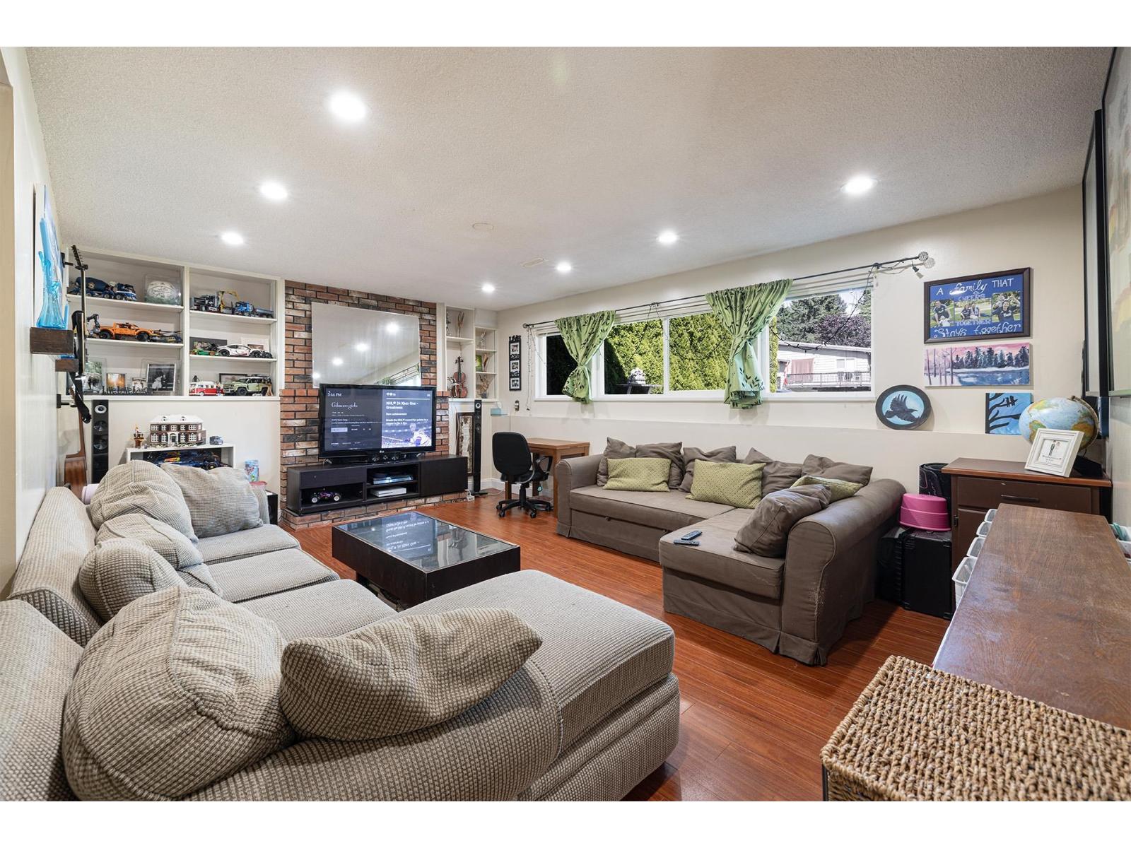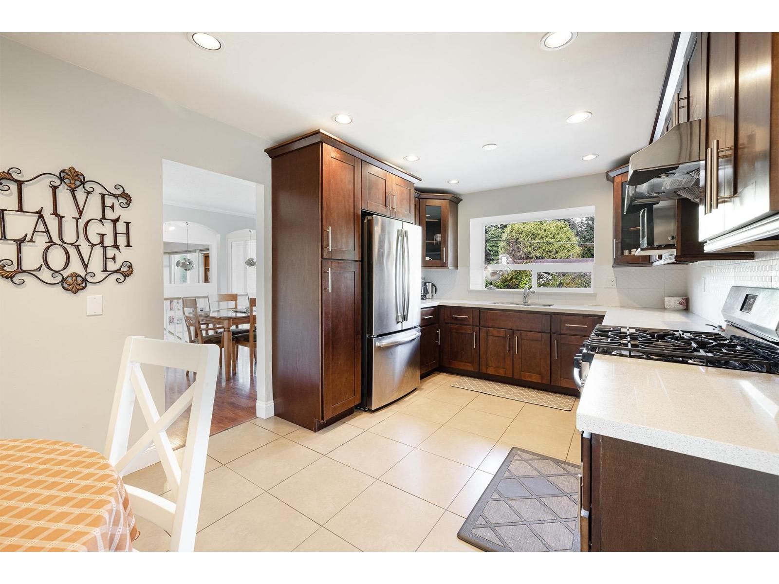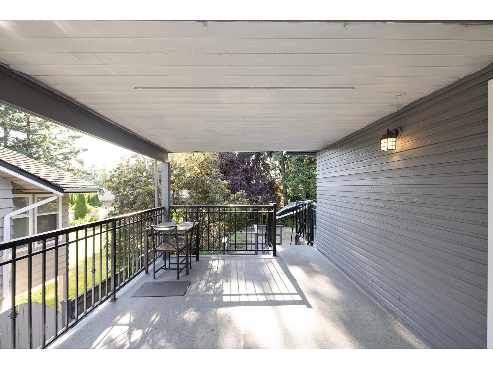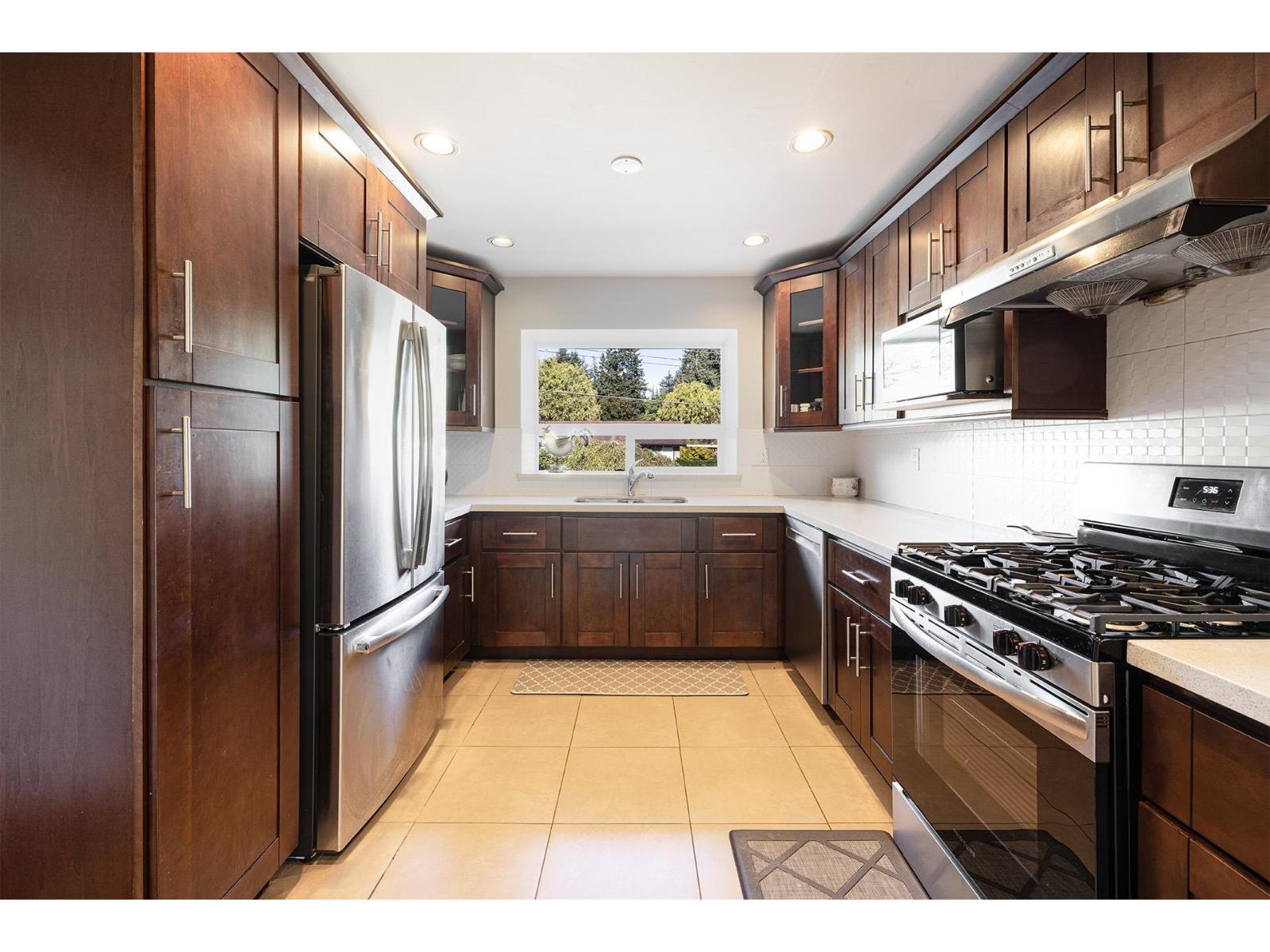 Beautiful 2-storey home in sought-after Sunshine Hills! Lovingly maintained with over 2,600 sq.ft. of living space on a 9,100 sq.ft. lot. Just a 5-min walk to the park and elementary school. Bright interior with large south-facing windows and a charming stone fireplace. The kitchen features rich wood cabinetry, quartz counters, 3-year-old fridge, 1-year-old dishwasher, and brand-new gas stove. Downstairs includes a legal 2-bed suite with separate entrance - perfect for rental income or extended family. Upgrades: roof (2008), windows (2009), railing/membrane (2011), garden & drain pipes (2020), exterior paint (2023). (id:52823)