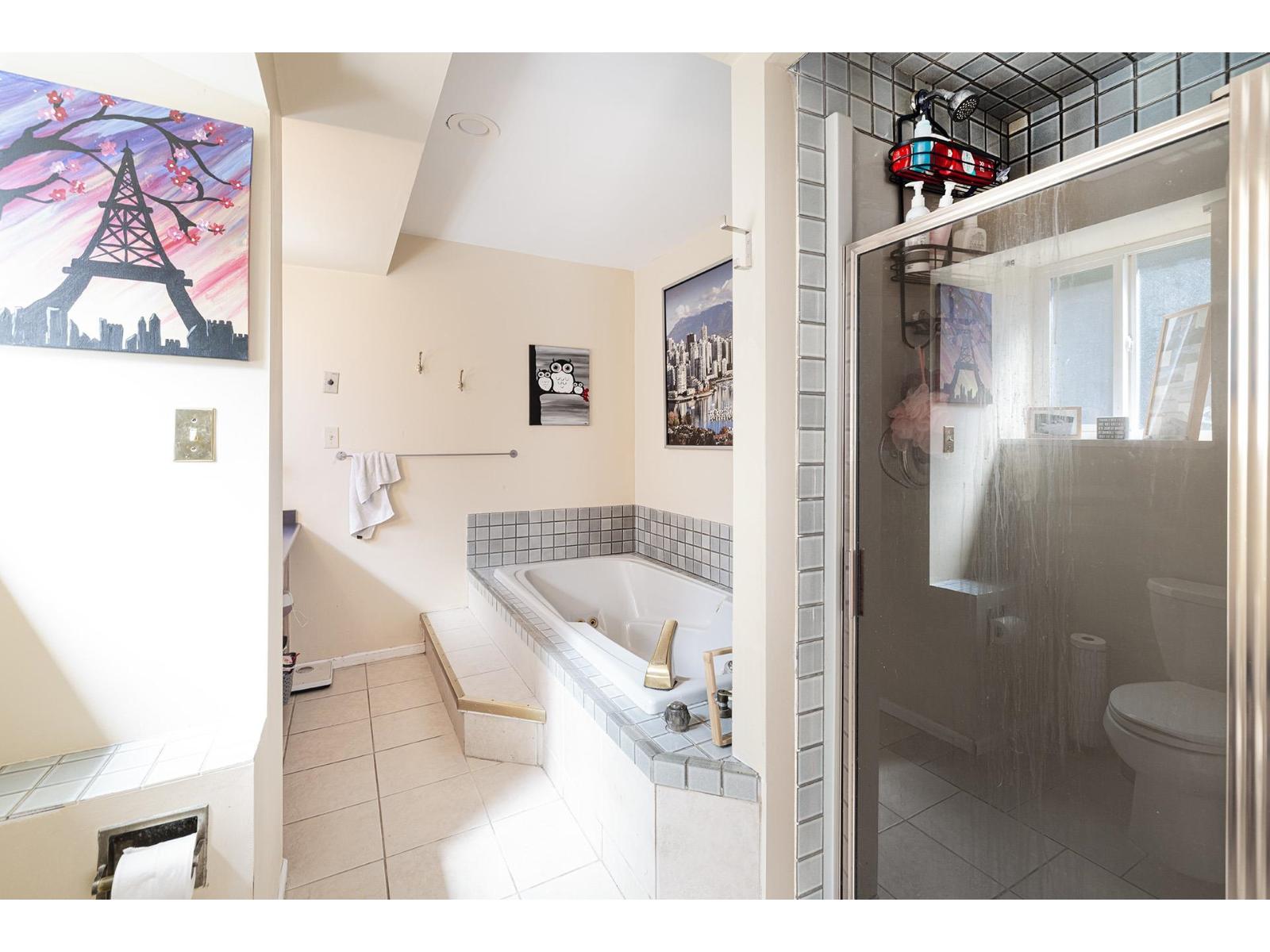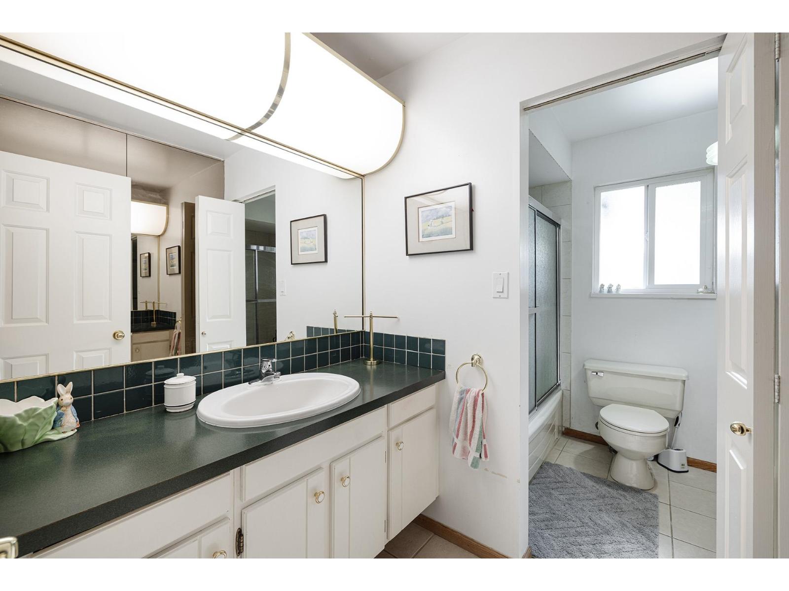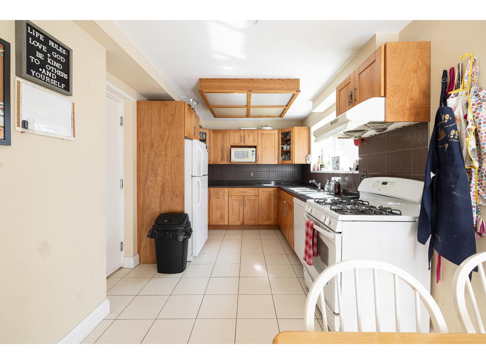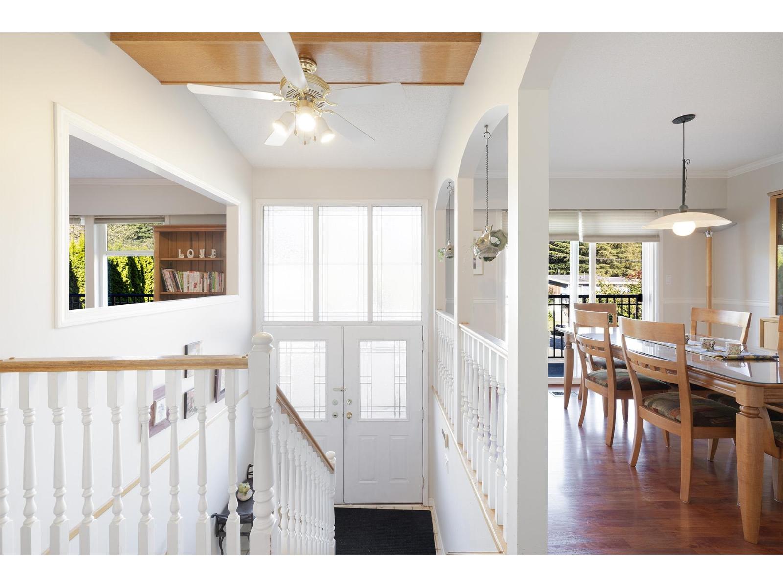 Beautiful 2-storey home in sought-after Sunshine Hills! Lovingly maintained with over 2,600 sq.ft. of living space on a 9,100 sq.ft. lot. Just a 5-min walk to the park and elementary school. Bright interior with large south-facing windows and a charming stone fireplace. The kitchen features rich wood cabinetry, quartz counters, 3-year-old fridge, 1-year-old dishwasher, and brand-new gas stove. Downstairs includes a legal 2-bed suite with separate entrance - perfect for rental income or extended family. Upgrades: roof (2008), windows (2009), railing/membrane (2011), garden & drain pipes (2020), exterior paint (2023). (id:52823)