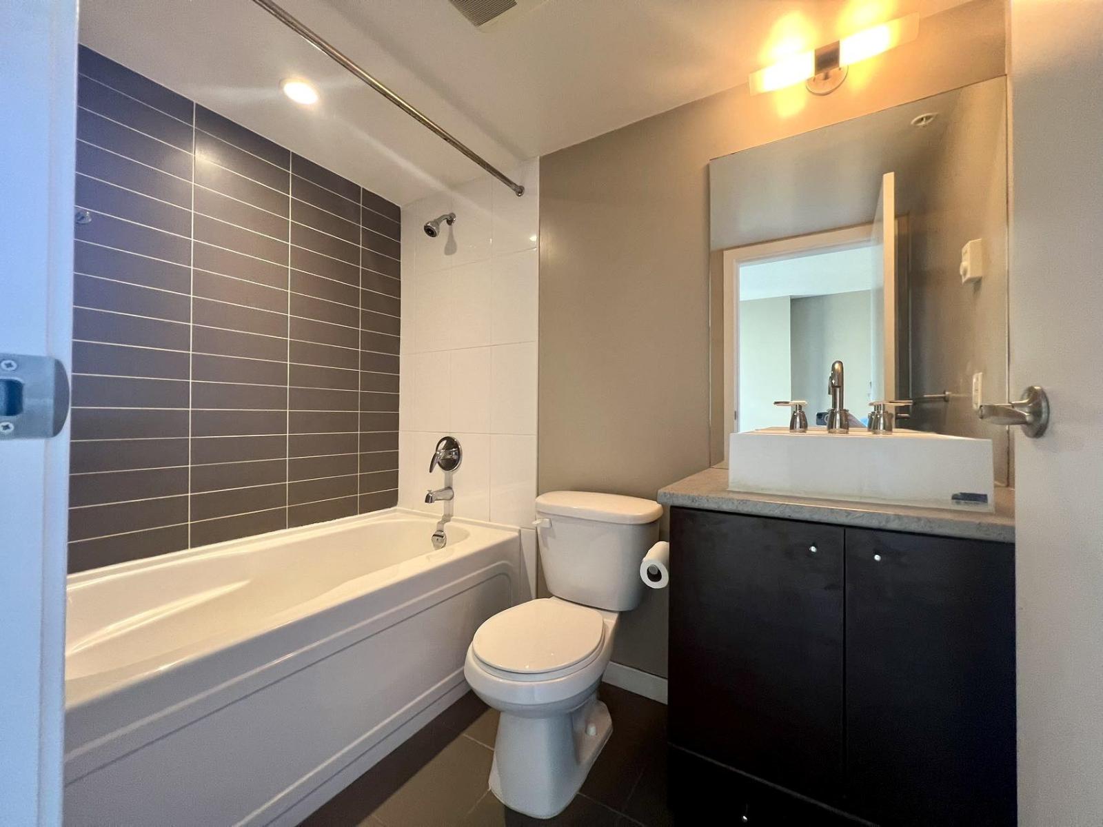 A south-facing 2-bedroom, 2-bathroom condo in Infinity Tower offers 762 sq. ft. of bright living space with plenty of natural light. Conveniently located next to King George SkyTrain, it is within walking distance to Surrey Central shopping, restaurants, SFU Surrey Campus, and the community centre. The building provides 24/7 concierge and security, plus amenities including a gym, bike storage, meeting room, and sky lounge. One underground parking stall is included. Minimum 1-year lease, absolutely no smoking, and small, well-trained pet may be considered. (id:52823)