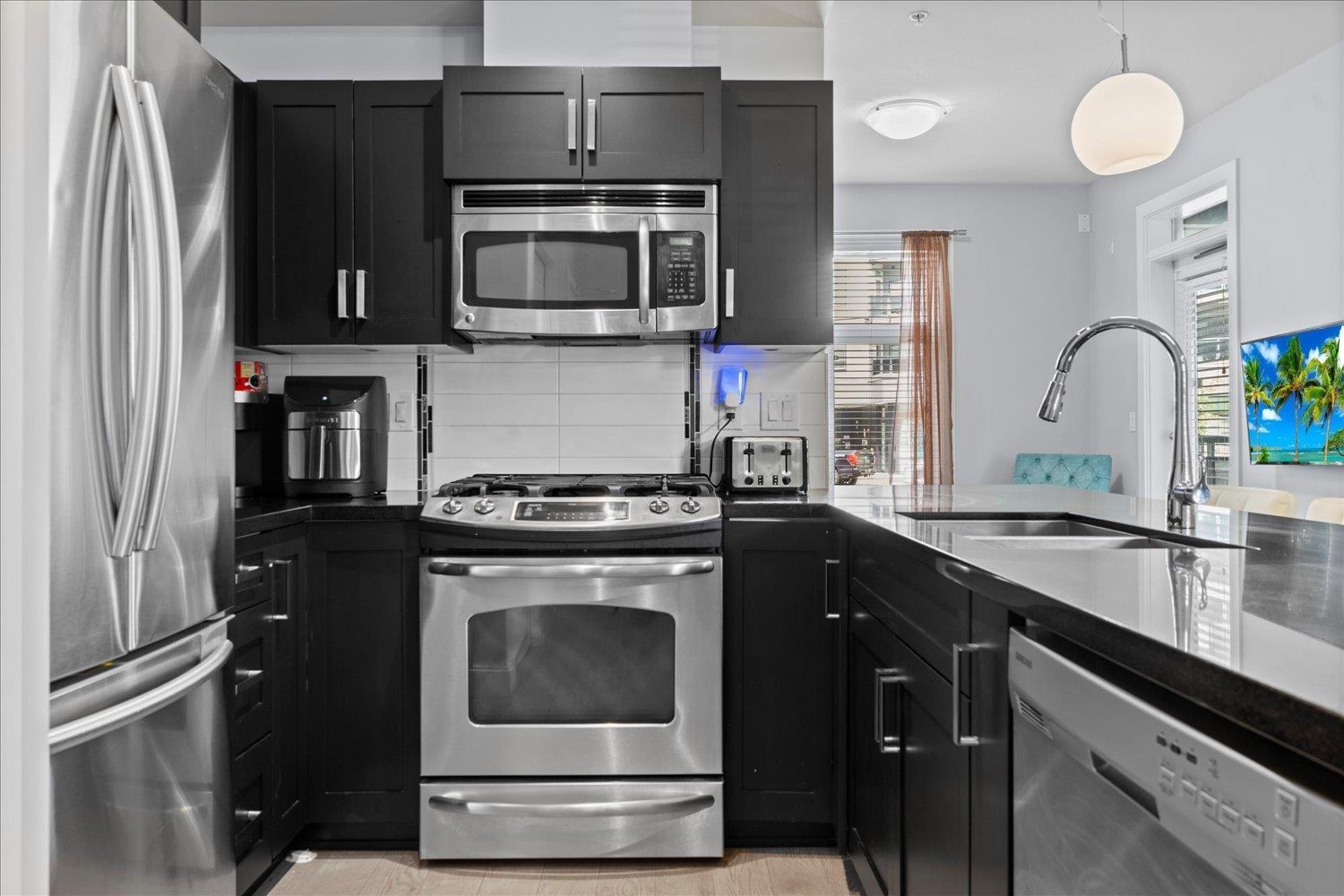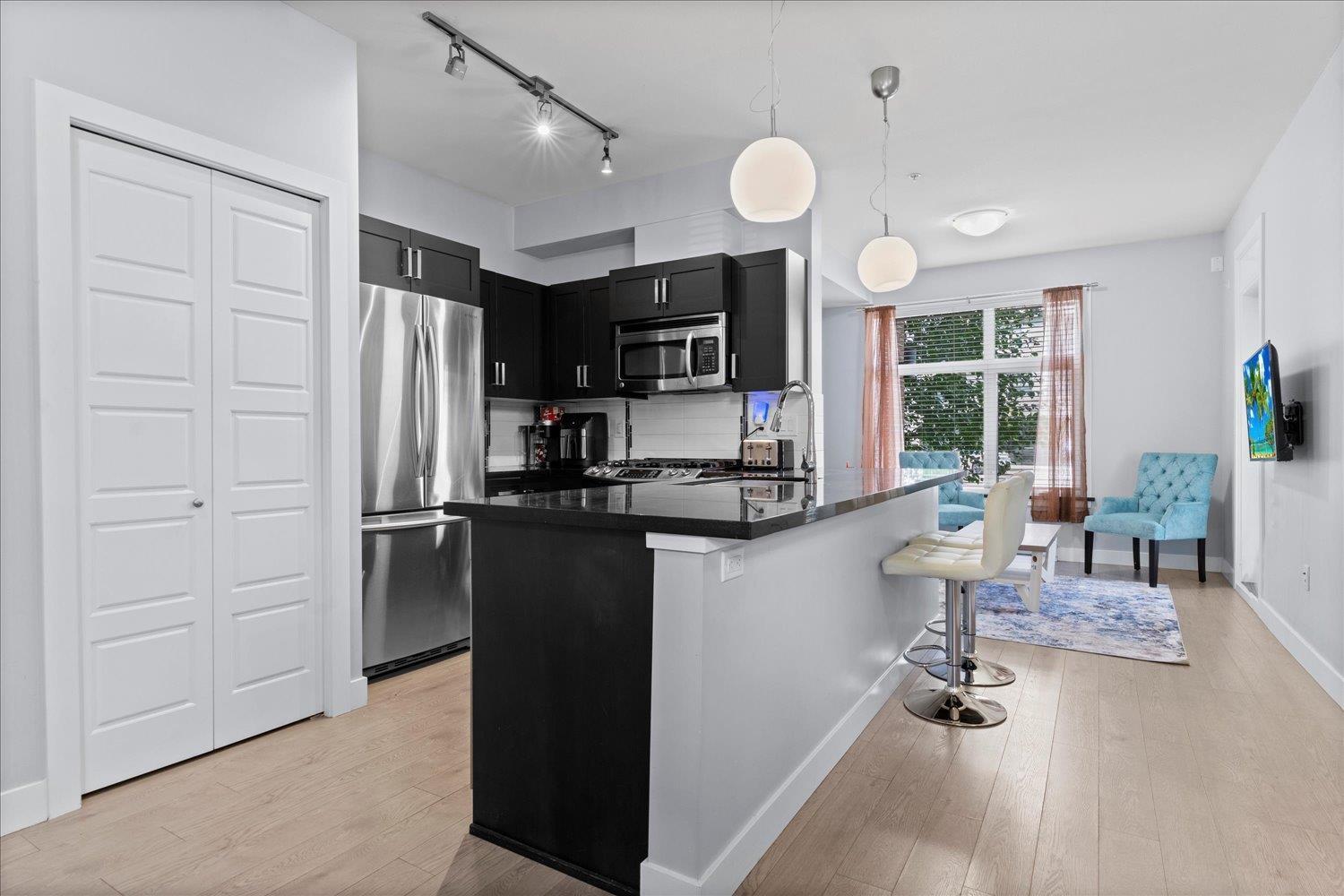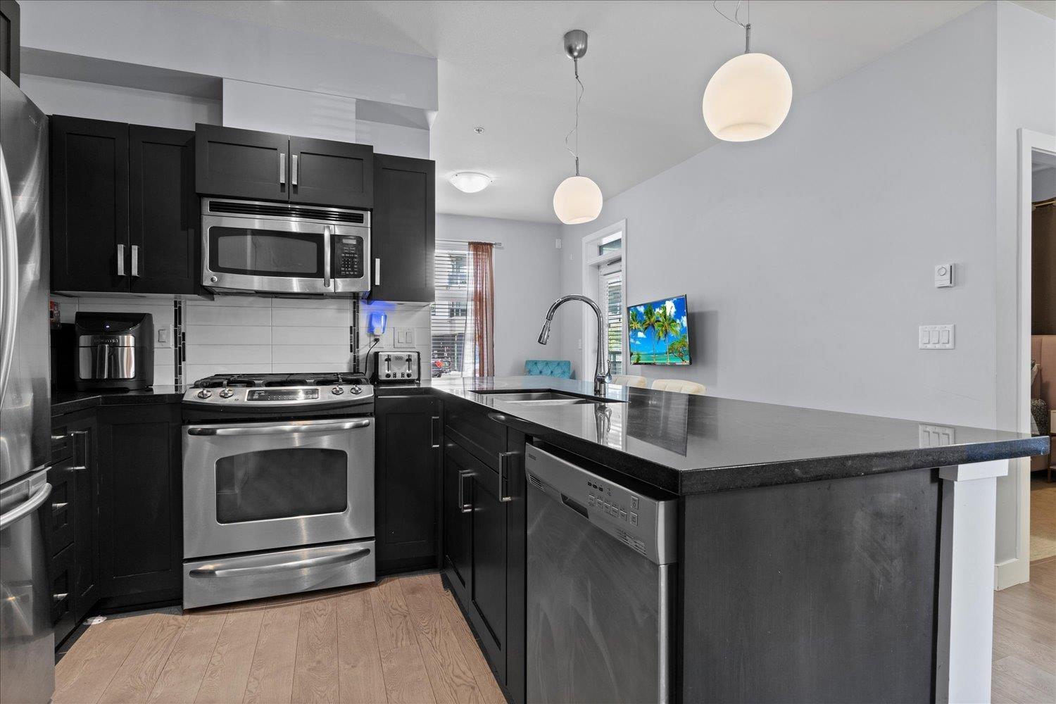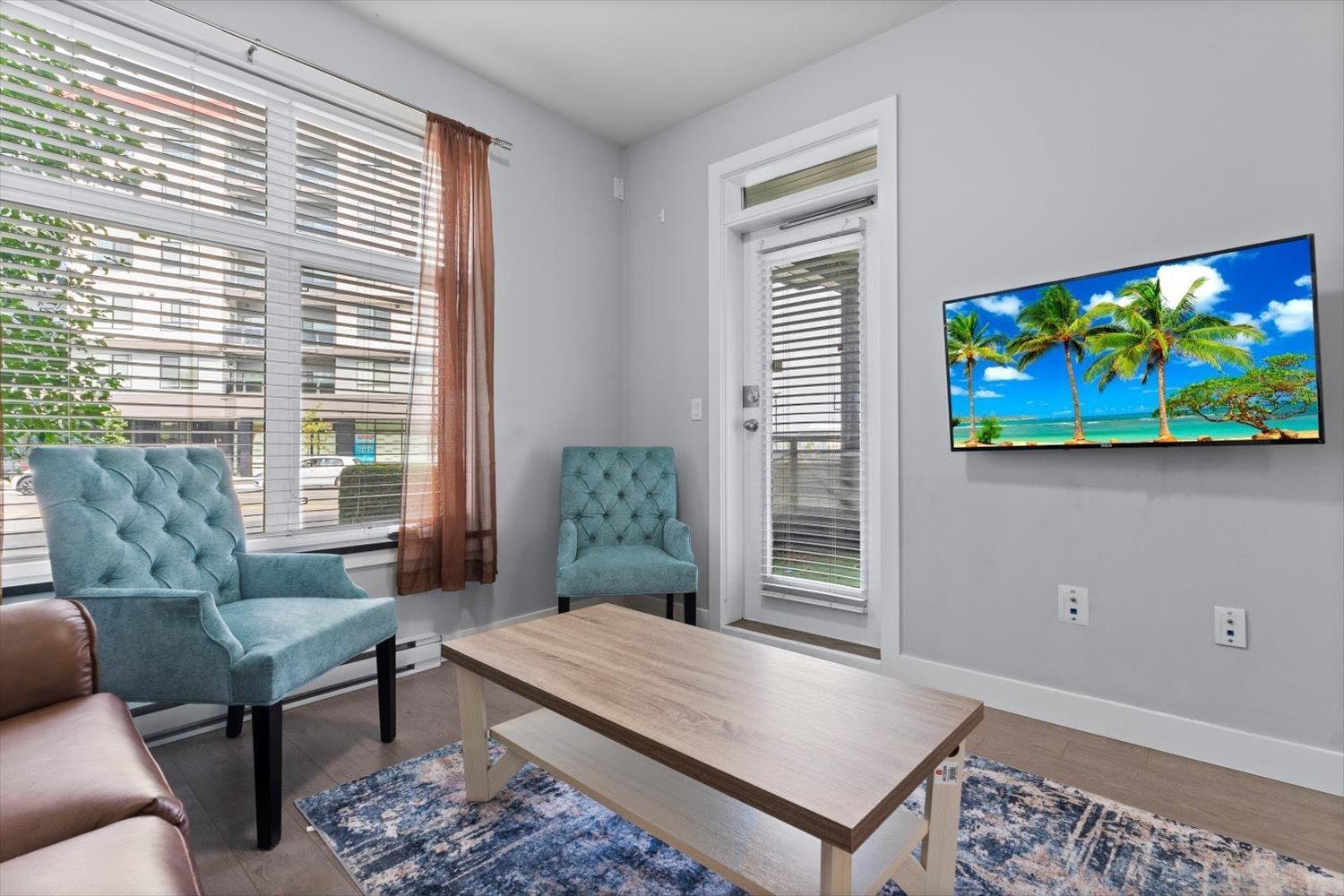 $346.08 MonthlyGround-Floor Corner Unit in the Heart of Langley City! Welcome to Varsity-a bright, modern 1 bed + 1 bath condo with tall windows, open-concept layout, and an elevated ground-level patio for easy indoor-outdoor living. Enjoy a stylish kitchen with stainless steel appliances, granite countertops, and soft-close cabinetry. This secure and pet-friendly building , 2 pets no size or breed restrictions, includes 1 underground parking stall and 1 storage locker. Walk to Willowbrook Mall, shops, restaurants, parks, and schools. Future SkyTrain station just minutes away makes this a smart investment! Experience comfort, convenience, and lifestyle in one of Langley's most walkable locations. (id:52823)