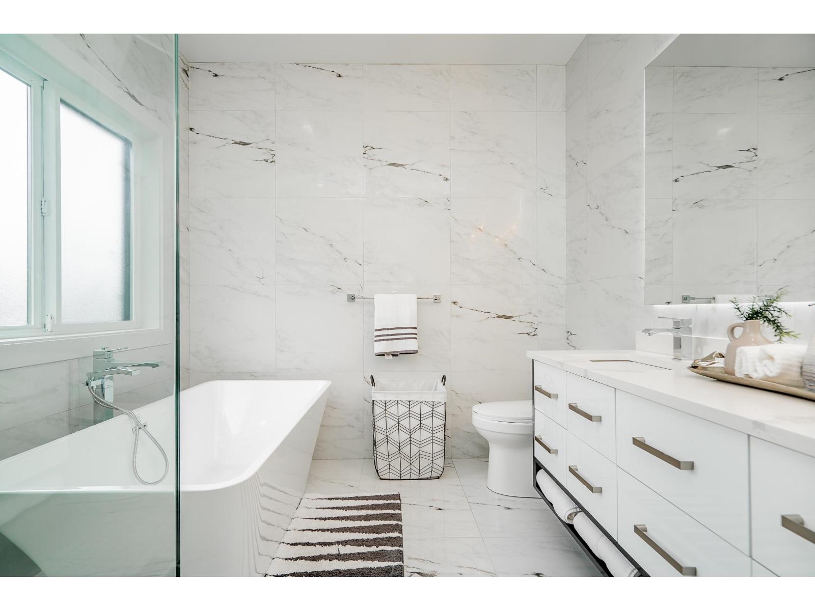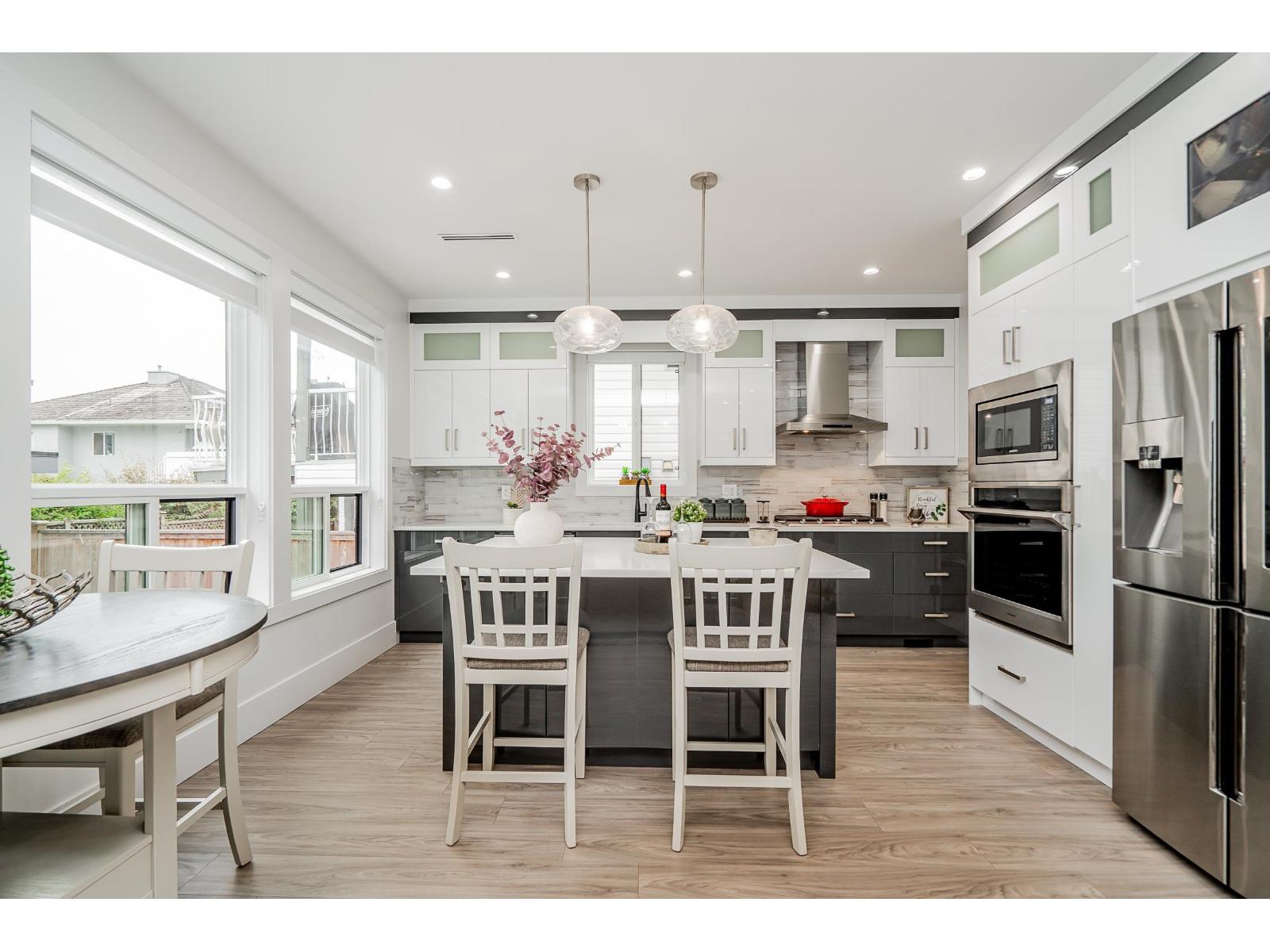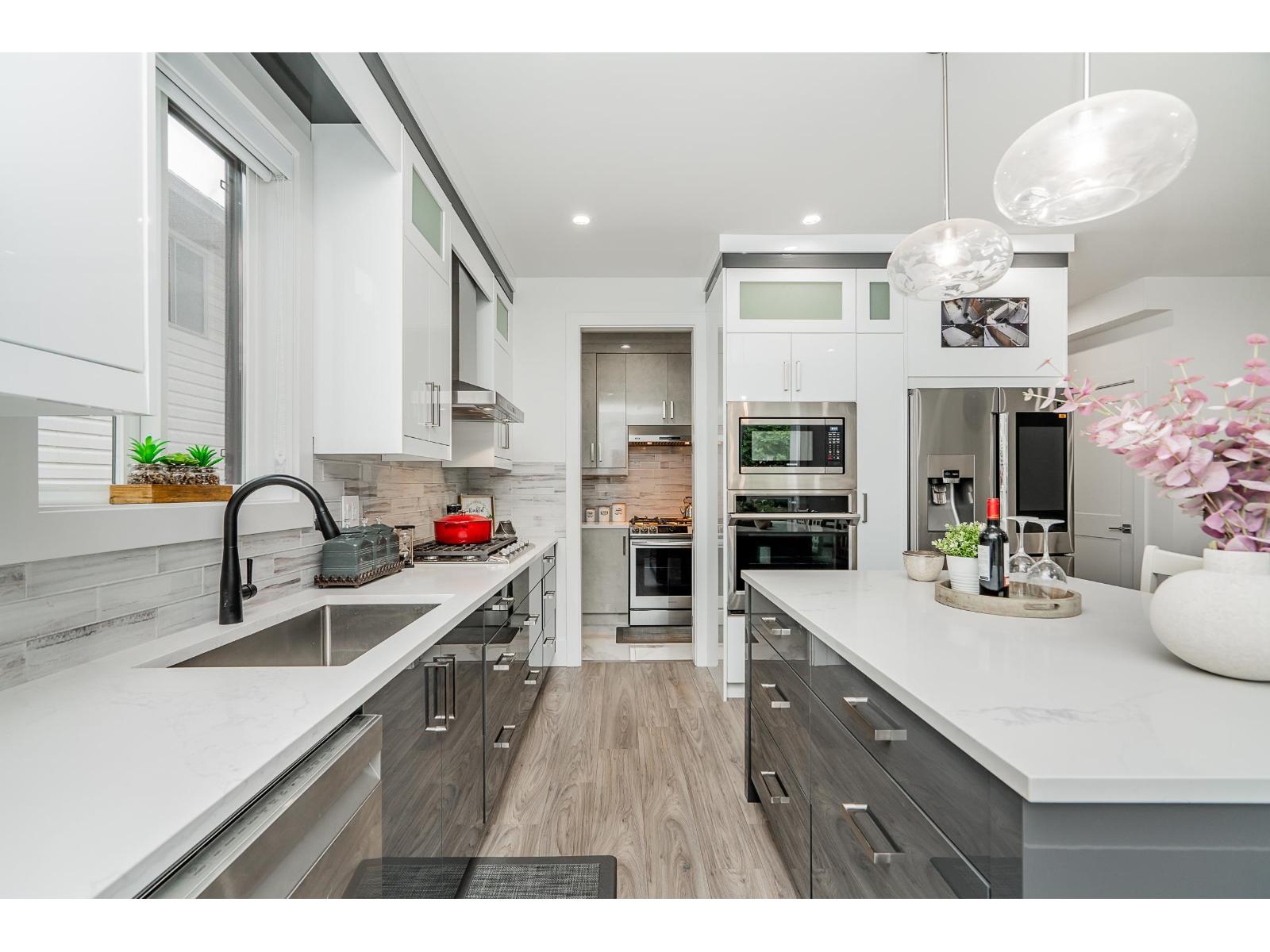 Step onto the inviting veranda and into the foyer of this stunning home. Down the hall, you'll find a powder room & bedroom before reaching the bright, south-facing family room, seamlessly connected to a gourmet kitchen. The kitchen boasts a spacious island, sleek quartz countertops, high-gloss cabinetry, and stainless steel appliances, with a large pantry in the spice kitchen for added convenience. Upstairs, the primary suite features a generous walk-in closet and a luxurious ensuite with dual vanities, a soaker tub, and a walk-in shower. Three additional bedrooms are also on this level, including one with a Jack & Jill ensuite. The basement offers a legal two-bedroom suite plus a versatile flex room. (id:52823)