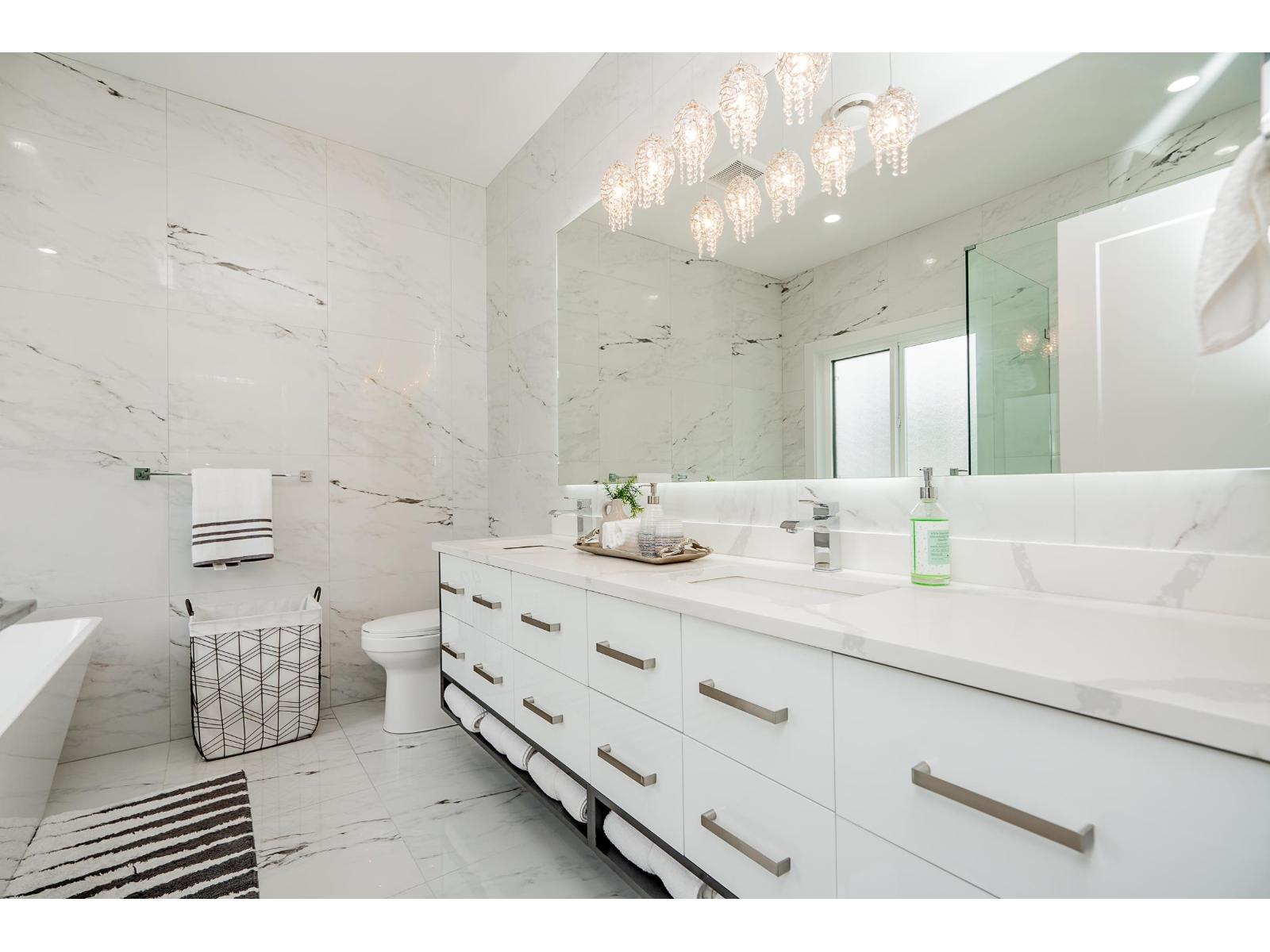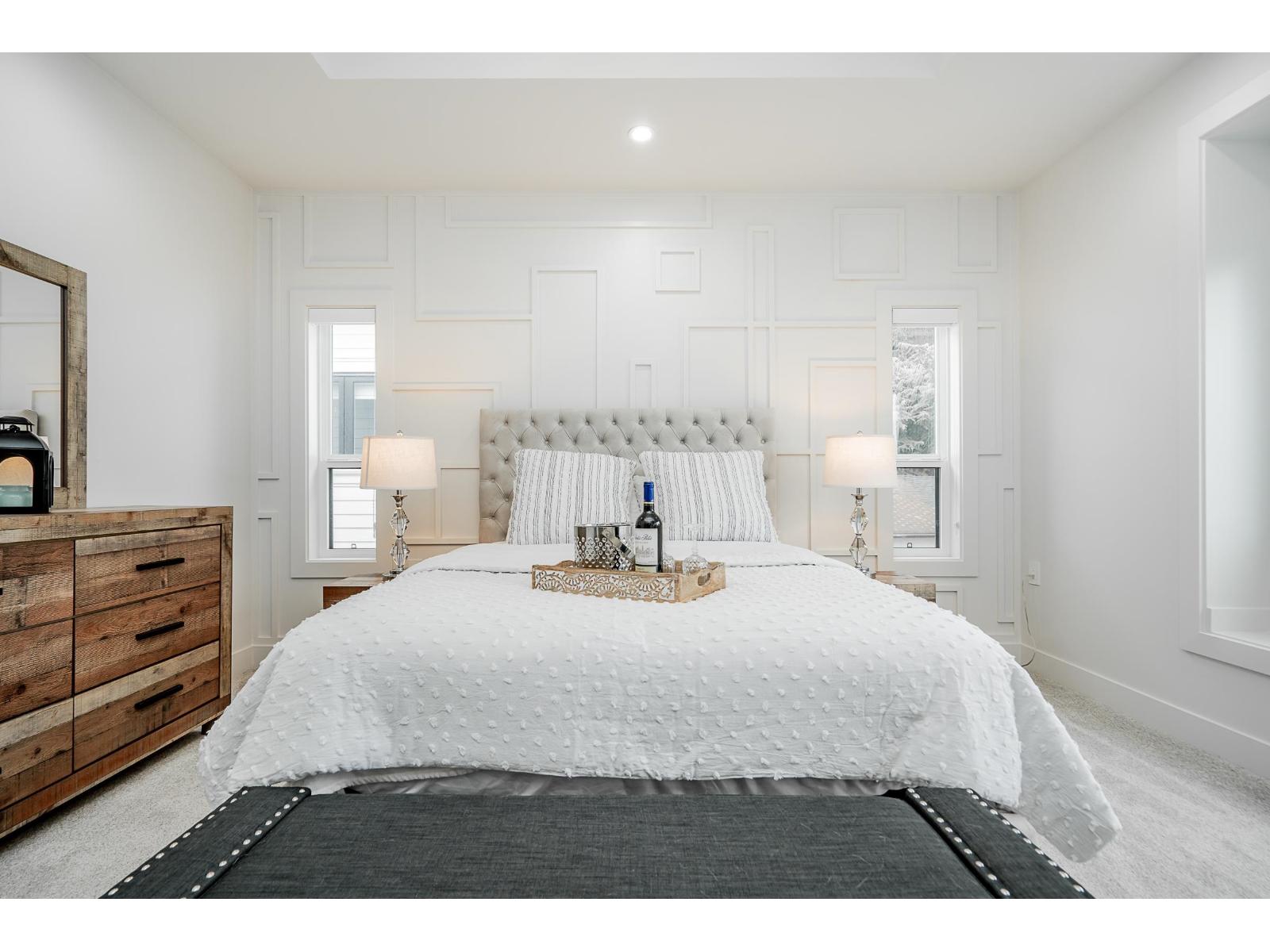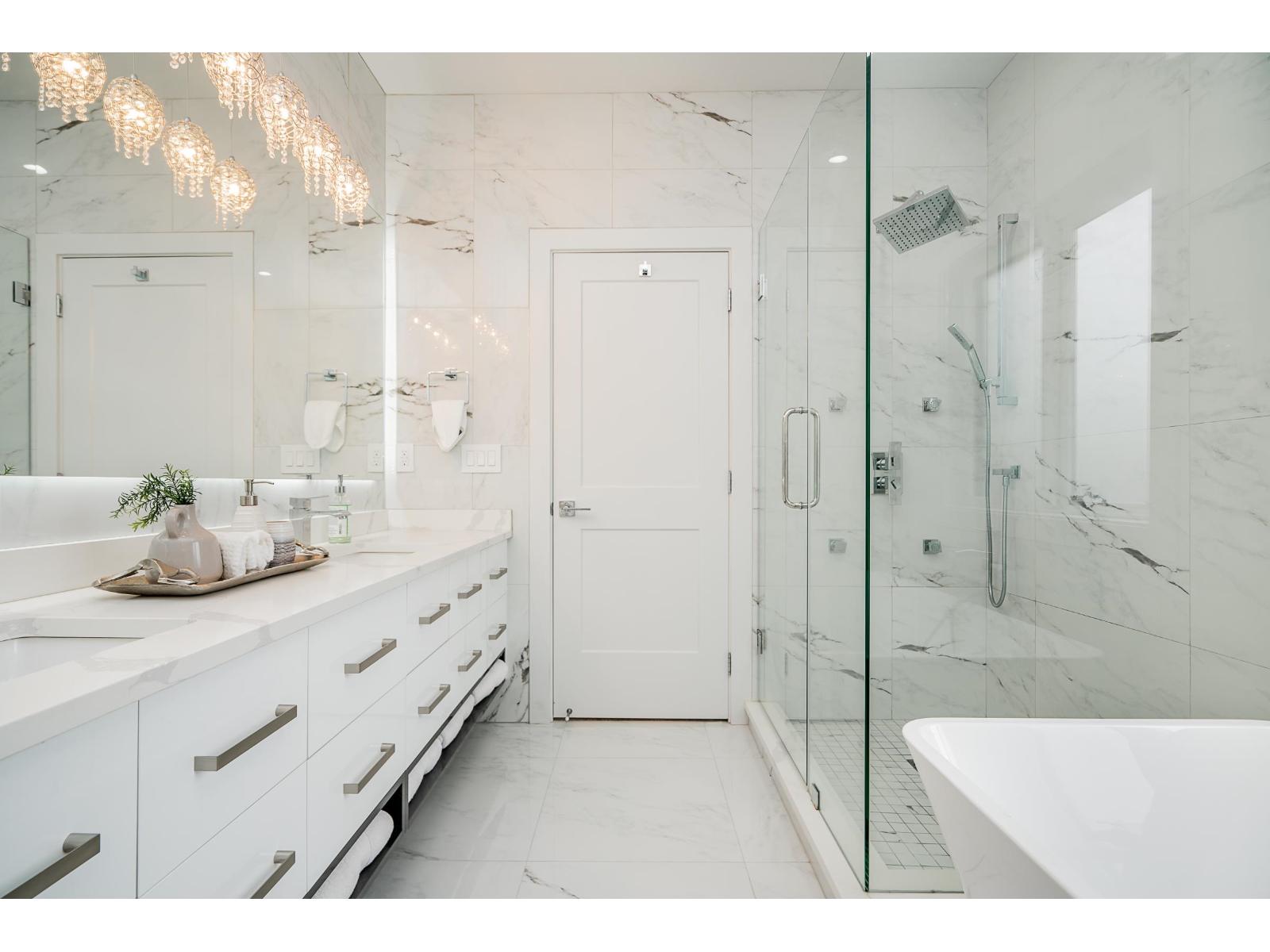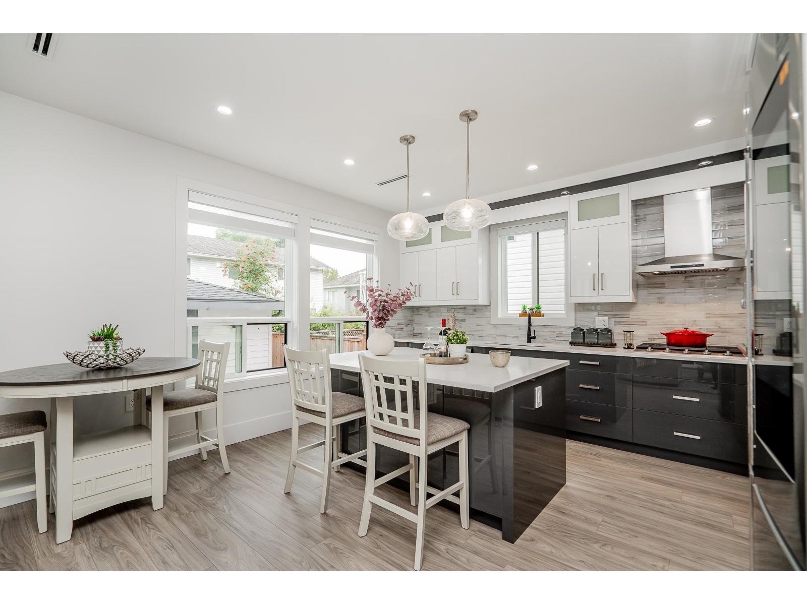 Step onto the inviting veranda and into the foyer of this stunning home. Down the hall, you'll find a powder room & bedroom before reaching the bright, south-facing family room, seamlessly connected to a gourmet kitchen. The kitchen boasts a spacious island, sleek quartz countertops, high-gloss cabinetry, and stainless steel appliances, with a large pantry in the spice kitchen for added convenience. Upstairs, the primary suite features a generous walk-in closet and a luxurious ensuite with dual vanities, a soaker tub, and a walk-in shower. Three additional bedrooms are also on this level, including one with a Jack & Jill ensuite. The basement offers a legal two-bedroom suite plus a versatile flex room. (id:52823)