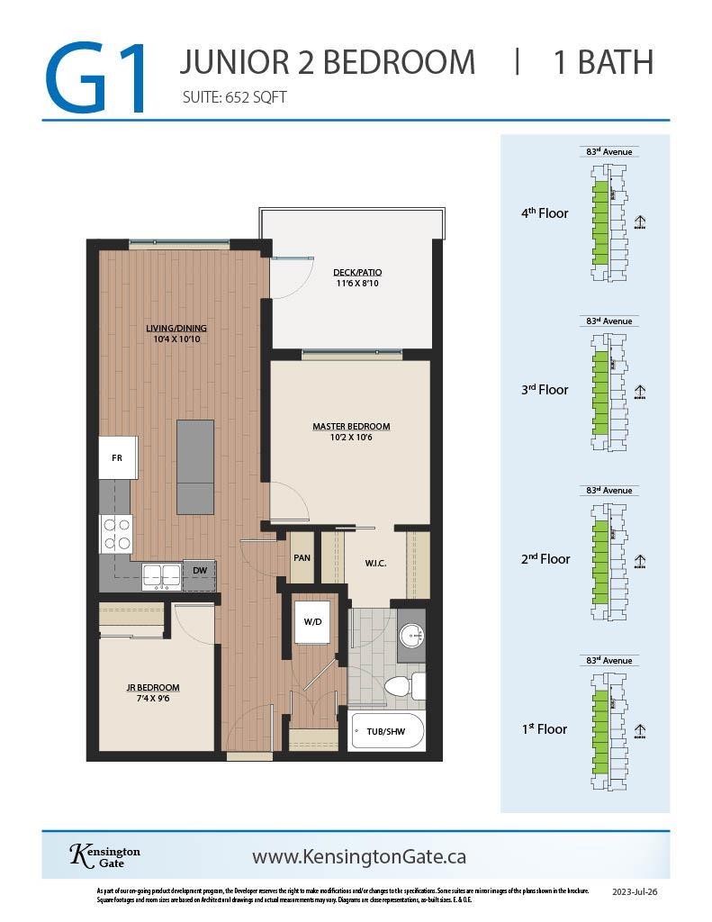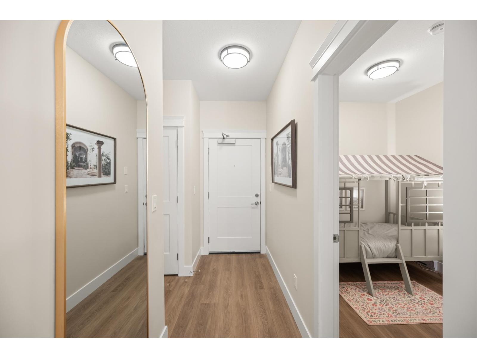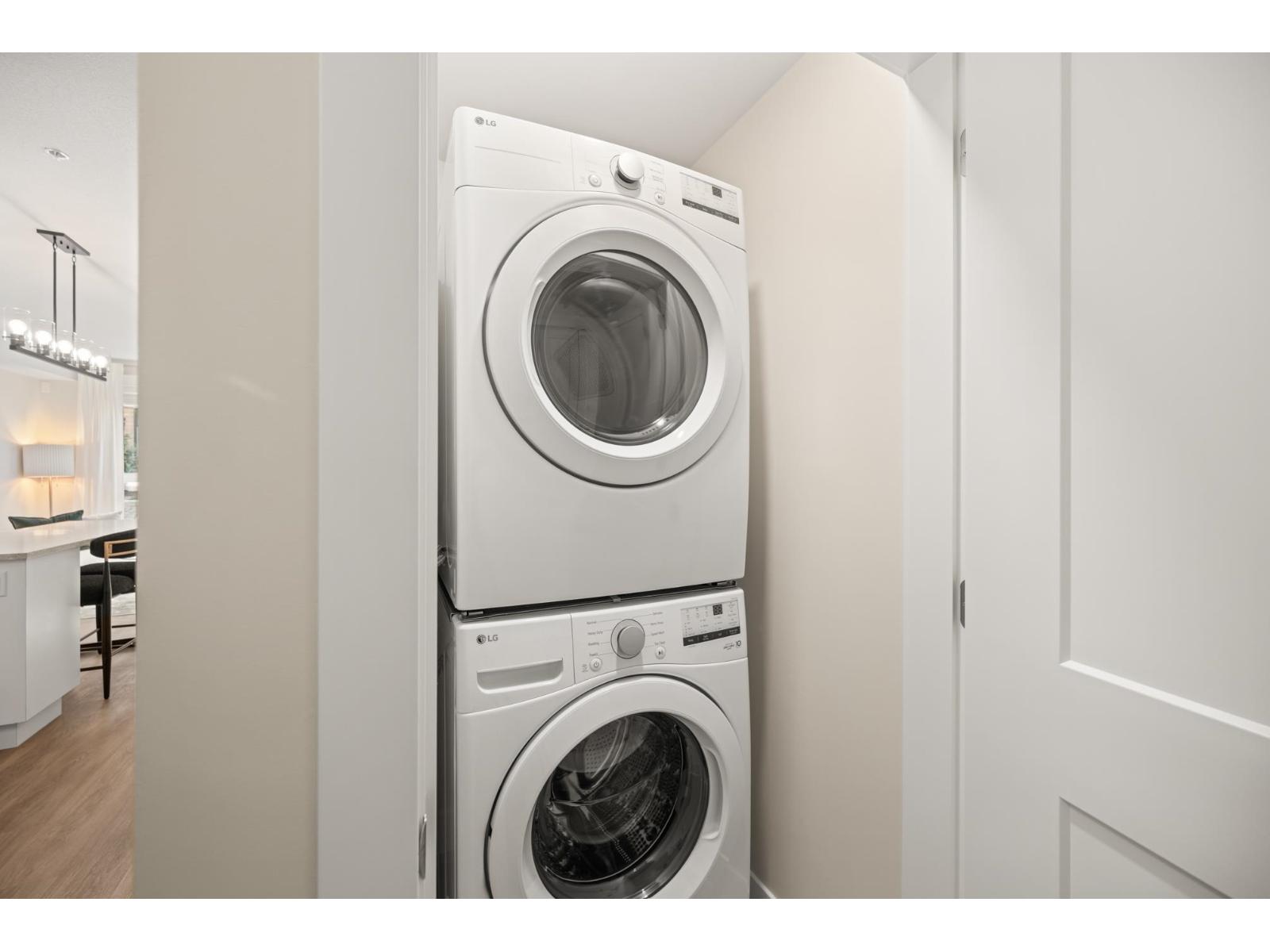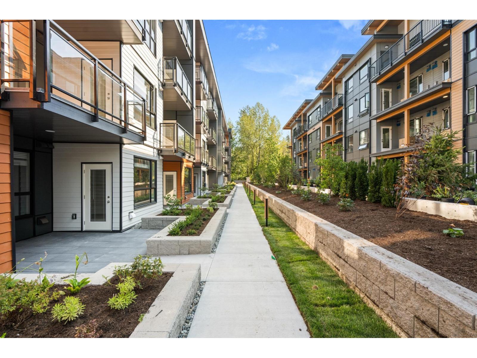 Welcome to Kensington Gate by Quadra Homes! This stylish junior 2 bed, 1 bath ground floor unit offers modern comfort and quality finishes in a prime location. The open-concept kitchen features stainless steel appliances, quartz counters, and sleek shaker cabinets. Enjoy large windows that fill the space with natural light, 9-ft ceilings, air conditioning, and heated floors in the bathroom for added comfort. Step outside to a private patio perfect for relaxing or entertaining with natural gas hookup. Includes one secure underground parking stall with EV charging capability. Walking distance to Lynn Fripps Elementary-ideal for families, first-time buyers, or downsizers seeking convenience, style, and trusted craftsmanship. CALL TO SEE UNIT IN PERSON! (id:52823)