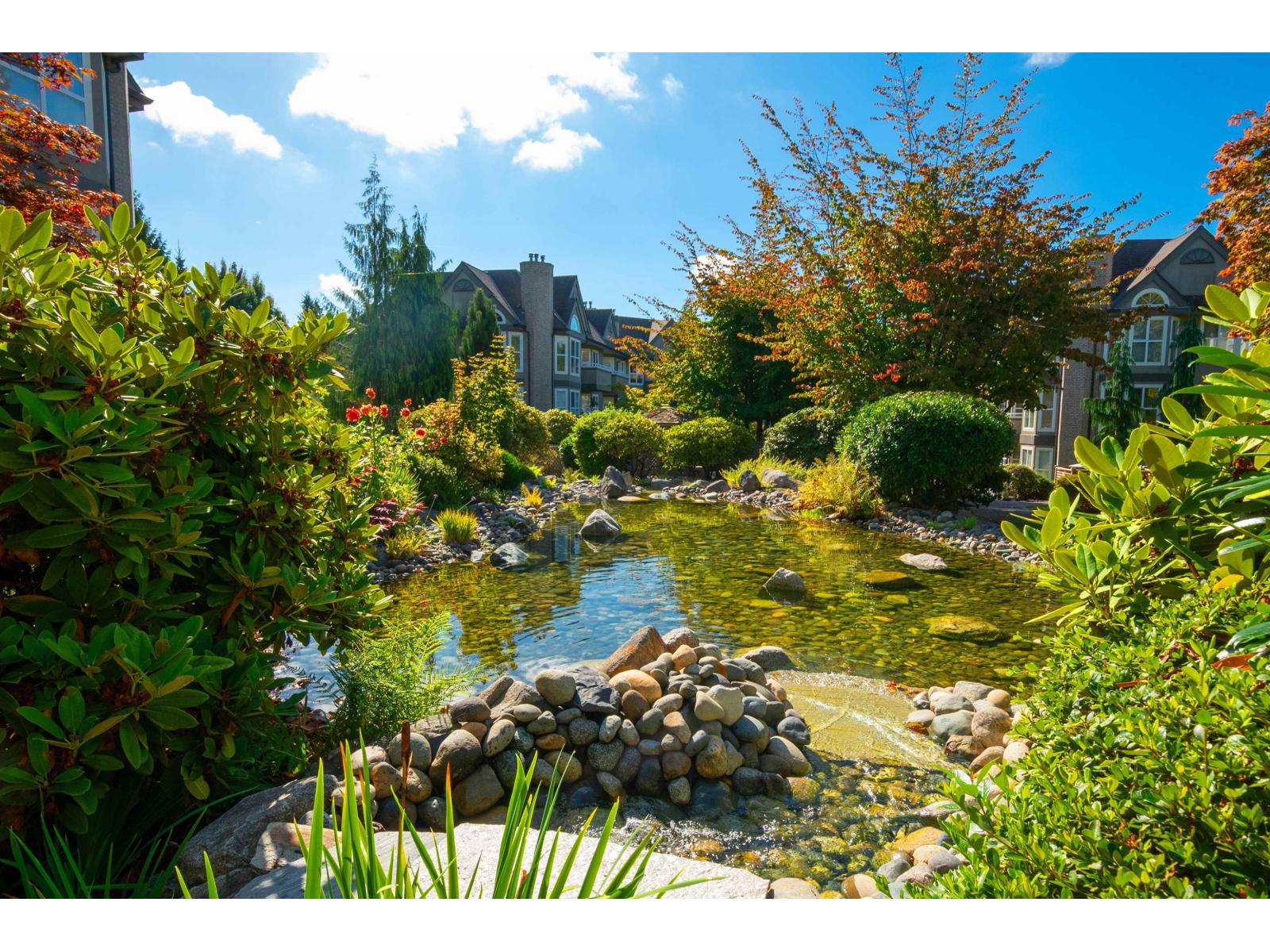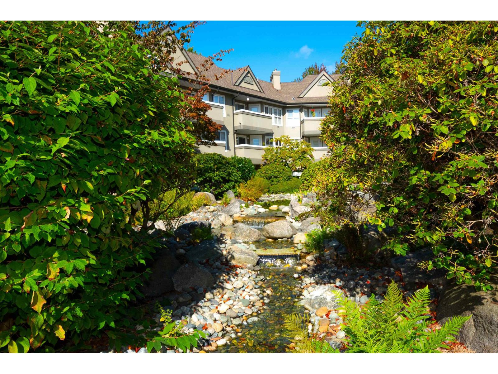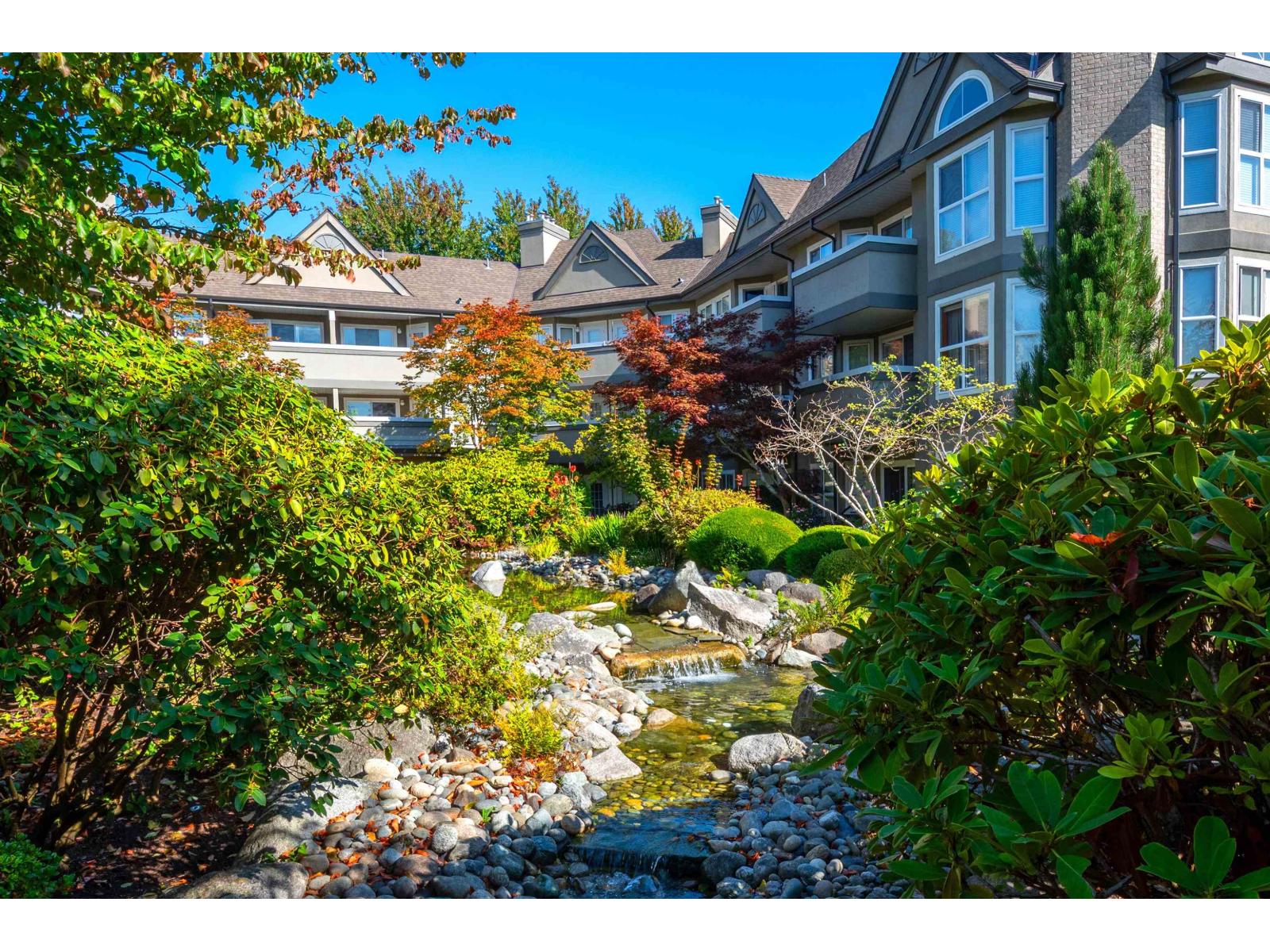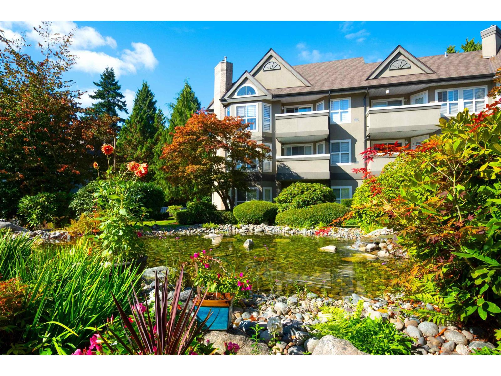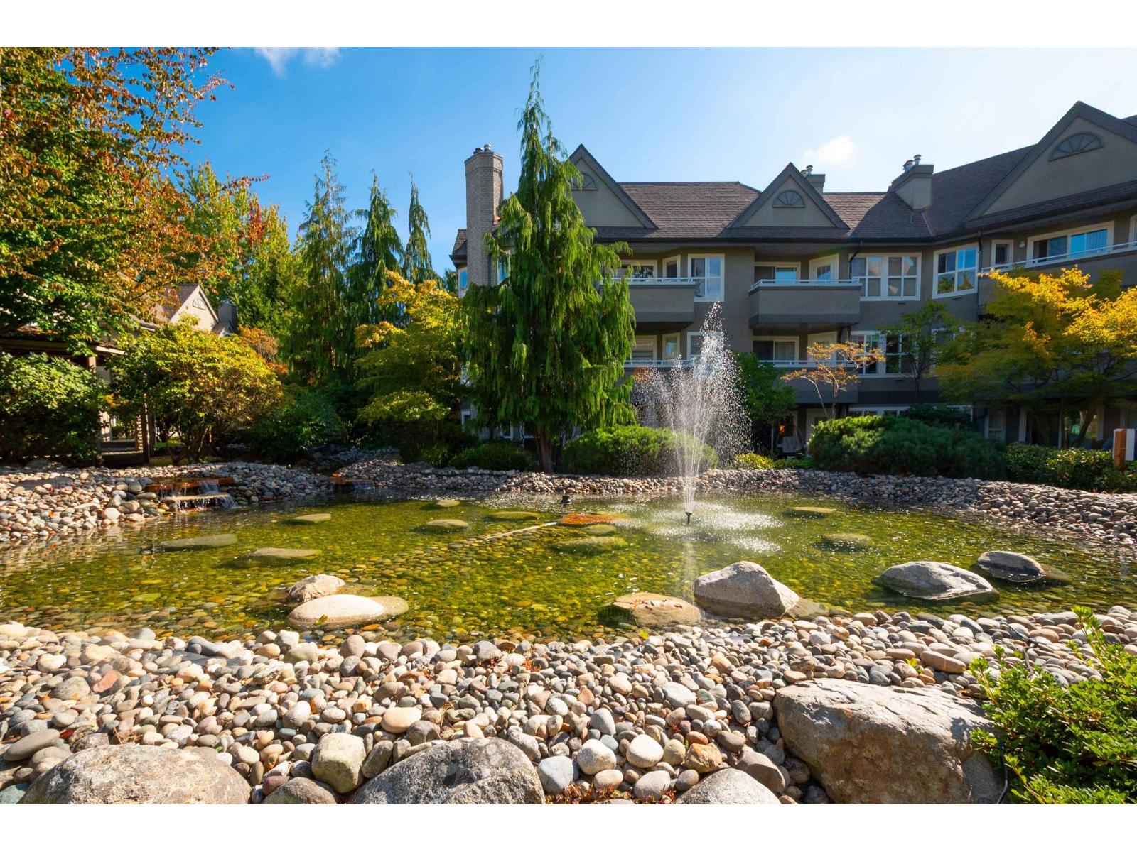 $607.01 MonthlyBest corner location in Lakewood Terrance. Quiet S.W facing ground-floor home offers extra large floor plan with 9-ft high-ceilings, two sides of bay windows in LV, filling space with natural light. Enjoy cozy patio that opens directly onto a lush greenbelt. Beautifully updated throughout with quality laminate flooring & crown moldings. Modern kitchen features shaker cabinets, S/S appliances, and stylish titled back splash. In-floor radiant heating and gas fireplace are both included in maintenance fees. Very well maintained complex with newer roof. Amenity room with lounge space, pool table, and kids play area. Beautifully landscaped gardens with a stream and fountain. 2 parking & 1 locker. 1 pet allowed. Perfect unit for downsizing and small family. Showing by appointment only. (id:52823)