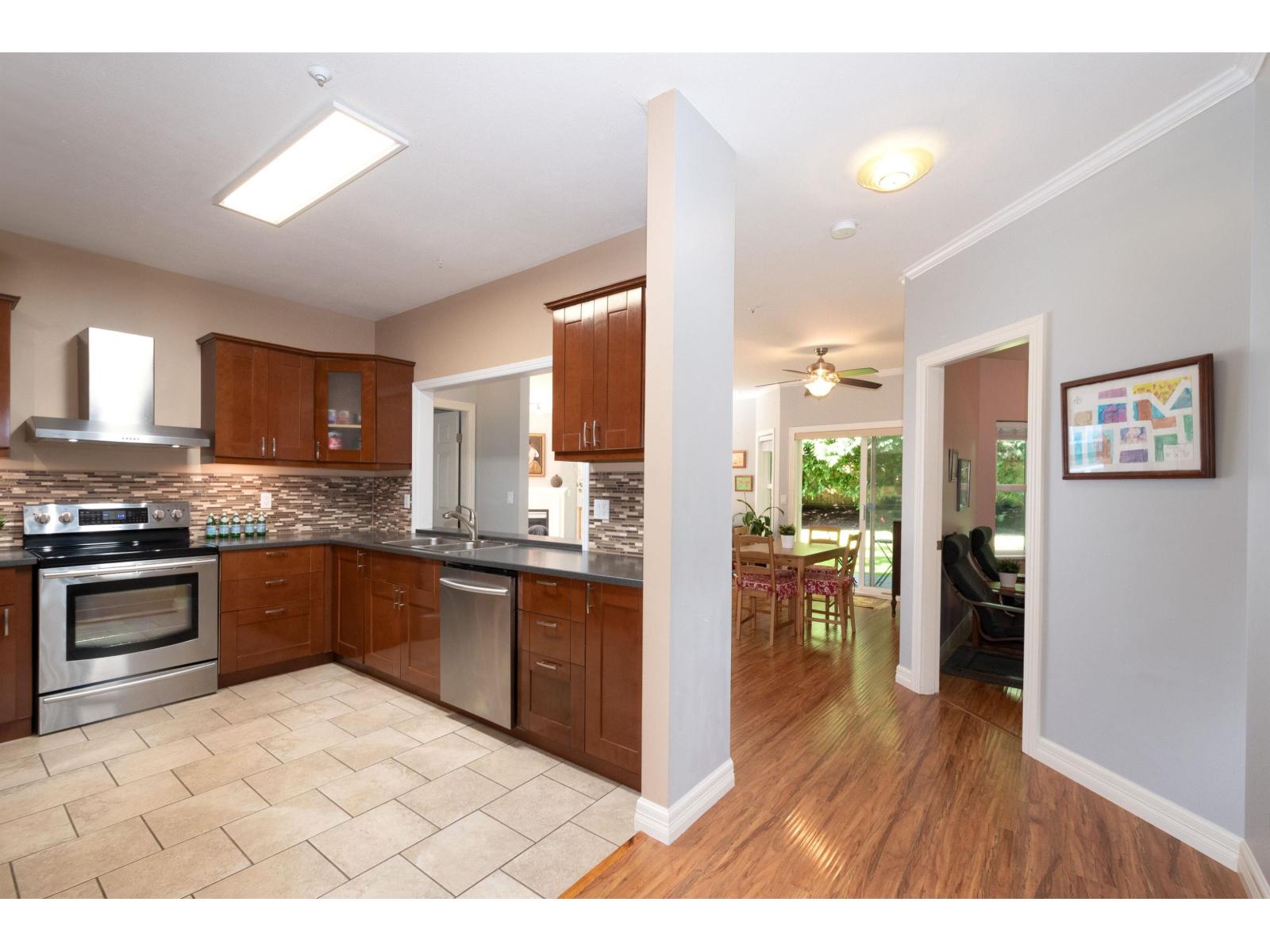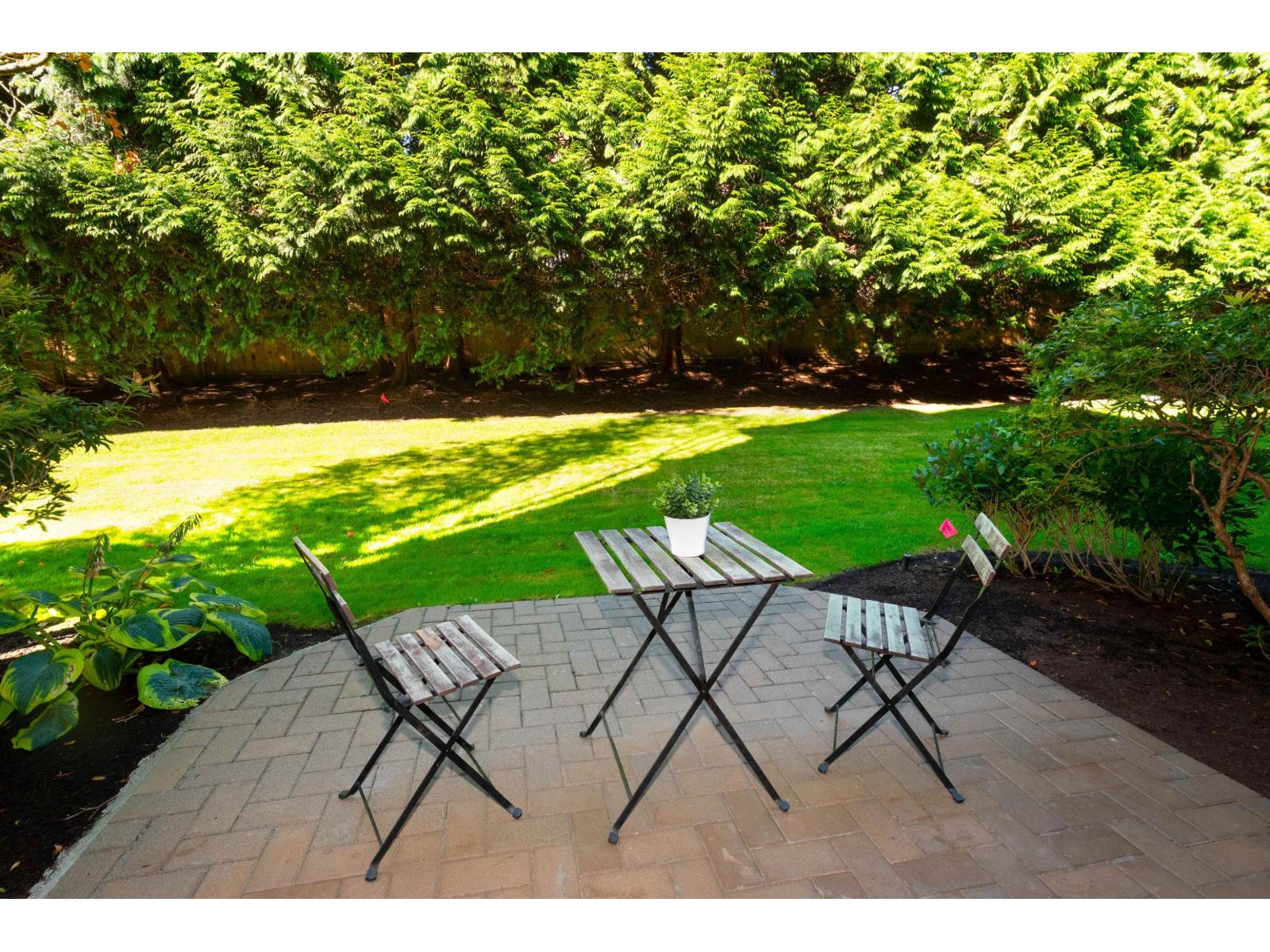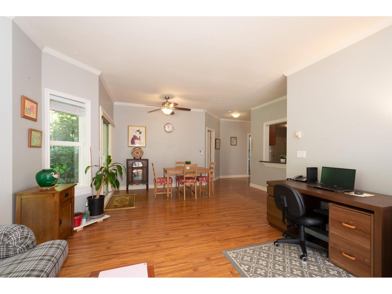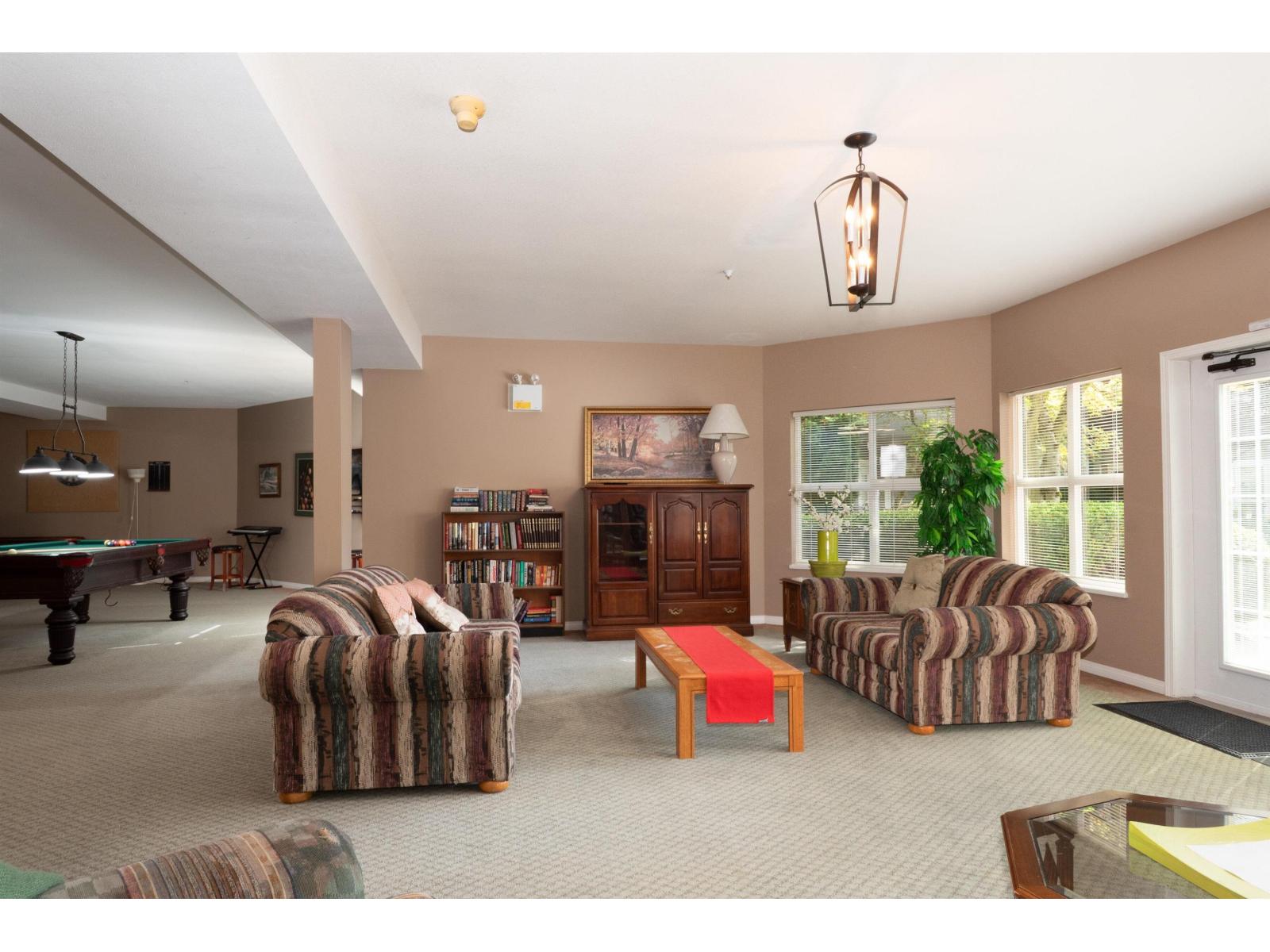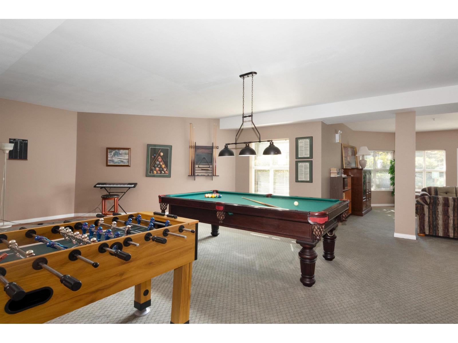 $607.01 MonthlyBest corner location in Lakewood Terrance. Quiet S.W facing ground-floor home offers extra large floor plan with 9-ft high-ceilings, two sides of bay windows in LV, filling space with natural light. Enjoy cozy patio that opens directly onto a lush greenbelt. Beautifully updated throughout with quality laminate flooring & crown moldings. Modern kitchen features shaker cabinets, S/S appliances, and stylish titled back splash. In-floor radiant heating and gas fireplace are both included in maintenance fees. Very well maintained complex with newer roof. Amenity room with lounge space, pool table, and kids play area. Beautifully landscaped gardens with a stream and fountain. 2 parking & 1 locker. 1 pet allowed. Perfect unit for downsizing and small family. Showing by appointment only. (id:52823)