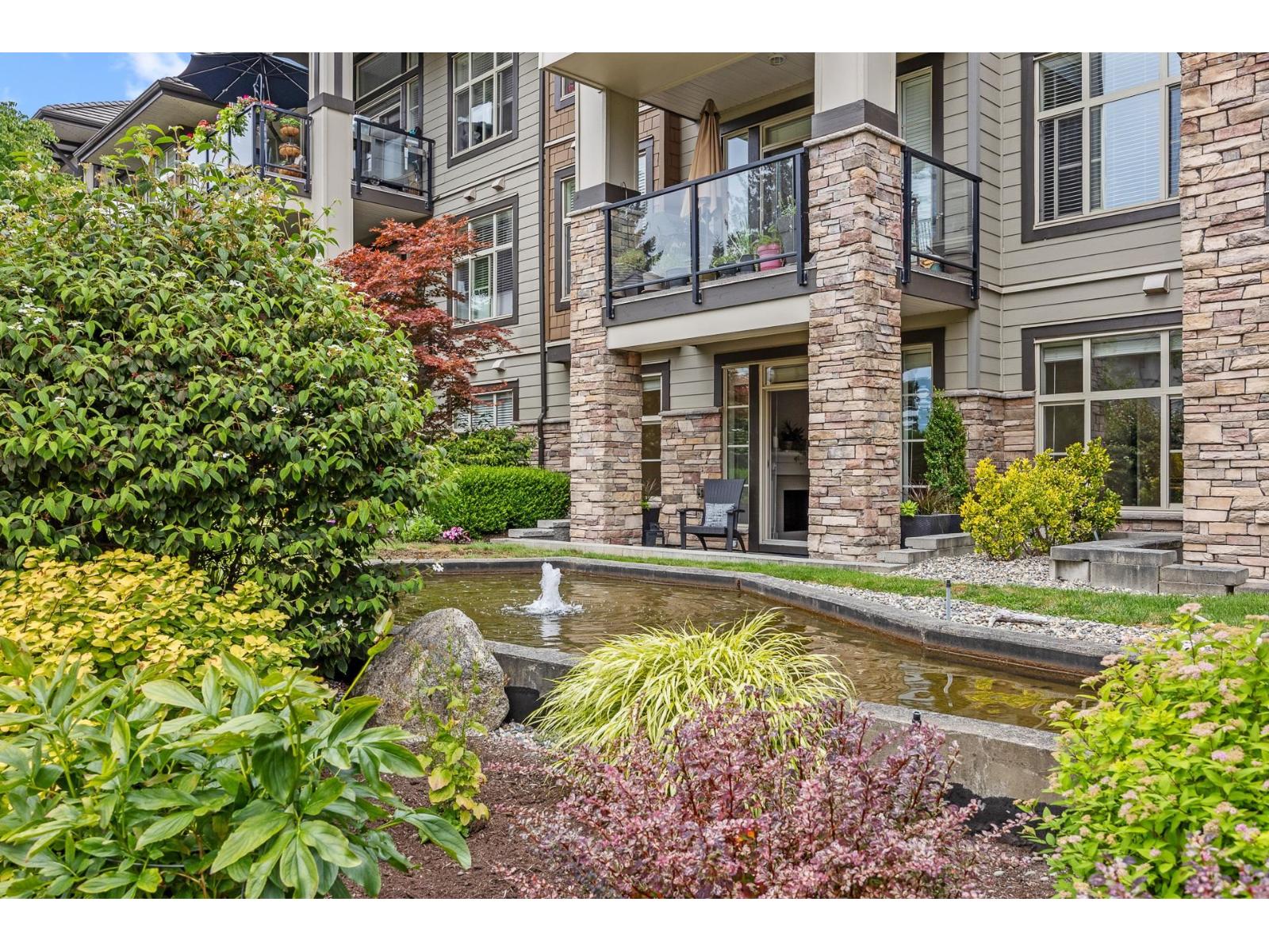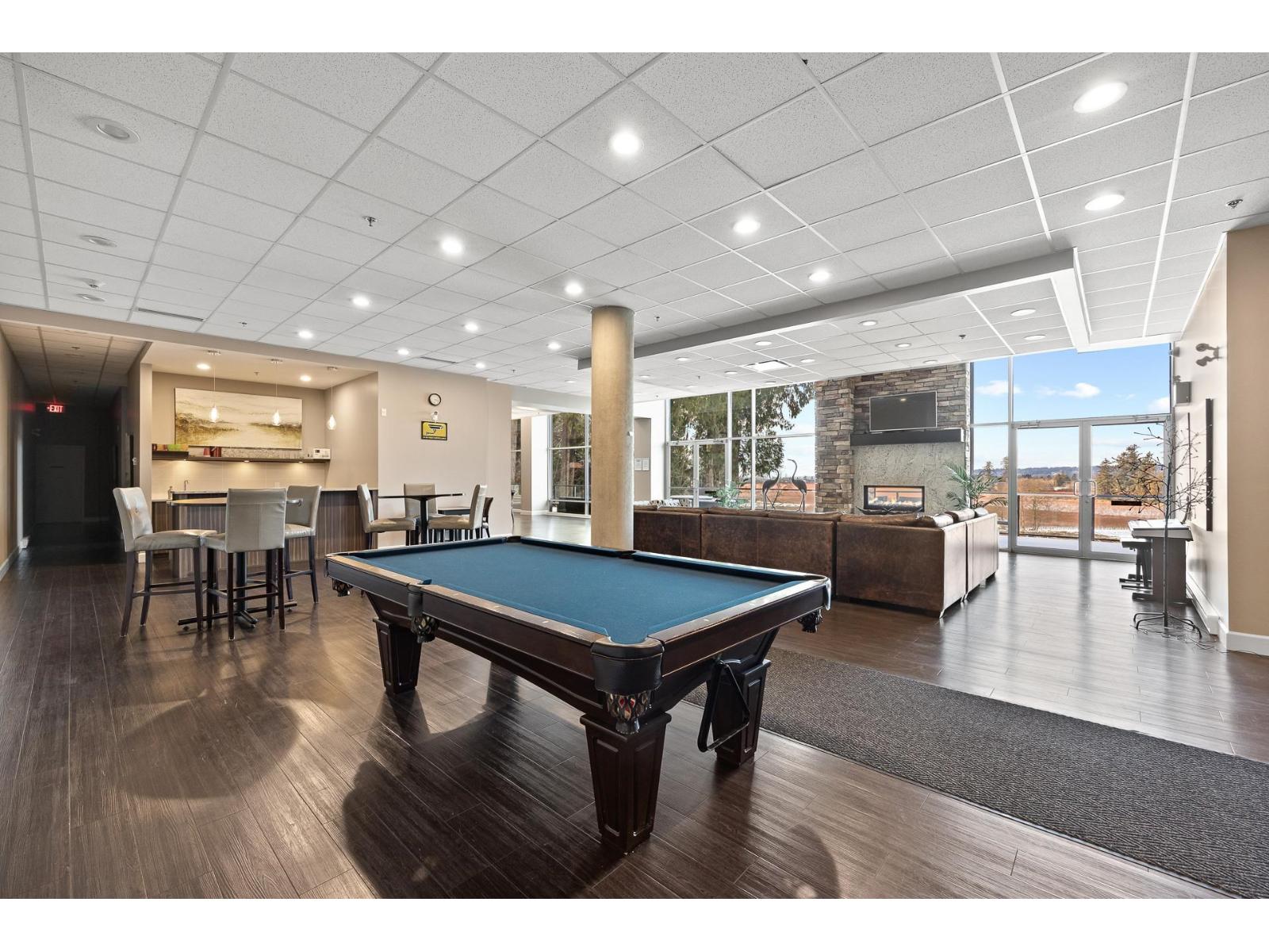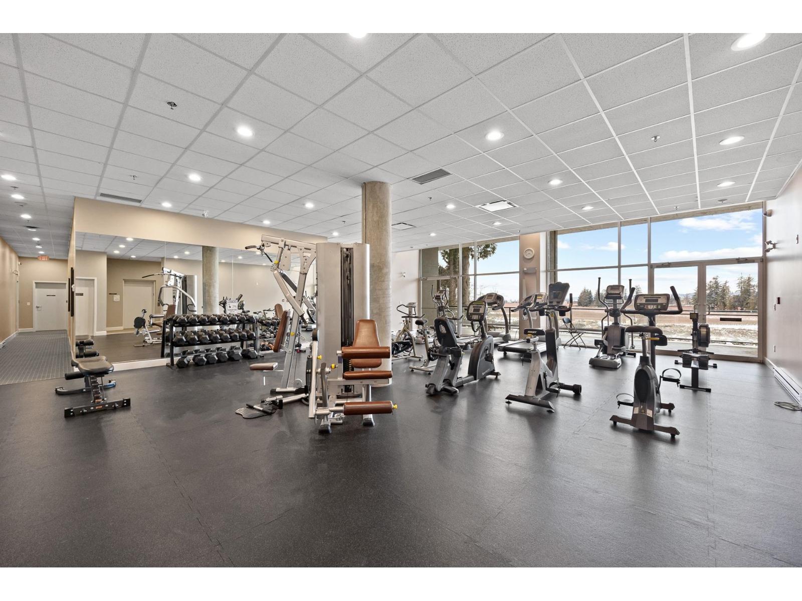 $606.53 MonthlyWelcome to Edgewater! Beautiful west-facing 2 Bed/2 Bath ground floor condo offers a peaceful escape with your main living and patio overlooking water feature of inner courtyard. Thoughtful layout with spacious kitchen, dining, living areas and bedrooms on opposite sides for privacy. Luxurious primary suite boasts a walk-in closet and spa-like ensuite with heated floors. High-end features include quartz and marble countertops, extra built-in cabinetry, 9' ceilings, an electric fireplace, and an oversized kitchen island. Recent upgrades include new paint throughout, new washer/dryer, dishwasher, microwave. Resort living with pool/hot tub, gym, yoga, media & stunning entertainment lounge with breathtaking views, guest suite and gated walking paths. Includes 2 parking spaces! Move in ready! (id:52823)