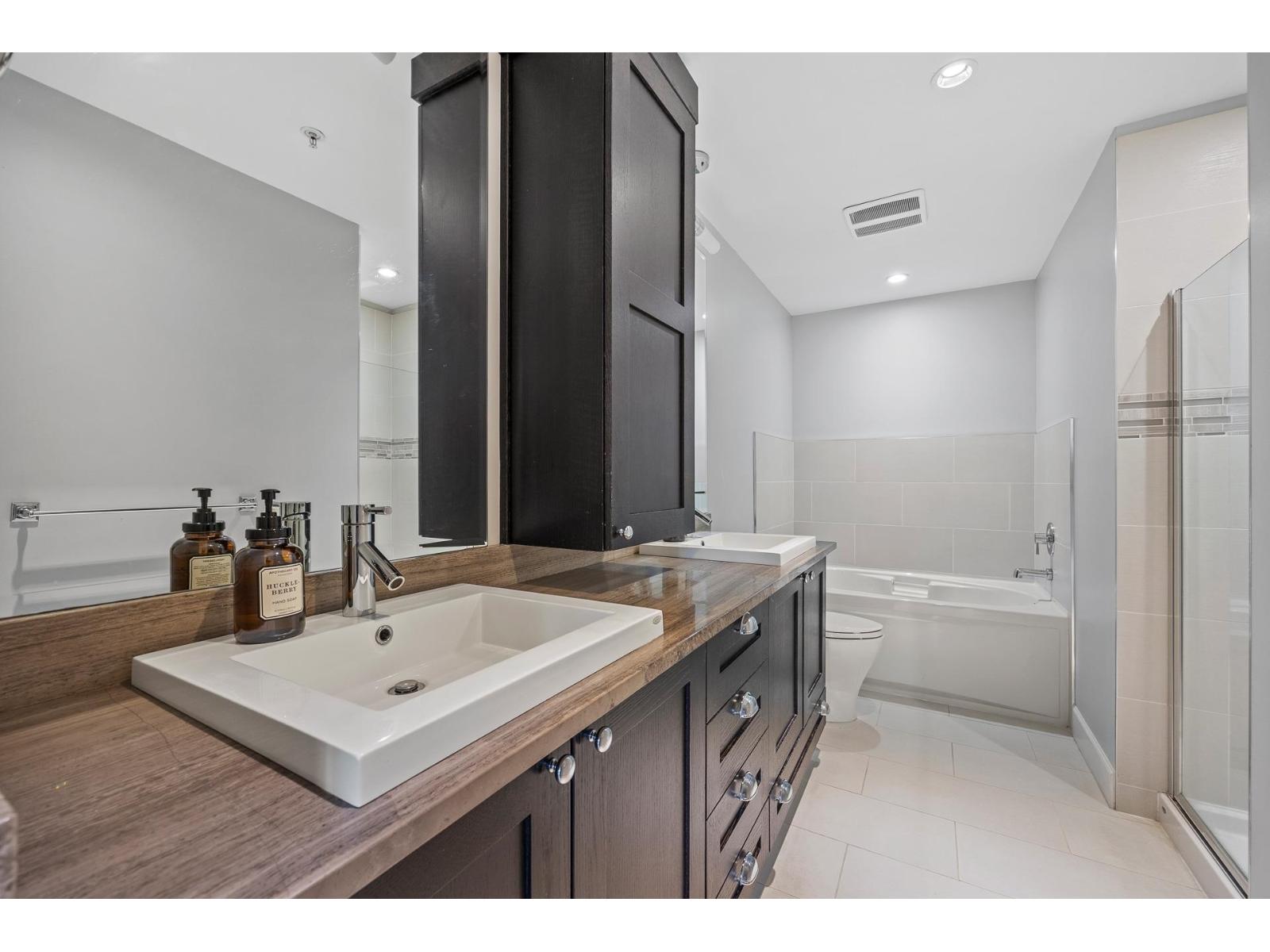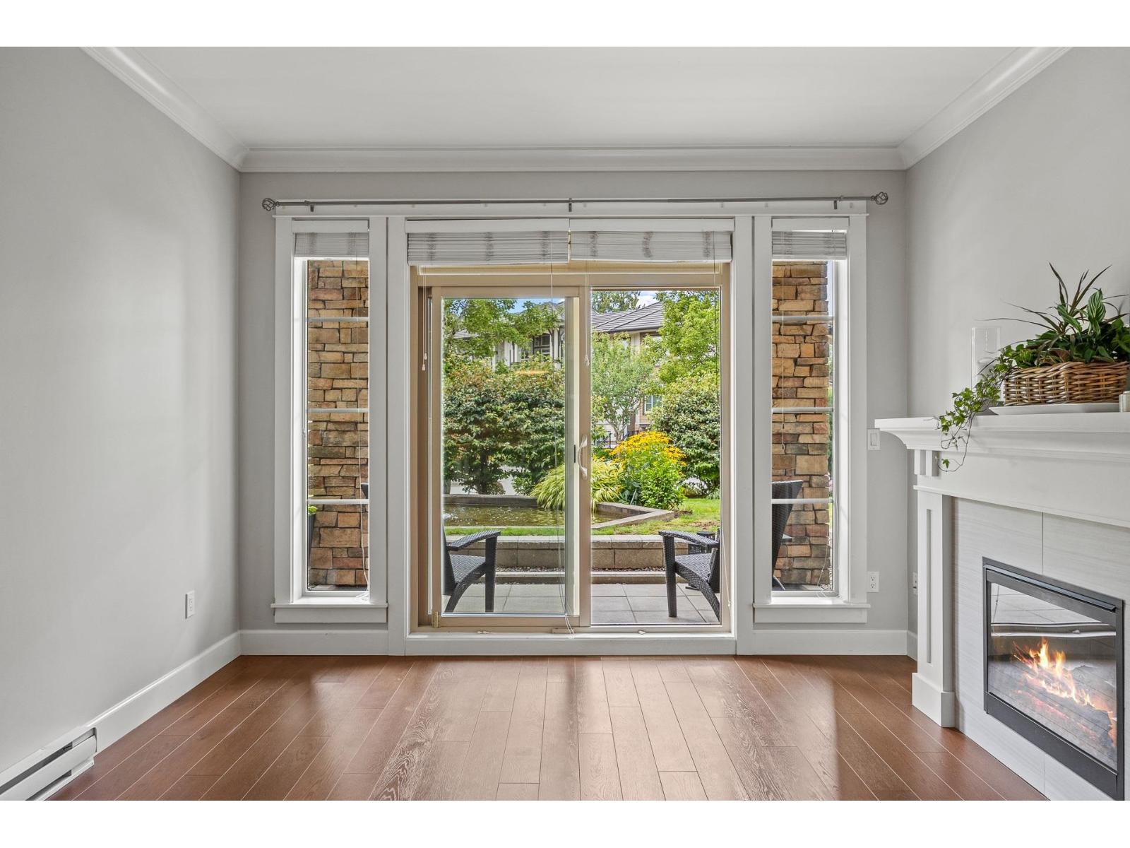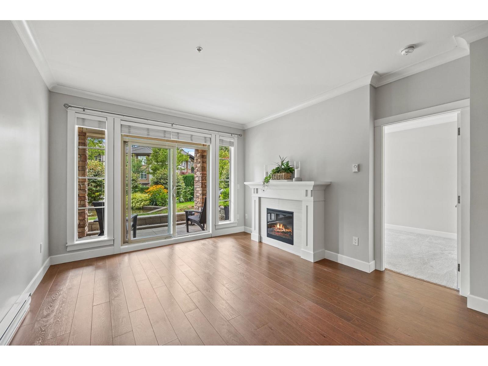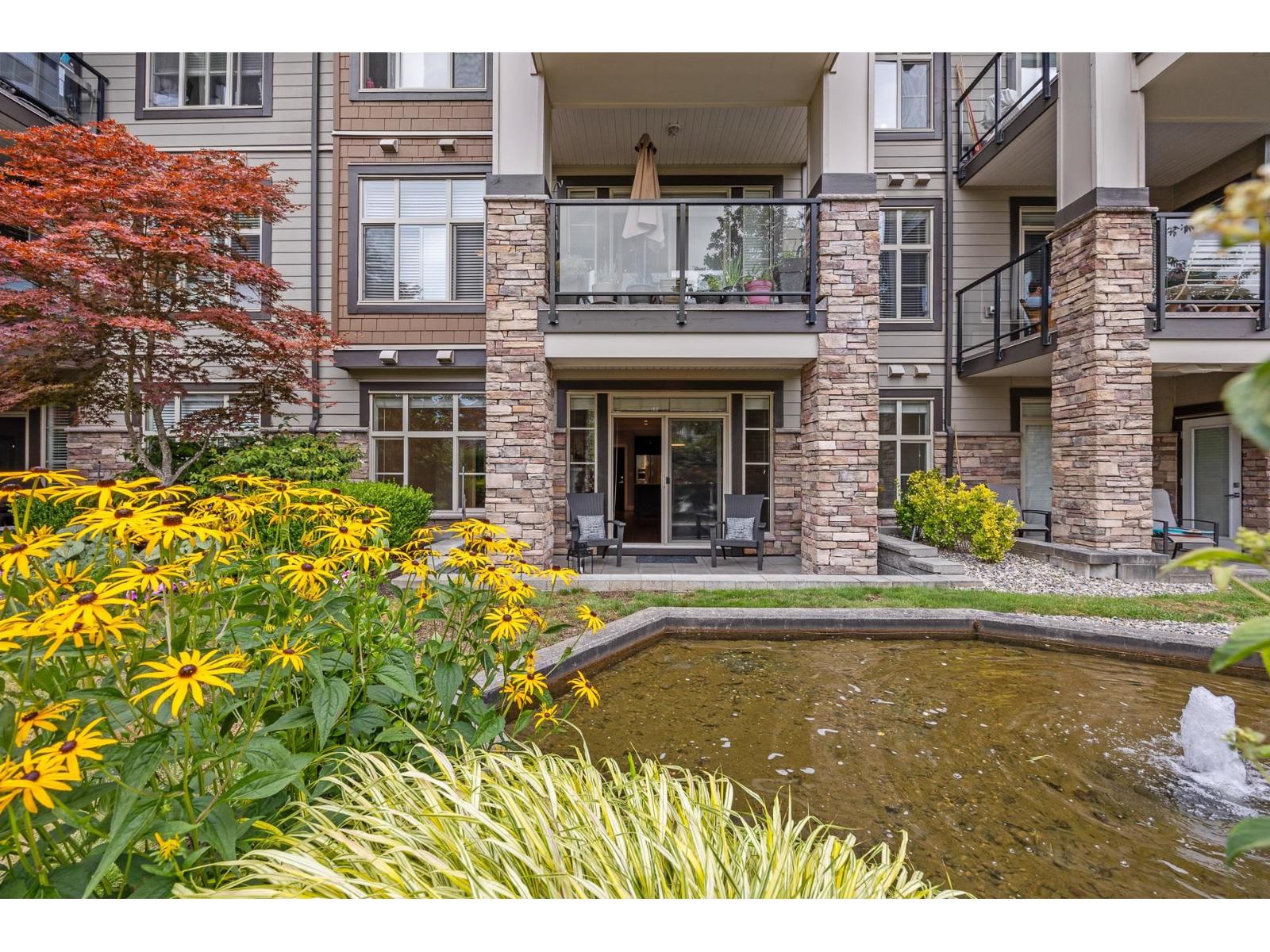$606.53 MonthlyWelcome to Edgewater! Beautiful west-facing 2 Bed/2 Bath ground floor condo offers a peaceful escape with your main living and patio overlooking water feature of inner courtyard. Thoughtful layout with spacious kitchen, dining, living areas and bedrooms on opposite sides for privacy. Luxurious primary suite boasts a walk-in closet and spa-like ensuite with heated floors. High-end features include quartz and marble countertops, extra built-in cabinetry, 9' ceilings, an electric fireplace, and an oversized kitchen island. Recent upgrades include new paint throughout, new washer/dryer, dishwasher, microwave. Resort living with pool/hot tub, gym, yoga, media & stunning entertainment lounge with breathtaking views, guest suite and gated walking paths. Includes 2 parking spaces! Move in ready! (id:52823)