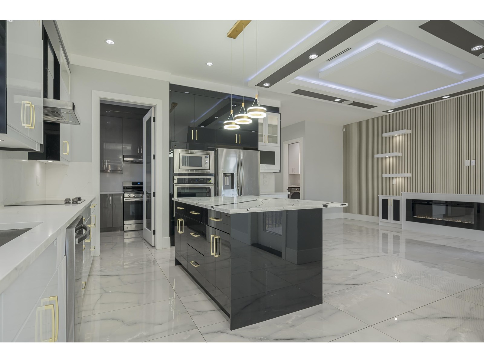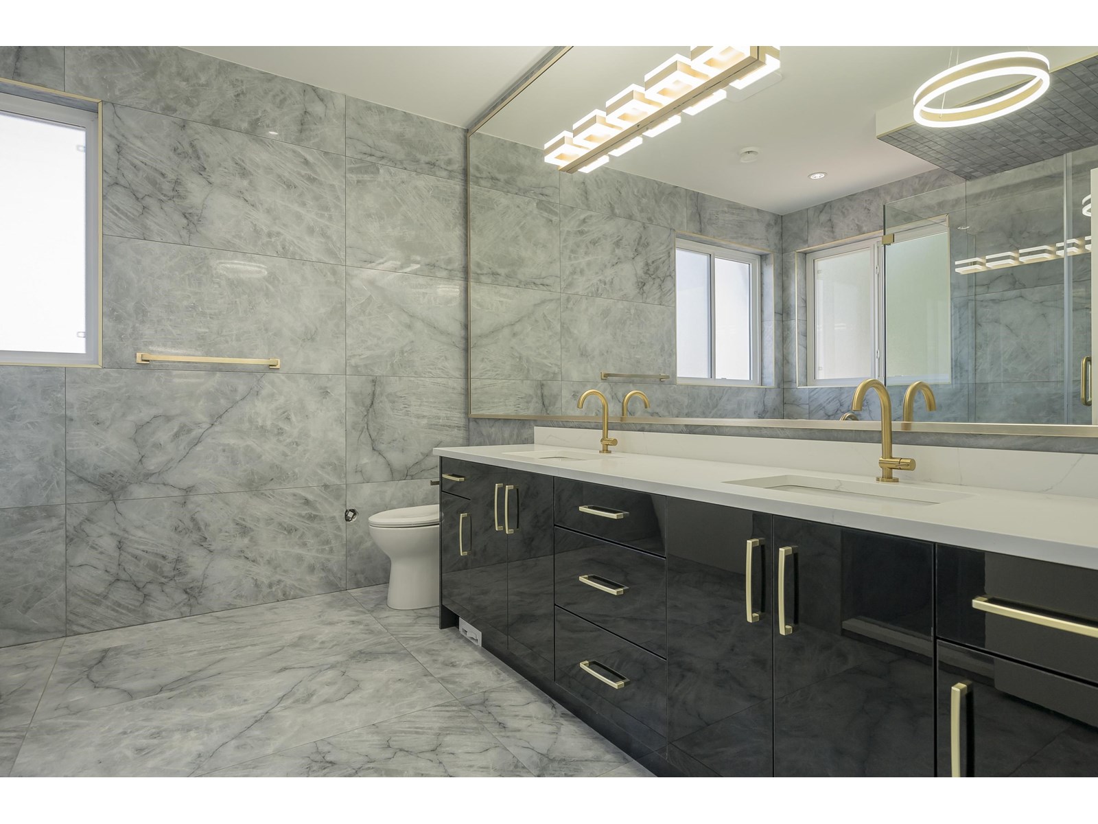 This beautifully designed 3-level,4169 sq.ft.home offers exceptional modern living with high-end finishes throughout.Centrally air-conditioned with radiant heating,it provides year-round comfort.The main floor features a grand foyer leading to spacious living and dining areas,a family room,and a chef-inspired kitchen with quartz countertops,acrylic cabineets,and a spice/work kitchen.The living room boasts vaulted ceilings and an electric fire place,while the dining area includes a stylish feature wall.Upstairs,all 5 bedrooms have private en-suites and balconies.Enjoy stunning mountain and city views from the expansive front deck.With plenty of parking and located near all major amenities. (id:52823)