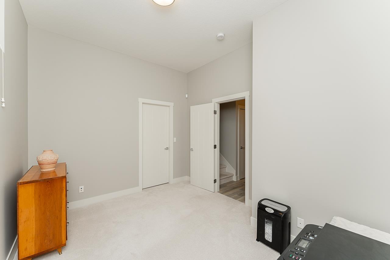 $478.39 Monthly"Hyde Park" where contemporary design meets a mature park-like setting. Spacious 2001 sq. ft. offers an incredible blend of style and functionality in a visually striking community of uniquely designed homes. Bright, open main living space with modern kitchen & private balcony. Upper level offers 2 bedrooms and a large primary suite, walk in closet, luxurious ensuite with double shower, double sinks and bonus sit-down vanity. Fourth bedroom on the lower level with walk-in closet. Double side by side garage and 2 visitor parking spots directly across, this home enjoys a direct view of the park/playground/garden and access to exclusive amenities: clubhouse with full kitchen & great room, gym, versatile sports court, covered outdoor patio with fireplace and bbq. (id:52823)