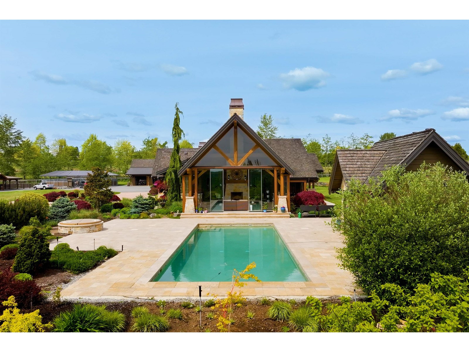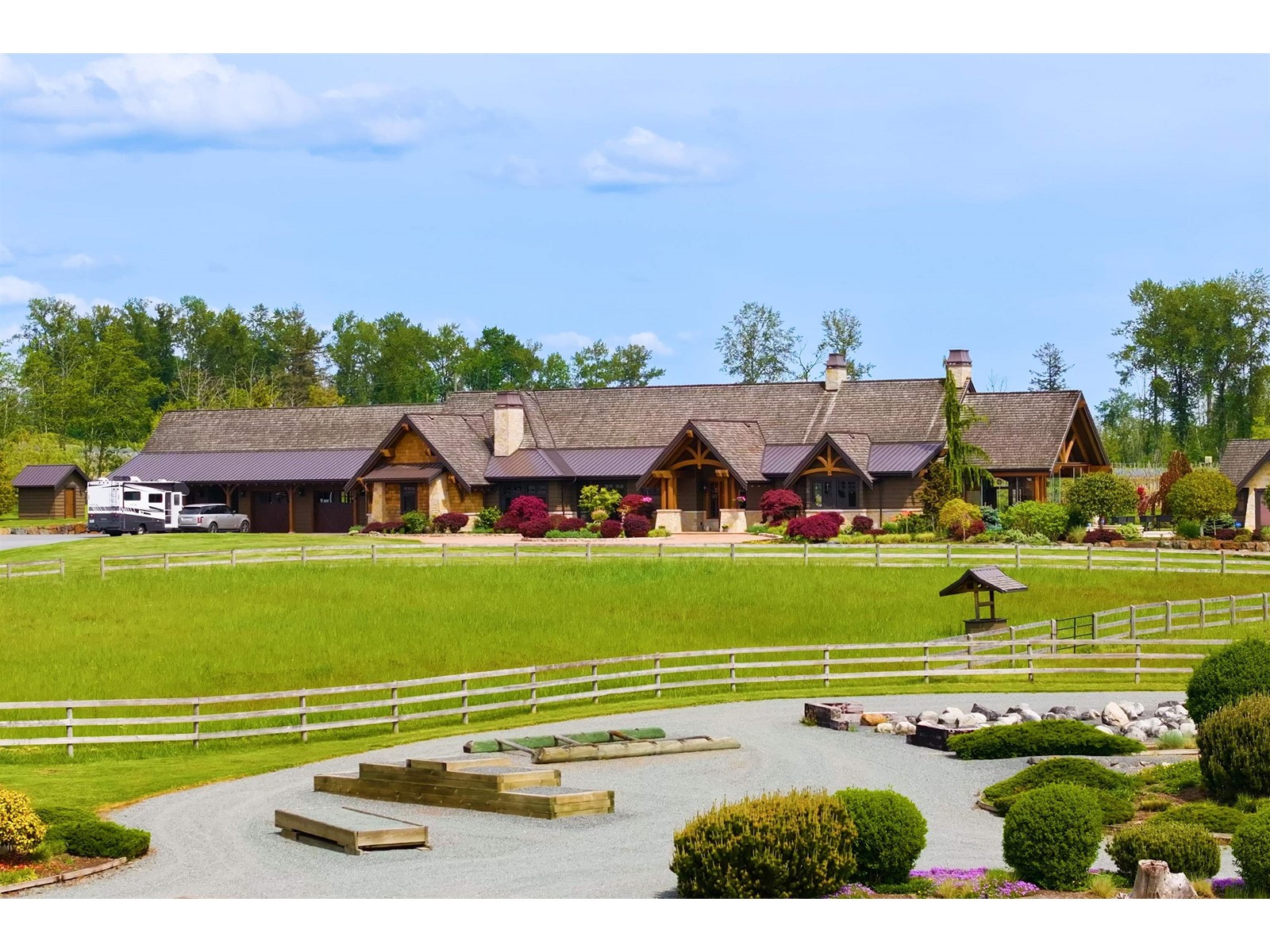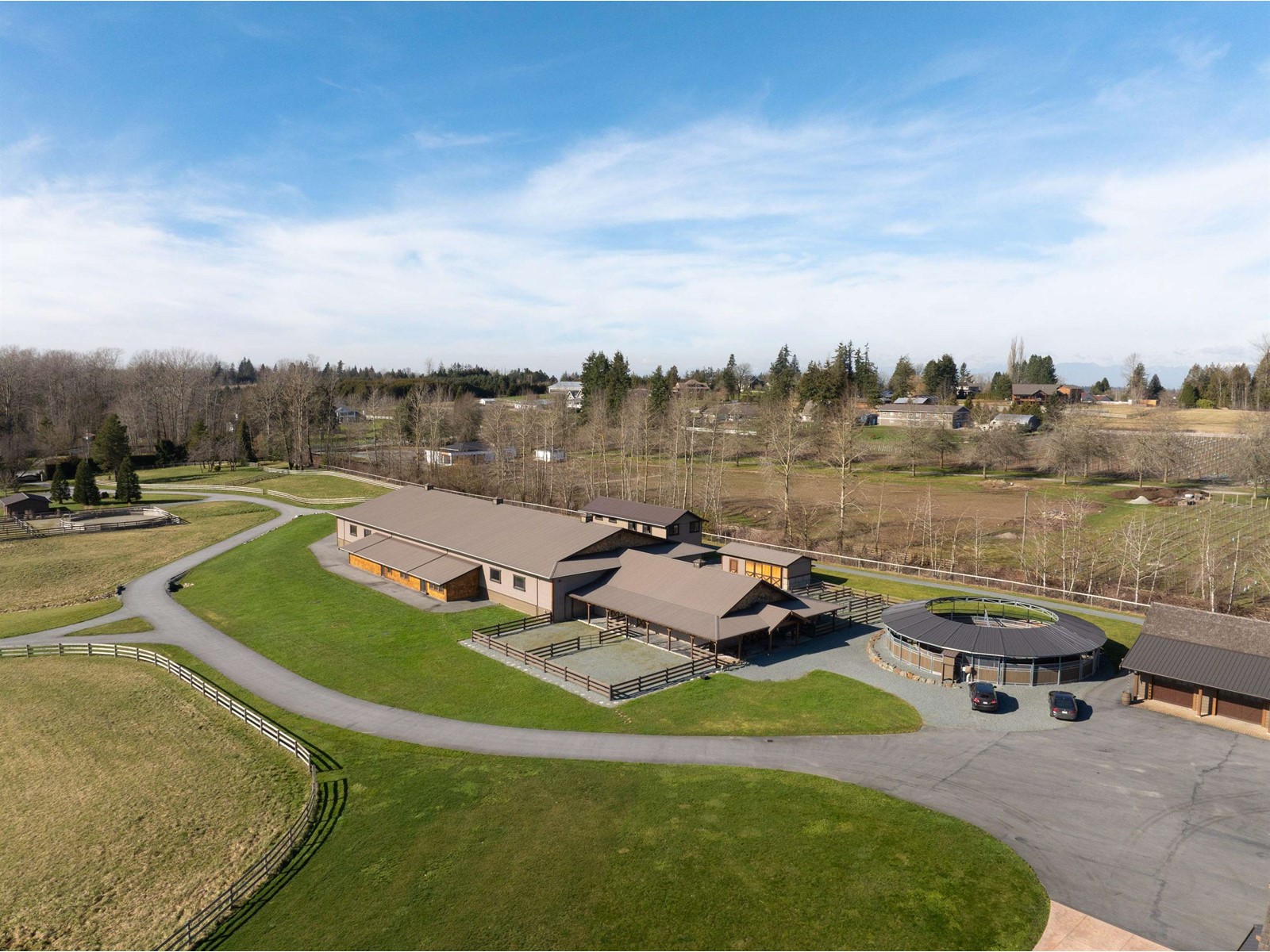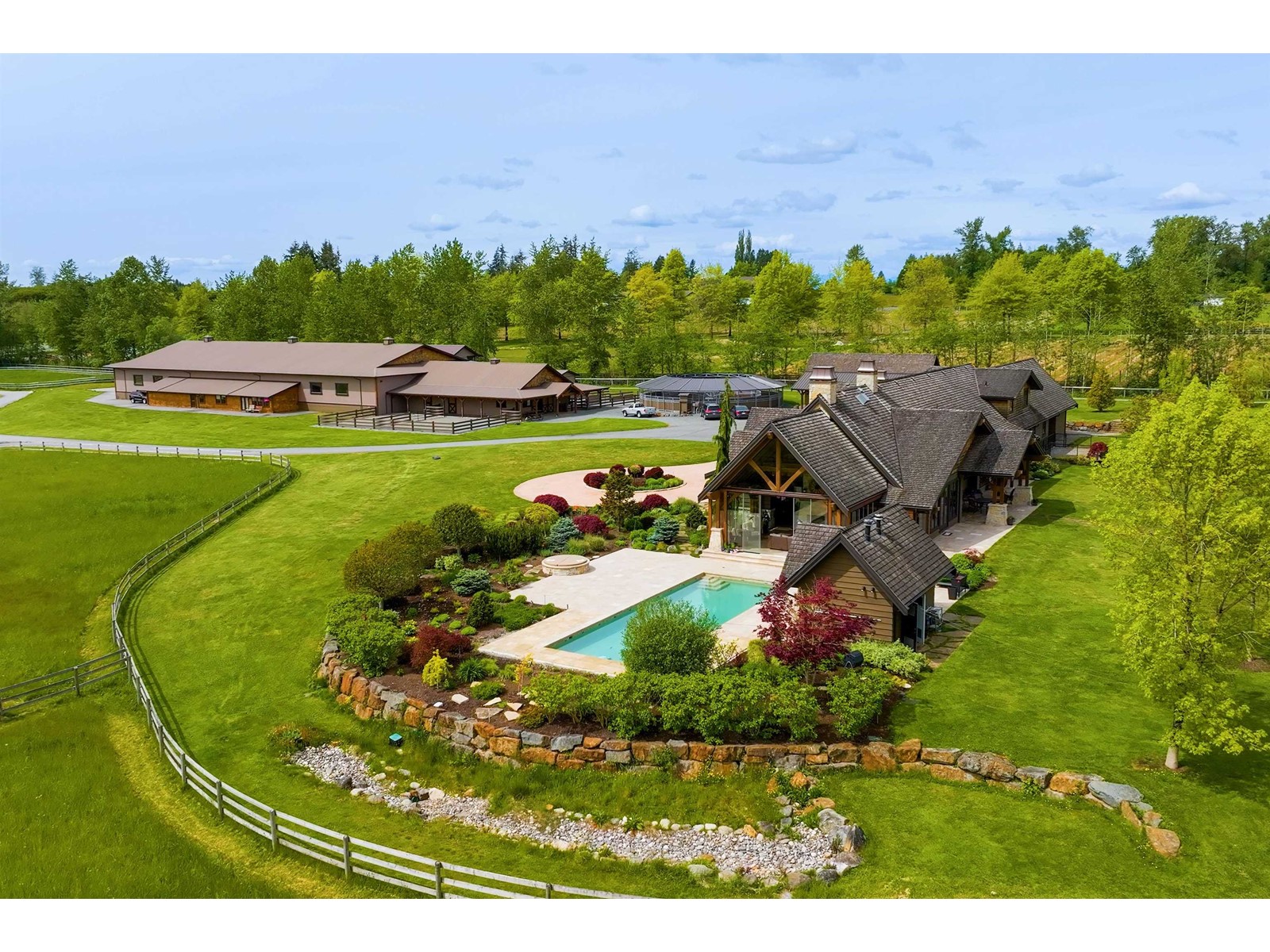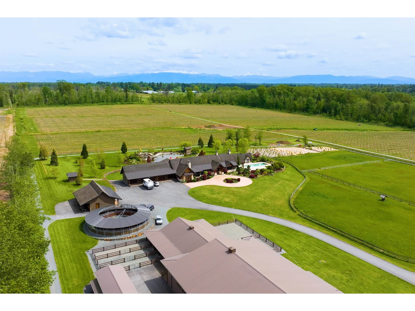 This private 15.19-acre equestrian estate in Campbell Valley offers stunning views of Mt Baker & Chaberton Estate Winery. Designed for horse enthusiasts, it features an indoor riding ring, 10 paddocks, heated tack room, equestrian mountain course, a perimeter riding track, & a covered hot walker. The 4,000+ sqft rancher includes 3 bedrooms, 4 bathrooms, & an elegant layout with spacious living areas. Outdoor highlights include lush gardens, pool, & a gated entrance offering privacy & tranquility. For vehicle storage & hobbies, enjoy a 4-car attached garage, a separate 3-car garage, & a large shop. This rare offering blends equestrian excellence with luxury living in one of Langley's most sought-after locations, providing the perfect balance of nature, recreation & refined country living. (id:52823)