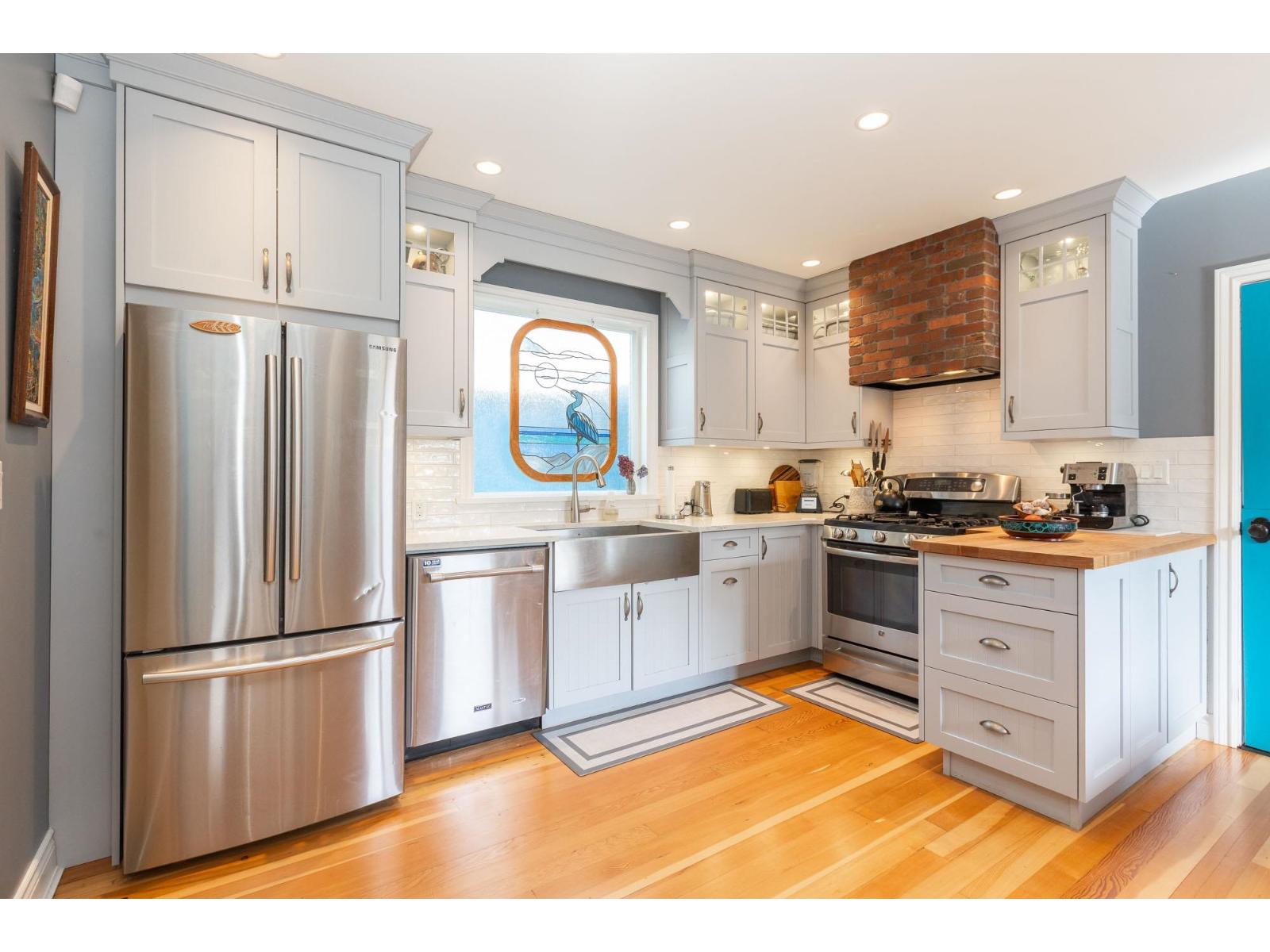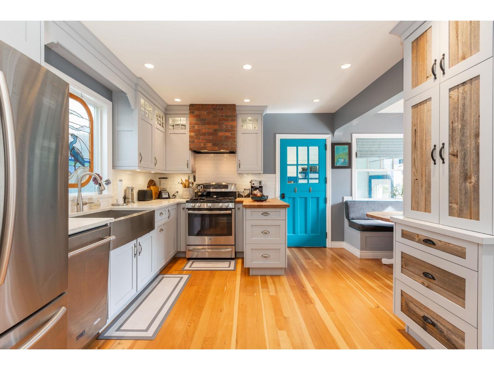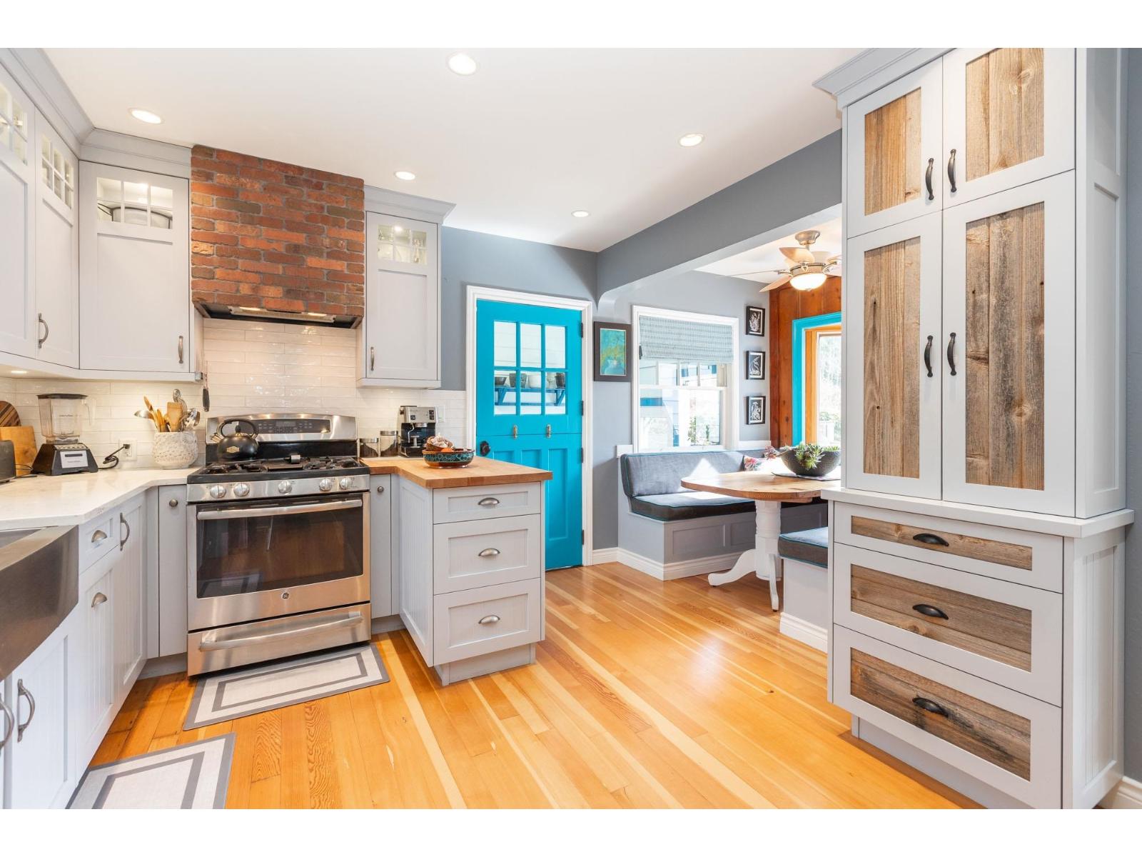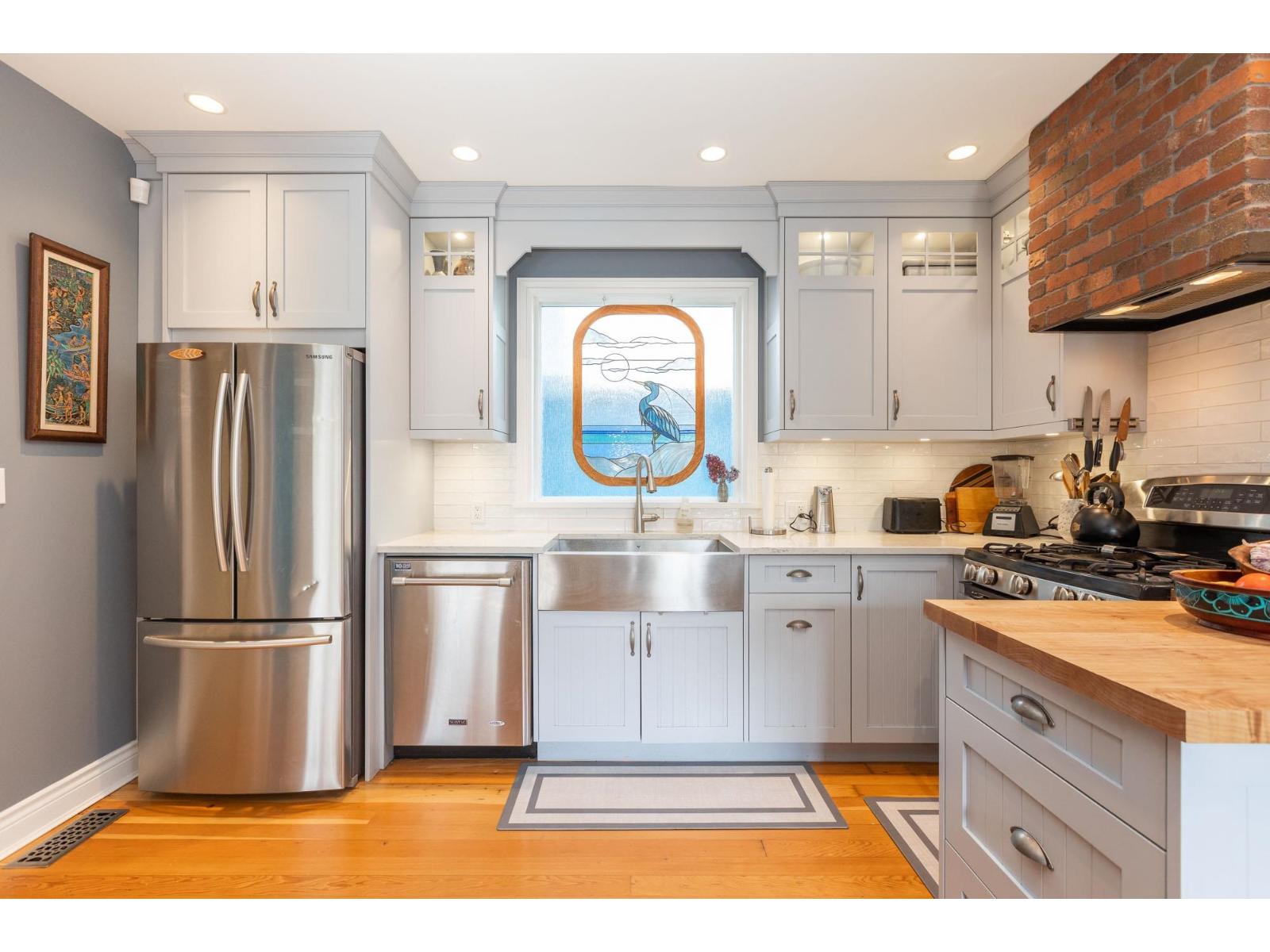 Blending charm, character & beauty all into a unique floor plan offering 3108 sq ft of living space. Located in White Rock with the beach & shops a short walk from your door & situated on a picturesque, beautifully landscaped 8436 sq ft lot. Kitchen has been updated with white cabinetry, a farmhouse sink & S/S appliances. Cozy eating nook for casual dining & ship deck flooring in well sized dining room for larger gatherings. Huge living rm with fireplace to curl up, relax & read a book. New windows through out & the addition of skylights make this home nice & bright! Up has a primary suite with partial ocean views, 4 pc ensuite, walk in closet & den/flex space. Down includes a 1 bdrm in law/ nanny suite - great for family, or guests. One of a kind & on a great street & neighbourhood! (id:52823)
