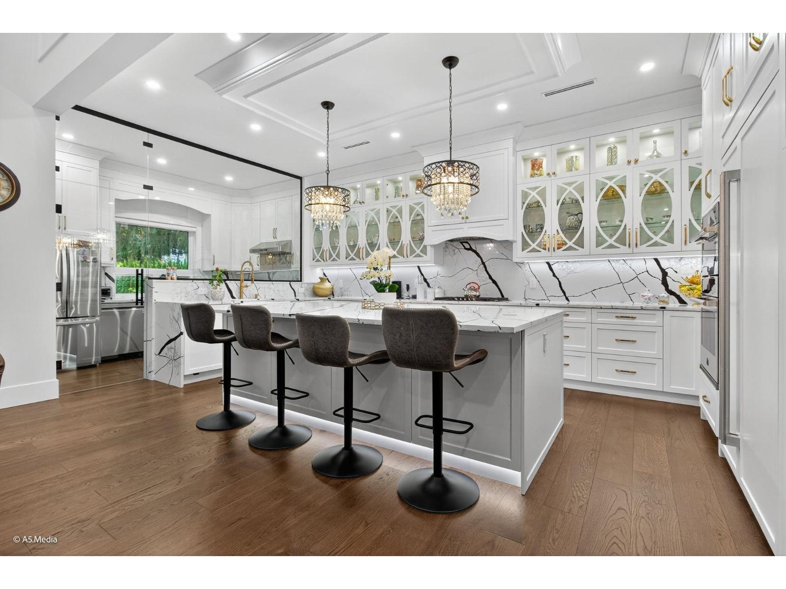 Panorama Ridge Mansion custom-built 2022 on a rare 37,461 sq.ft. Ocean-view lot! Over 6,200 sq.ft. of luxury with 8 beds & 9 baths. Grand double-height foyer, formal living/dining, family room, designer kitchen + spice kitchen with premium Jennair appliances. Guest bedroom on main. Huge paver driveway with RV parking, double garage, solar panels. Entertainer's dream with theatre room & full bar. Bonus legal 2-bed nanny/in-law suite + Studio suite on main with private entries. Upper level features, custom master suite with sitting area and balcony, another 4 ensuites and Office, 4 more ensuited bedrooms + office, AC, radiant heat, high-end finishes, oversized windows . Very large backyard and patio with a storage shed perfect for lavish entertaining and the summer BBQ's. (id:52823)