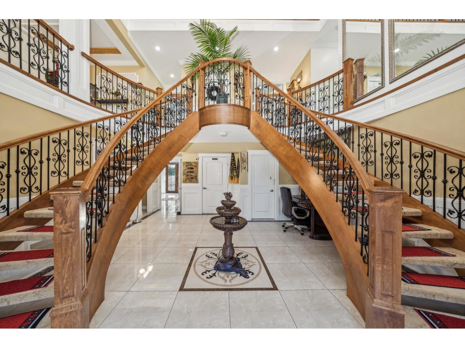 Discover Empress Palace Residence, a stunning 9,300+ sq ft estate on on almost 11,000 sq.ft lot in vibrant Surrey. Nearly $600,000 spent on upgrades. This crown jewel blends luxury and elegance. A breathtaking 27-ft open foyer with stunning double staircases lead to 3 expansive above-ground levels including 15 Bedrooms & 12 bathroom plus den . Enjoy marble flooring, a majestic luxury kitchen, two additional kitchens, and a kitchenette-ideal for large families or entertaining. Features include GEO thermal energy, A/C, smart home technology, and double-glazed windows for serene living. Indulge in the expensive state-of-the-art soundproof theatre with high end sound system. The property offers two separate entrances from the cul-de-sac and Main Street for added privacy and flexibility. Perfect for families seeking luxury living or investors considering a guest house, Airbnb or event venue with very high rental potential income. Give us a call today to book your private showing (id:52823)
