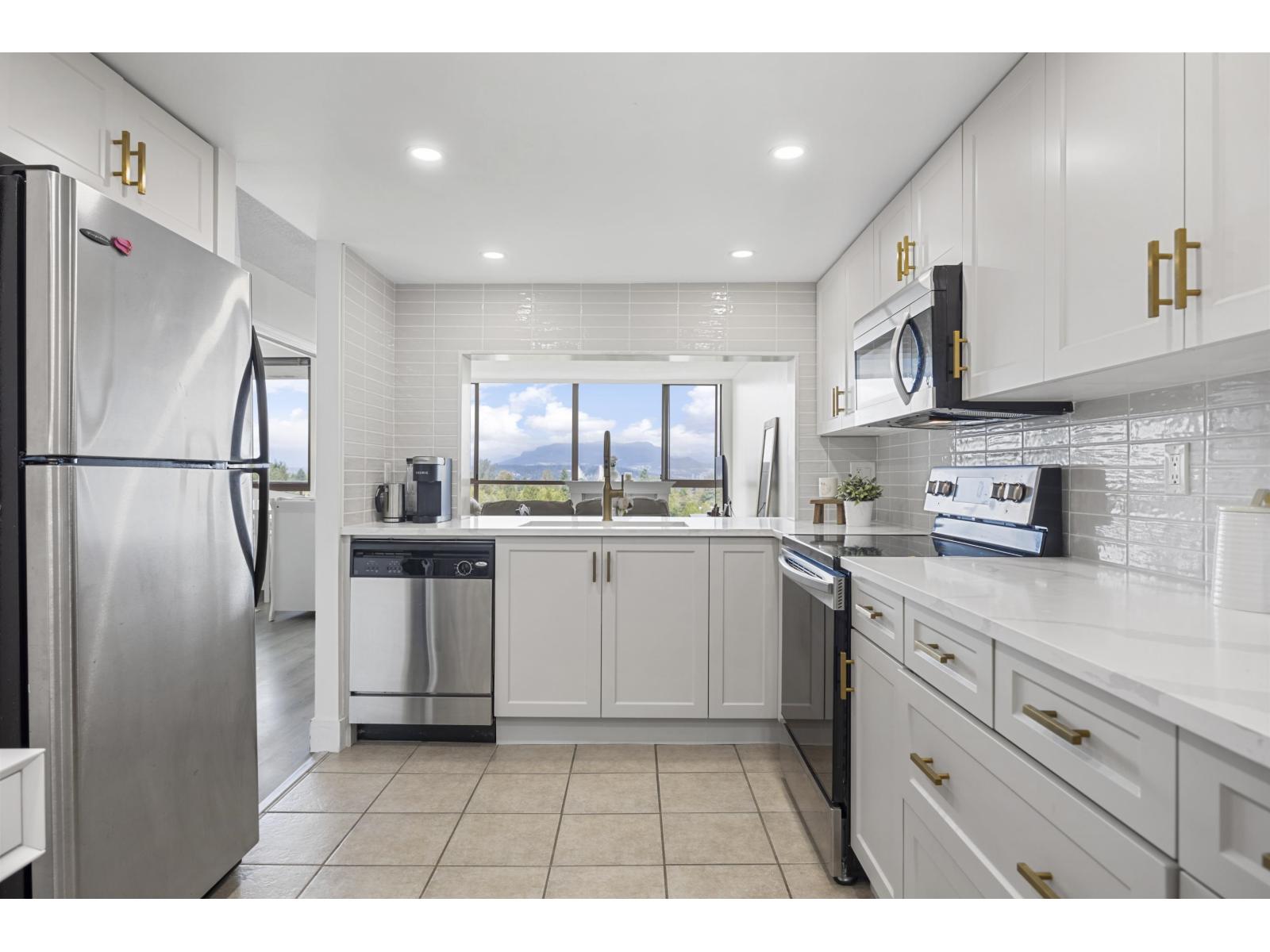 $466.17 MonthlyWelcome to #1306 at Sunwest Estates! Hard to find a better $/Sq Ft than this updated 2 bed, 2 bath condo. Boasting 1,049 sq. ft. of bright, functional living with sweeping mountain and city views. this spacious layout features modern flooring, updated lighting, and a refreshed kitchen with ample storage as well as updated floors, baseboard, fully renovated bathrooms, and many more updates. Sunwest Estates is a well-maintained concrete high-rise with proactive updates and a reputation for quality. Ideally located just steps to Guildford Town Centre, restaurants, transit, and minutes to Hwy 1 & the Port Mann Bridge, with SFU Surrey nearby. A rare combination of space, style, and unbeatable location-this home is move-in ready and offers outstanding value. Open House = October 11 from 1pm. (id:52823)