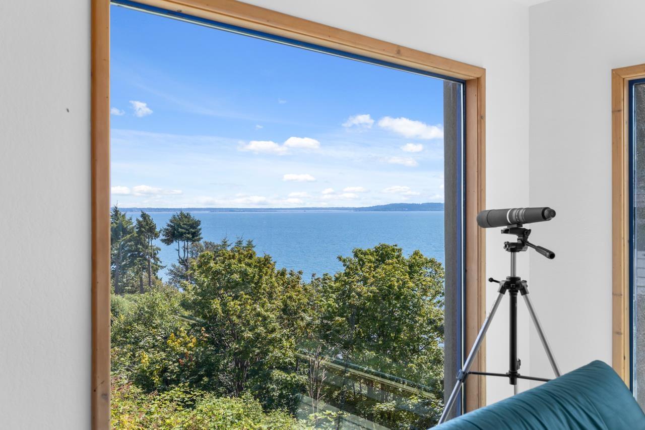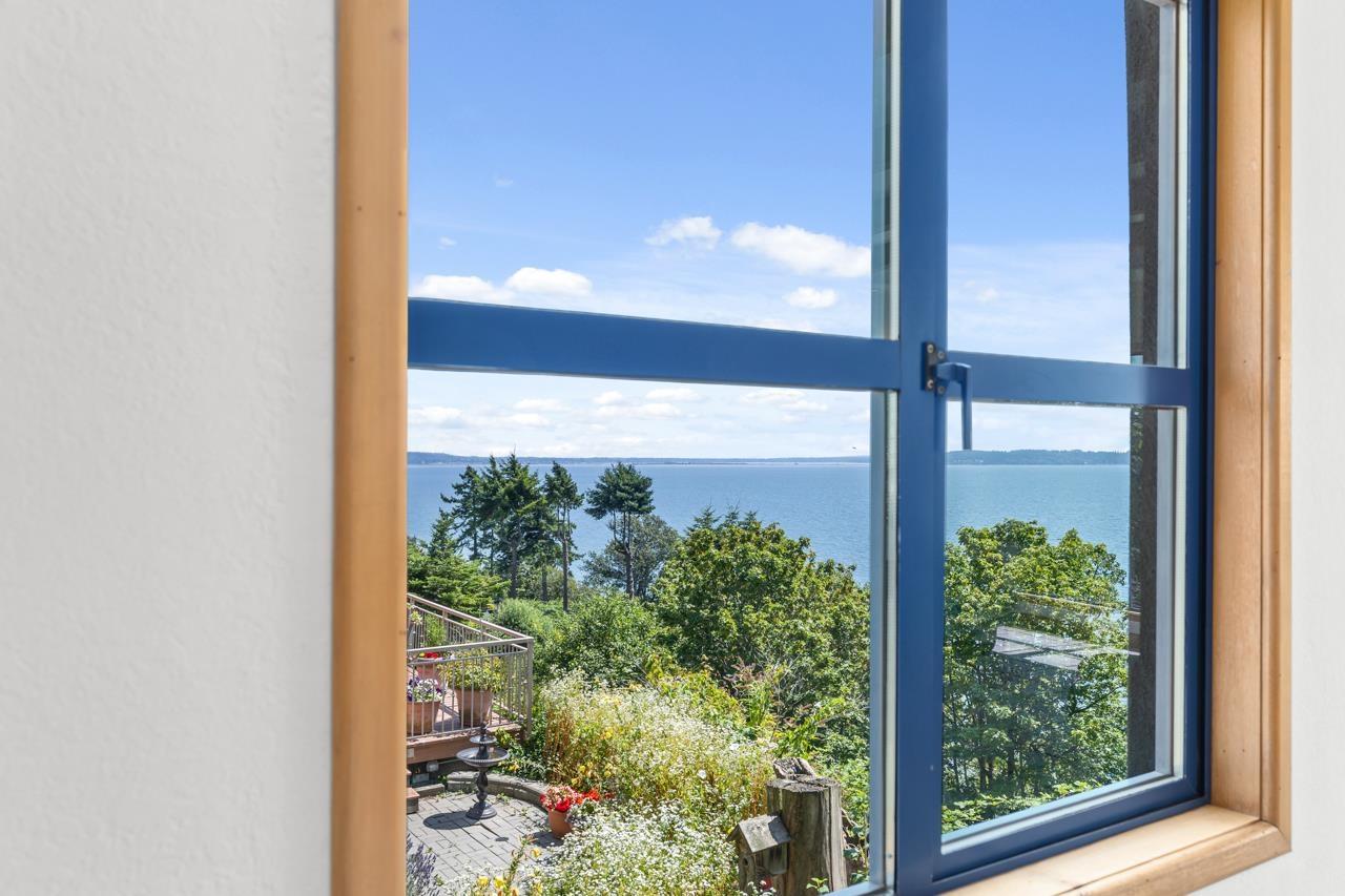 This Custom built home on the BLUFF is offered for sale, for the first time. A well known local Architect Mark Ankenman, had this home built for his family, over engineered and quality built, this home sits on a beautiful bluff lot with City green space to the west for privacy and stunning ocean views to the South West of Blaine, Semiahmoo Resort and beyond. A 4 bedroom home that works well for families or a professional couple. Home has a South West flair and design, the main floor has a large open plan with views of the Semiahmoo Bay. Primary bdrm has its own floor level with complete privacy. In floor radiant heating, Gourmet kitchen with high end Appliances and Corian counter tops. There is a large storage area over the suspended slab of the driveway. Plus stairs to the Beach. (id:52823)