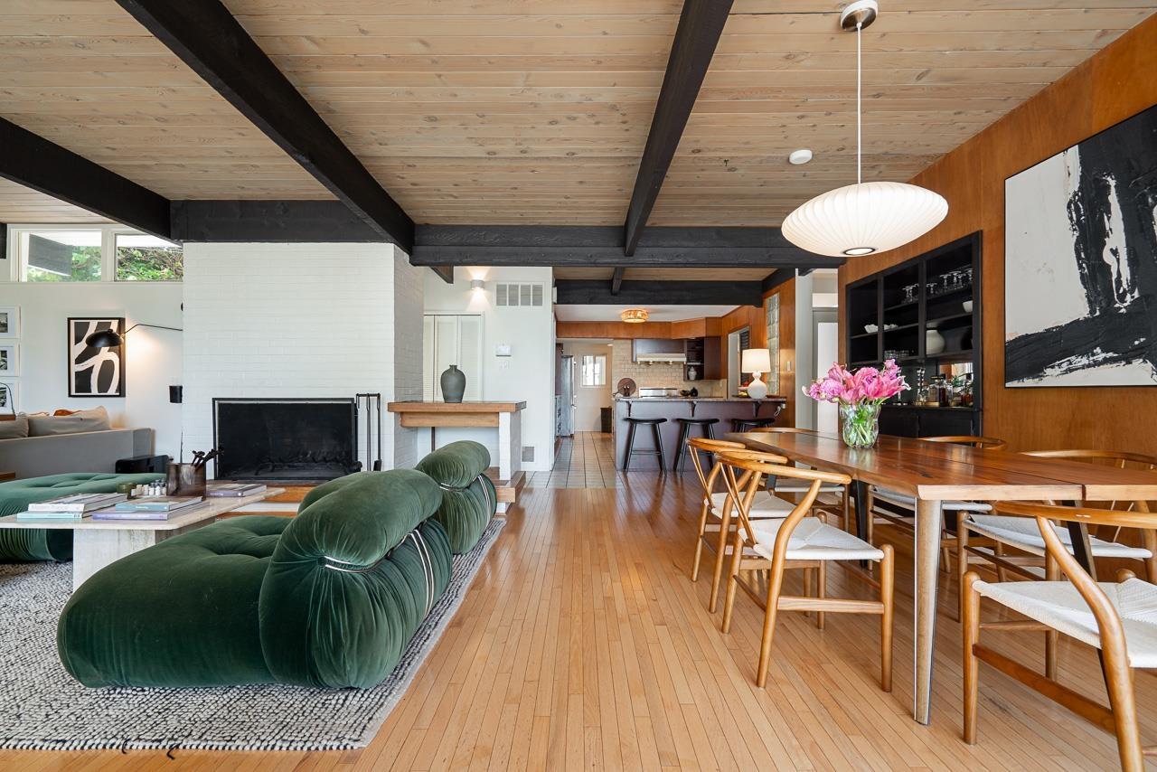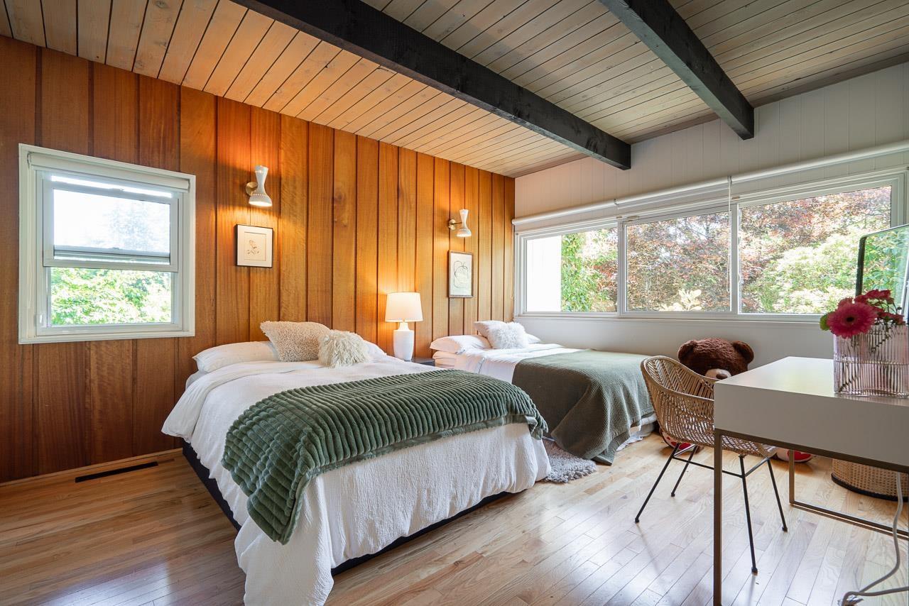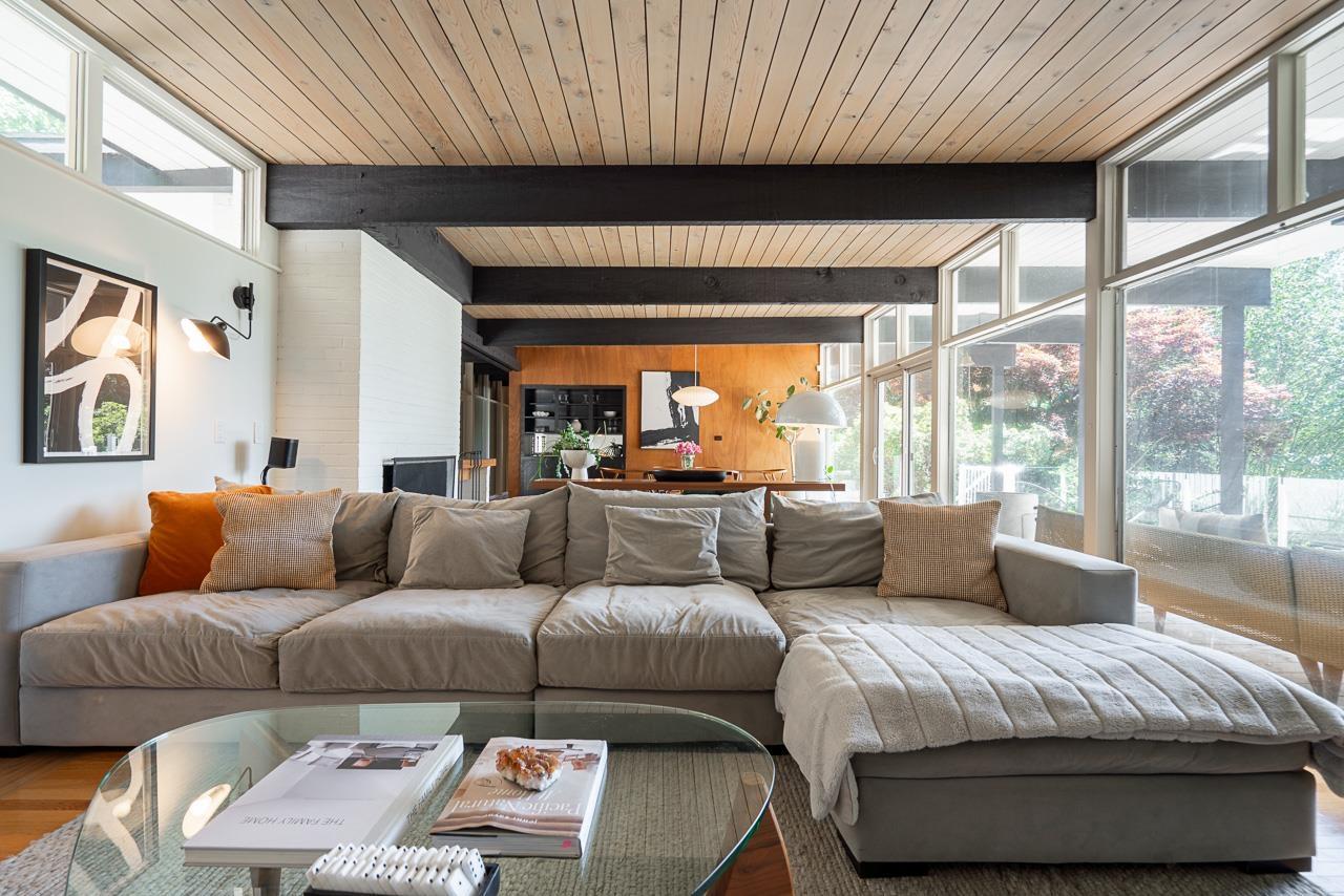Step into a rare opportunity to own a true architectural treasure. This 3-bed, 2-bath home isn't just a place to live-it's a mid-century modern masterpiece, thoughtfully preserved and beautifully integrated into its natural surroundings. Set on a serene half-acre on the quiet side of Panorama Ridge, it's tucked high into the tree line, offering privacy, tranquility, and views of Boundary Bay and Crescent Beach. The home's connection to the outdoors is undeniable-lush, updated landscaping surrounds the property, enhancing the flow between inside and out. The detached garage is perfect for a home studio or office. Included in the sale are architectural plans for a stunning renovation, giving you the chance to build upon the original vision while making it your own. (id:52823)